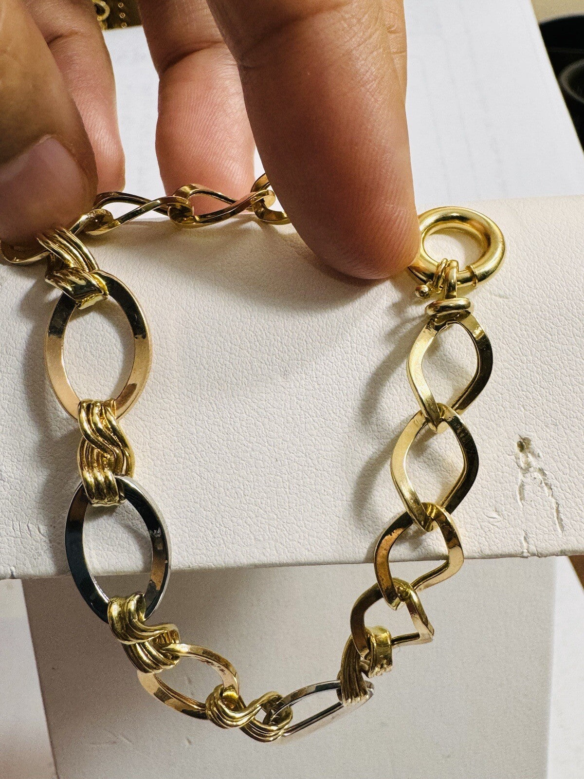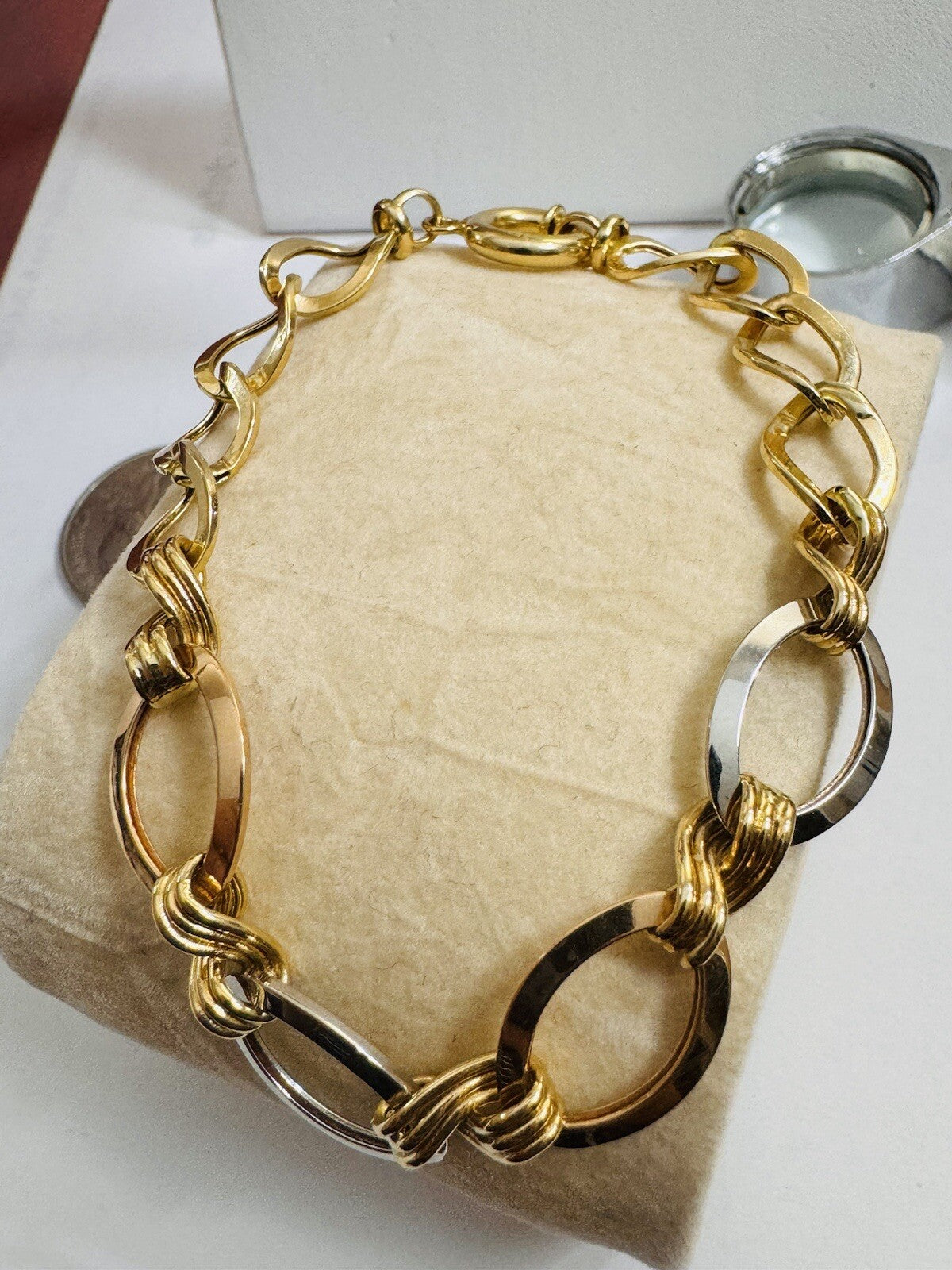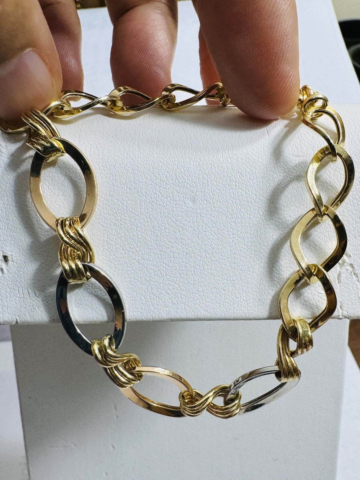 18K 750 Real Gold Cuban Curb Tricolors Bracelet 7.5” Long 9mm 5.6g