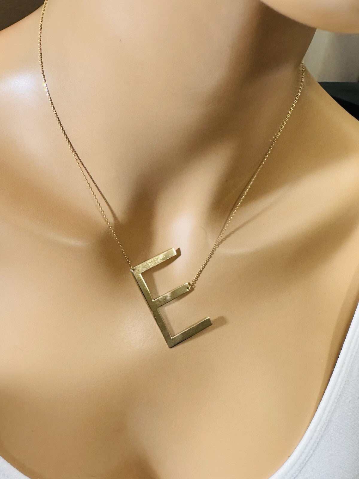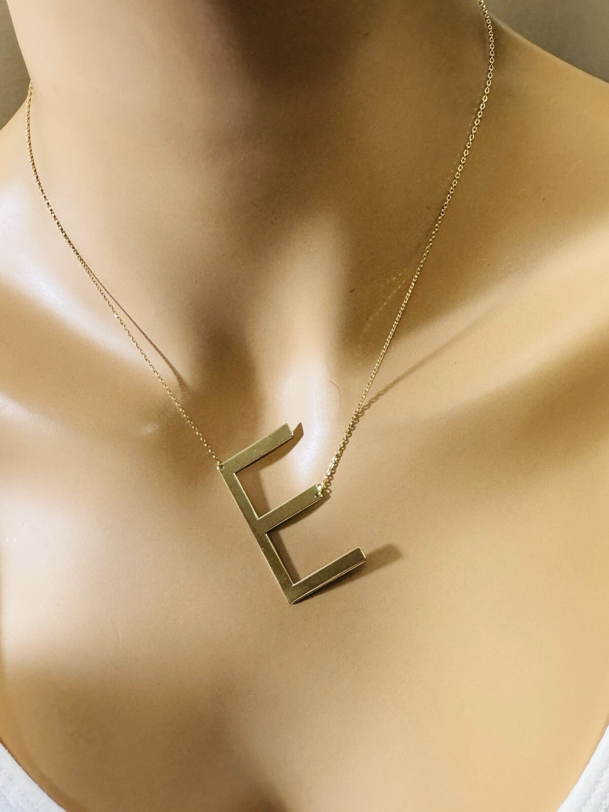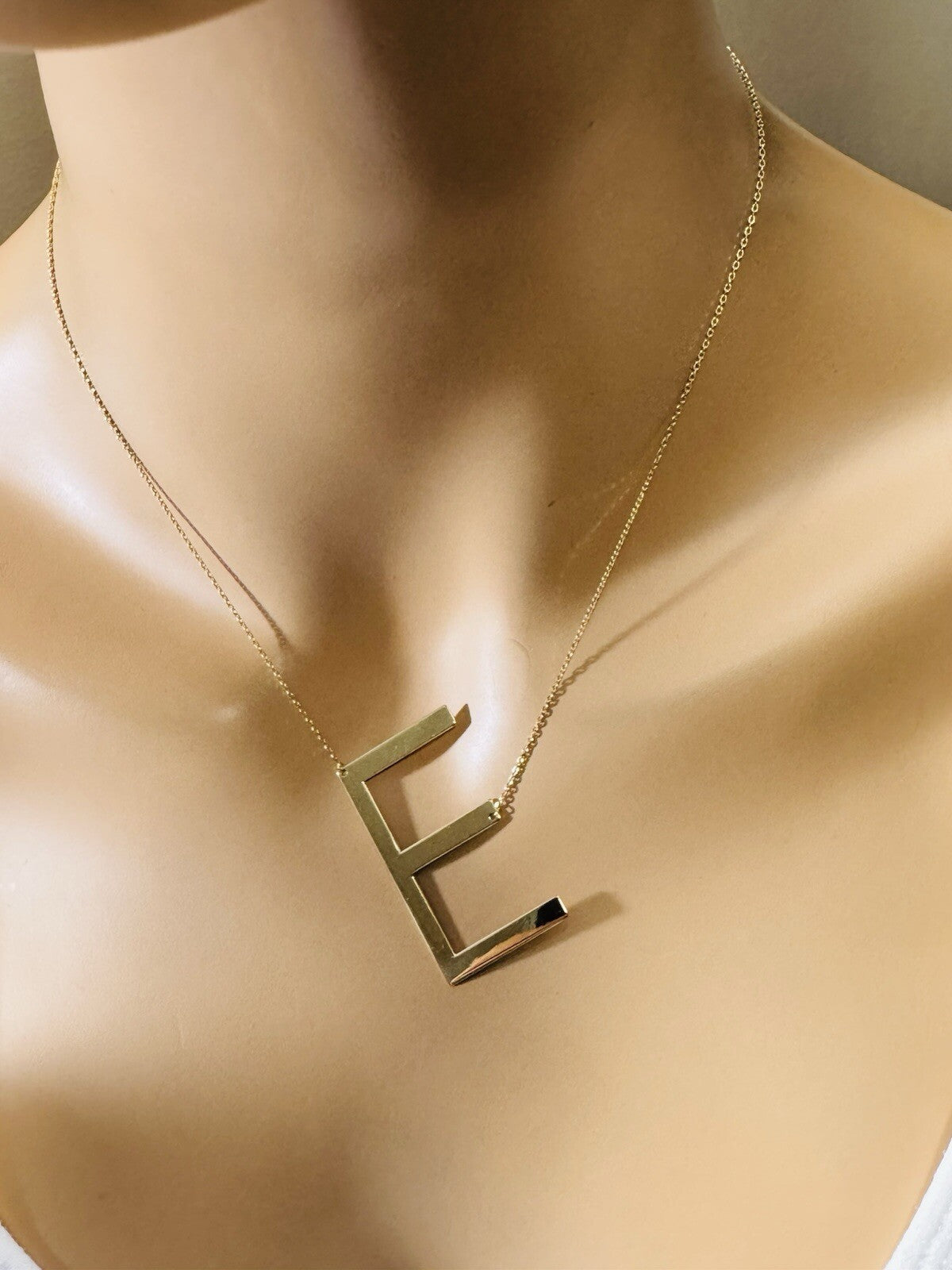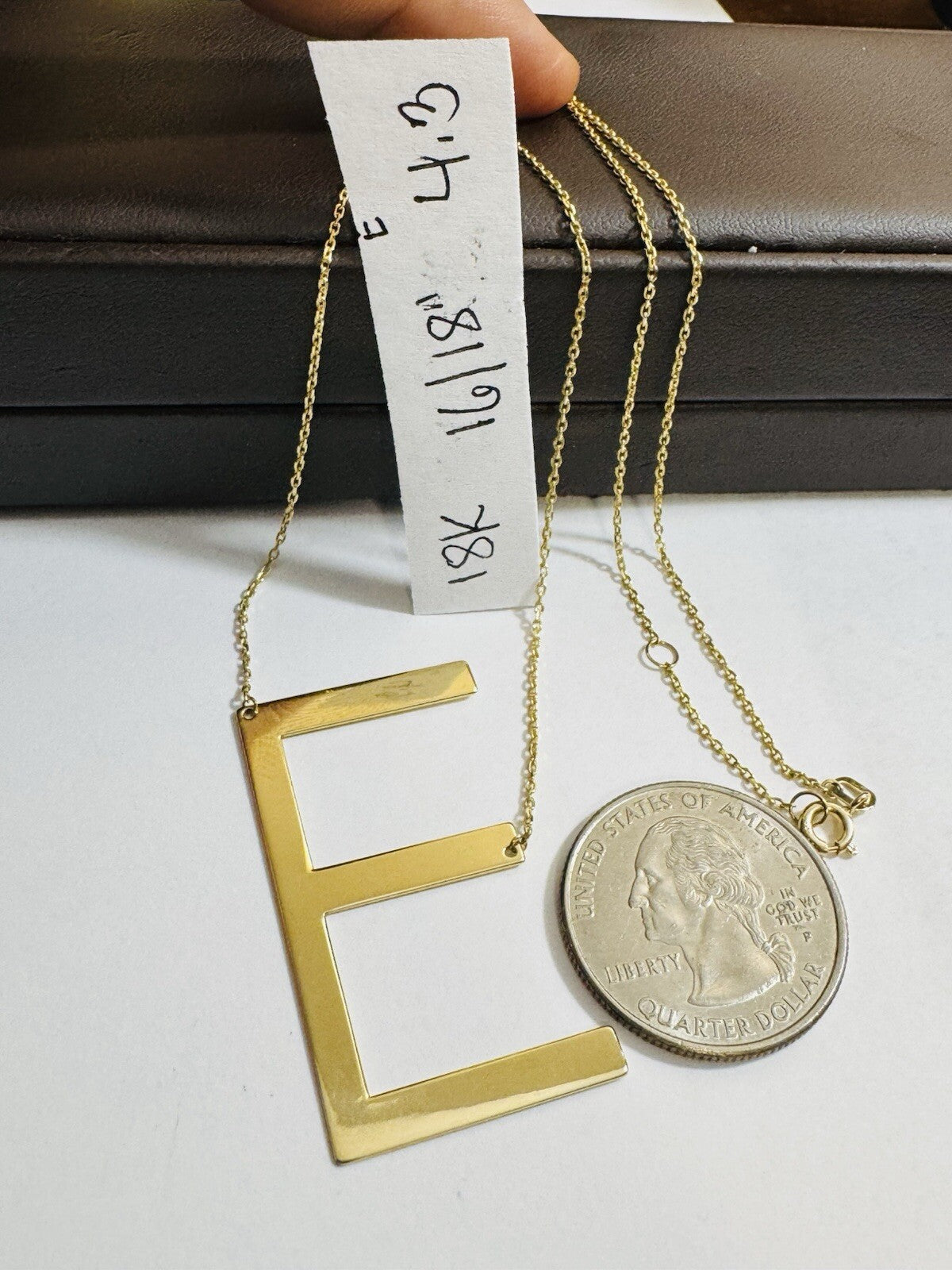 18K 750 Real Gold Letter E initial Necklace 16.5/17.5” Long 1mm 4.3g