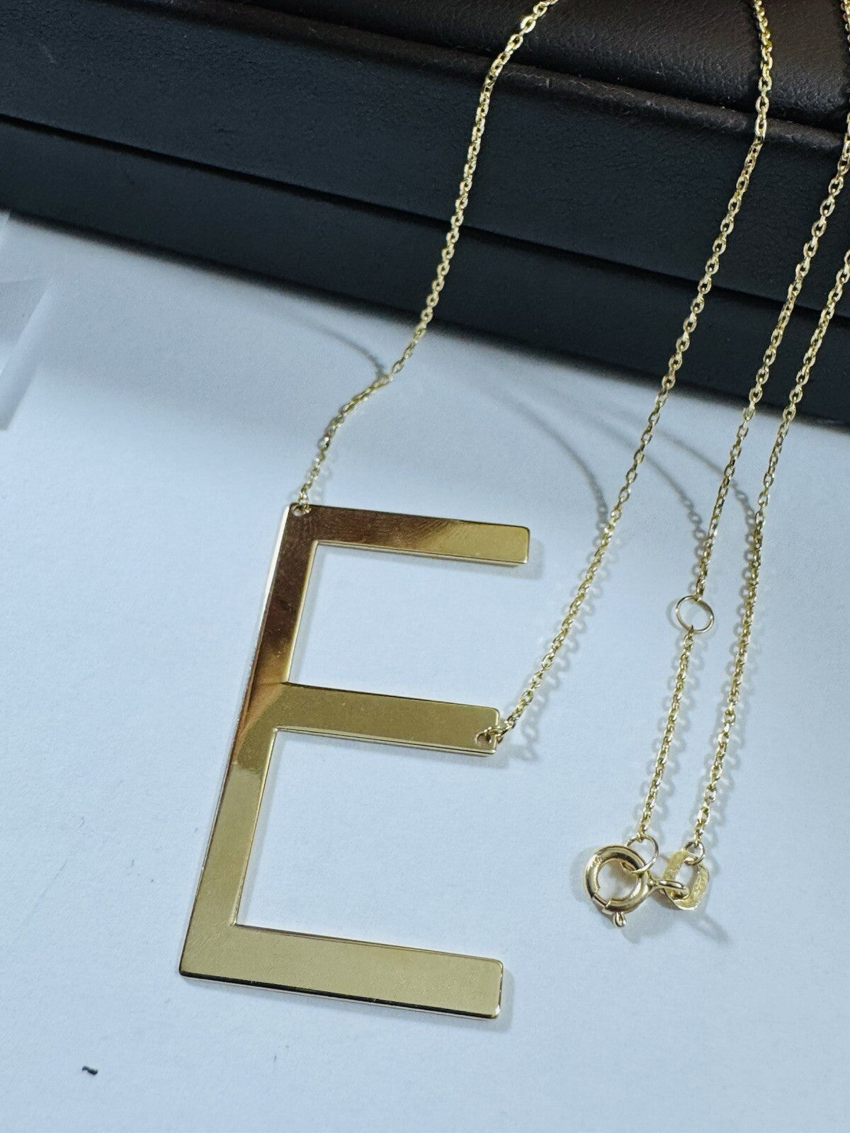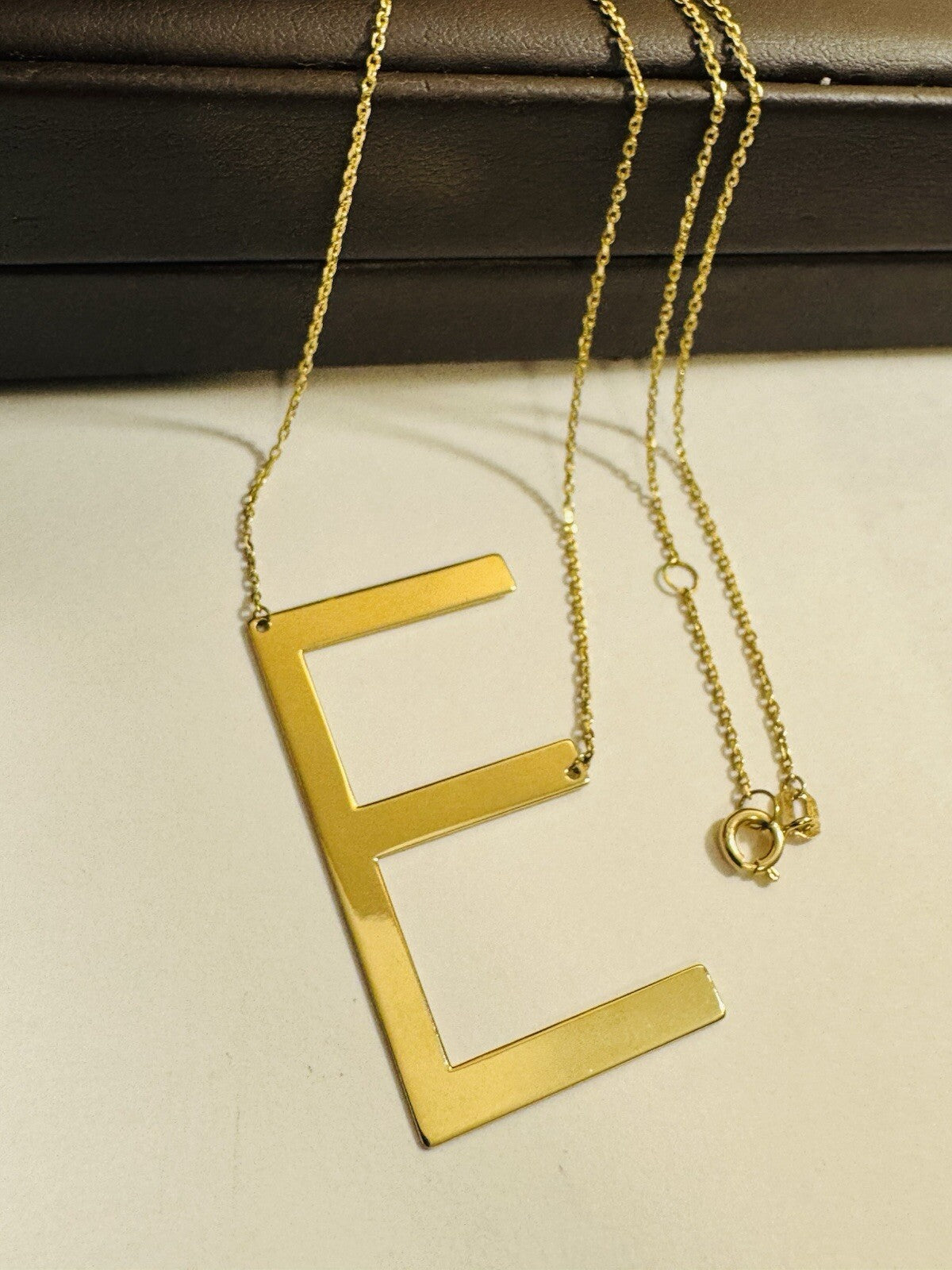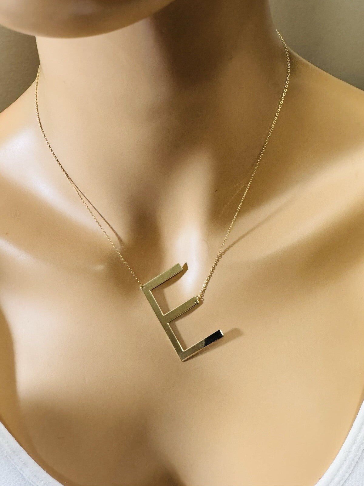 18K 750 Real Gold Letter E initial Necklace 16.5/17.5” Long 1mm 4.3g