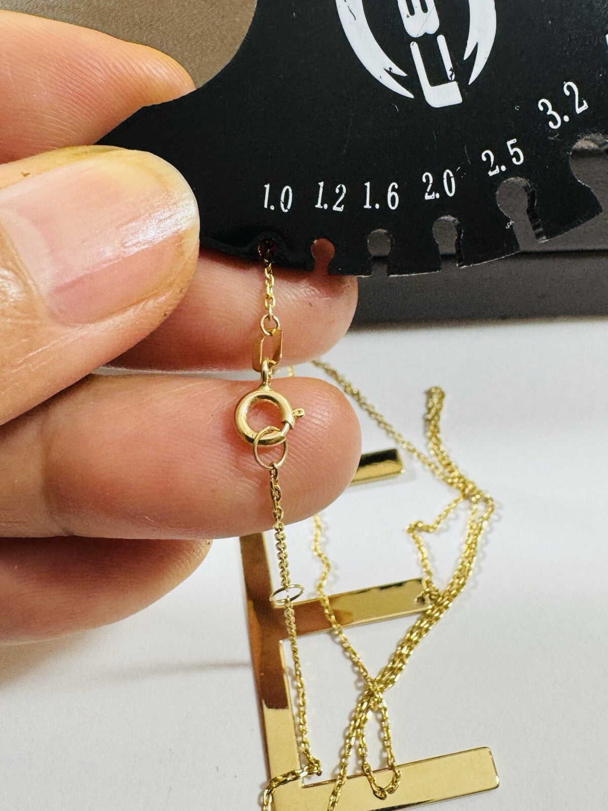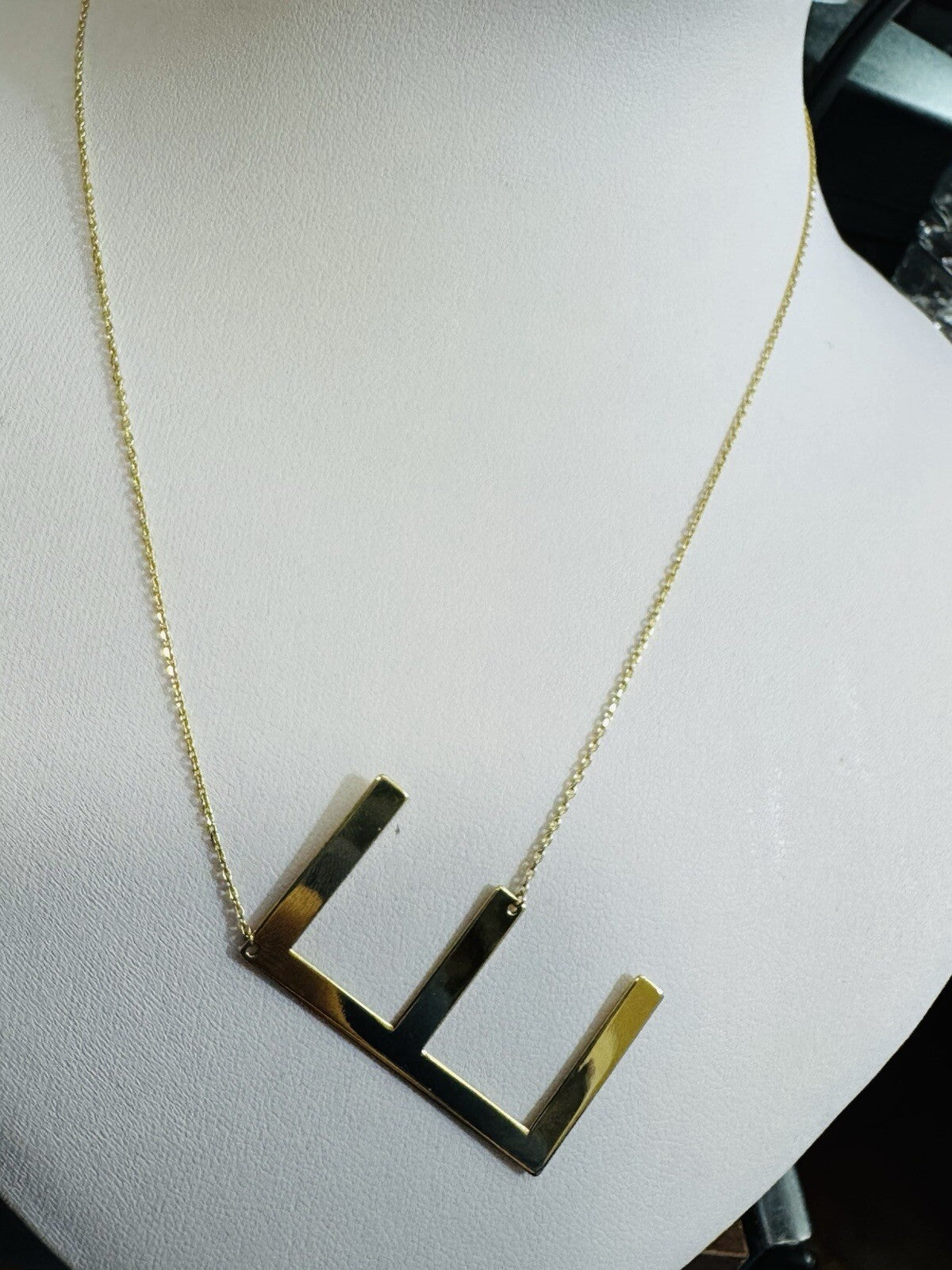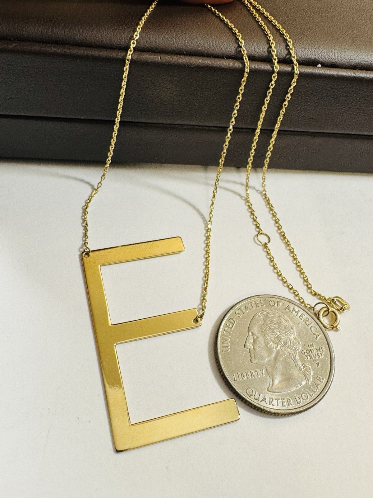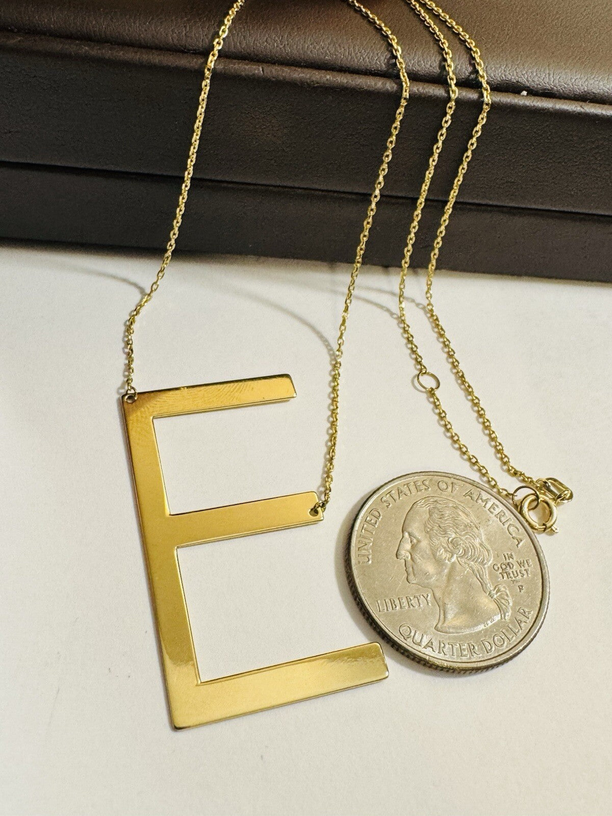 18K 750 Real Gold Letter E initial Necklace 16.5/17.5” Long 1mm 4.3g