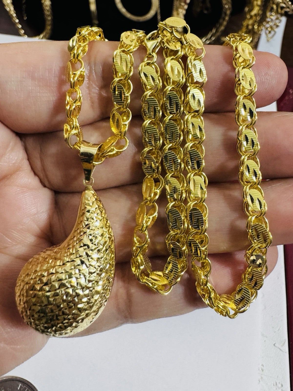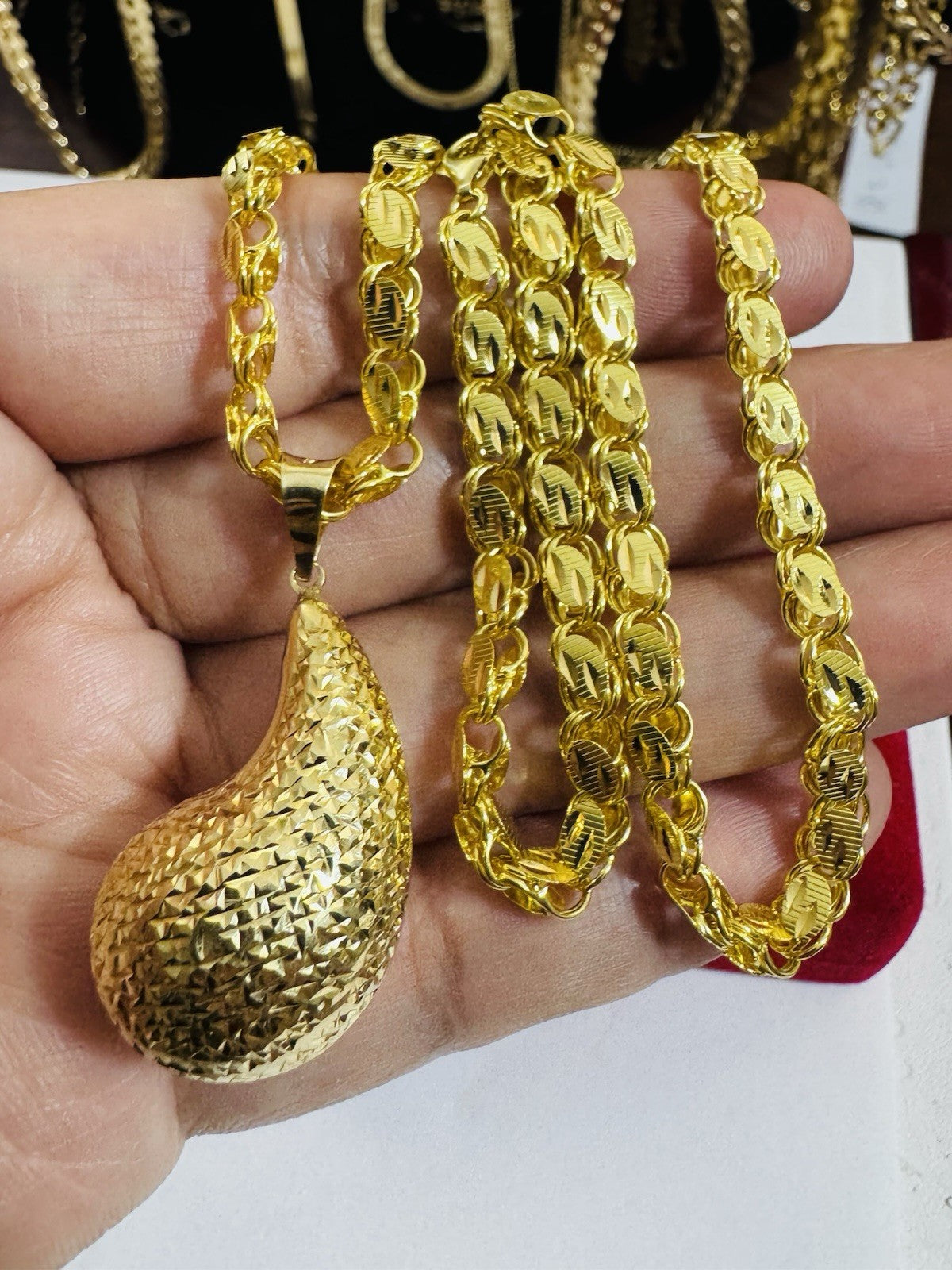 The Saudi Gold 18k necklace is perfect for engagement, graduation, wedding, anniversary, birthday, christening, confirmation/communion, valentine's day, mother's day, father's day, and Christmas among other occasions.