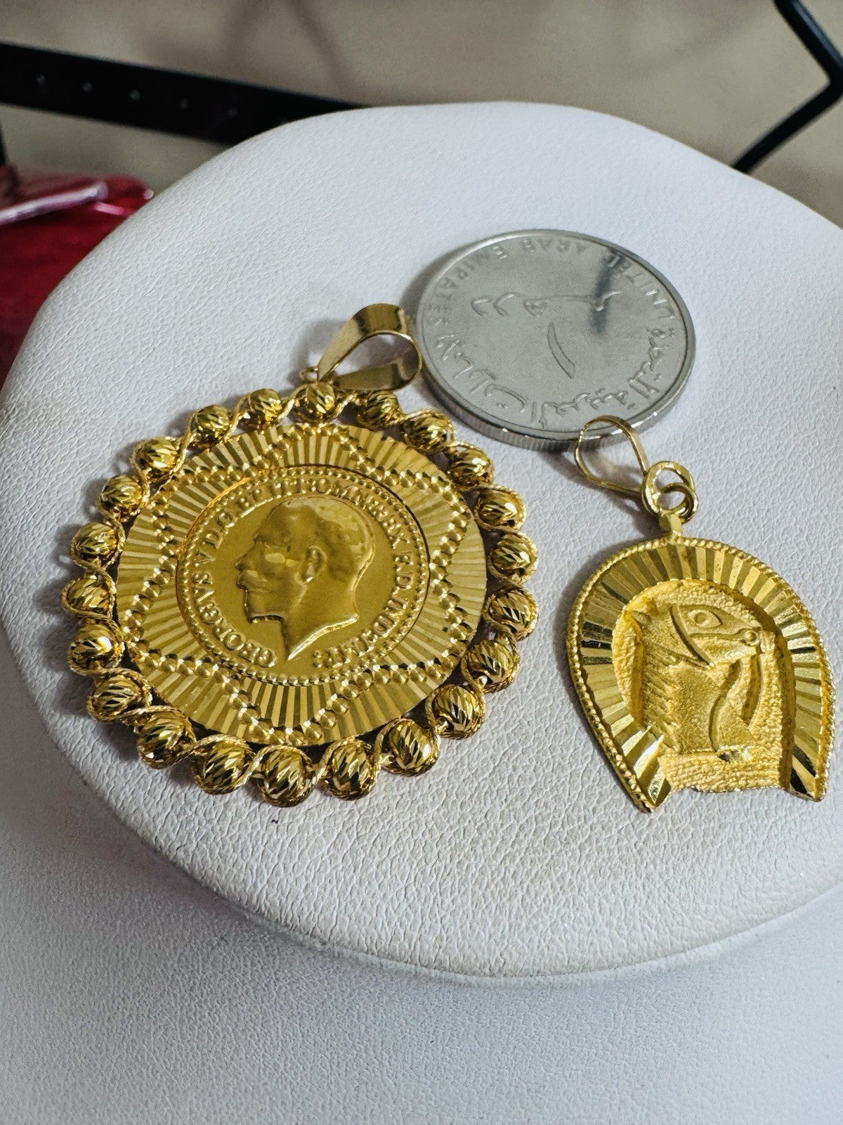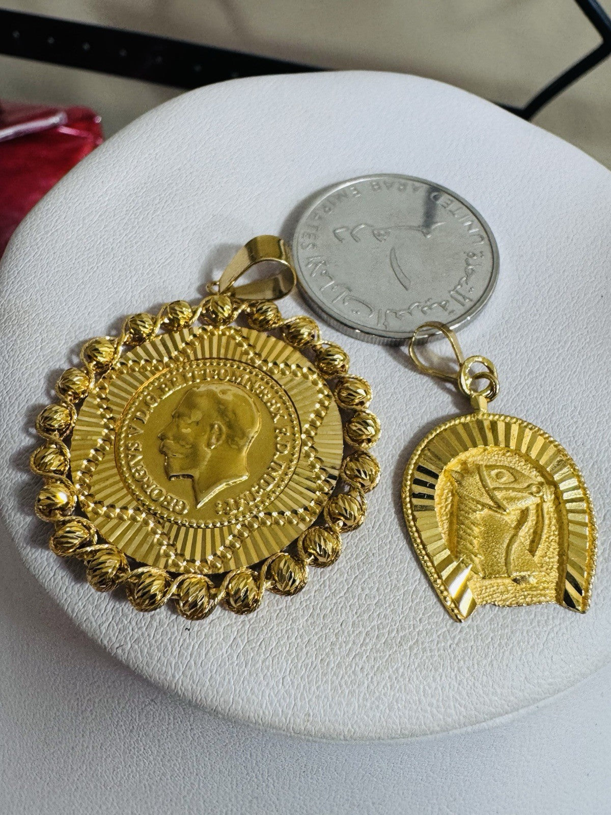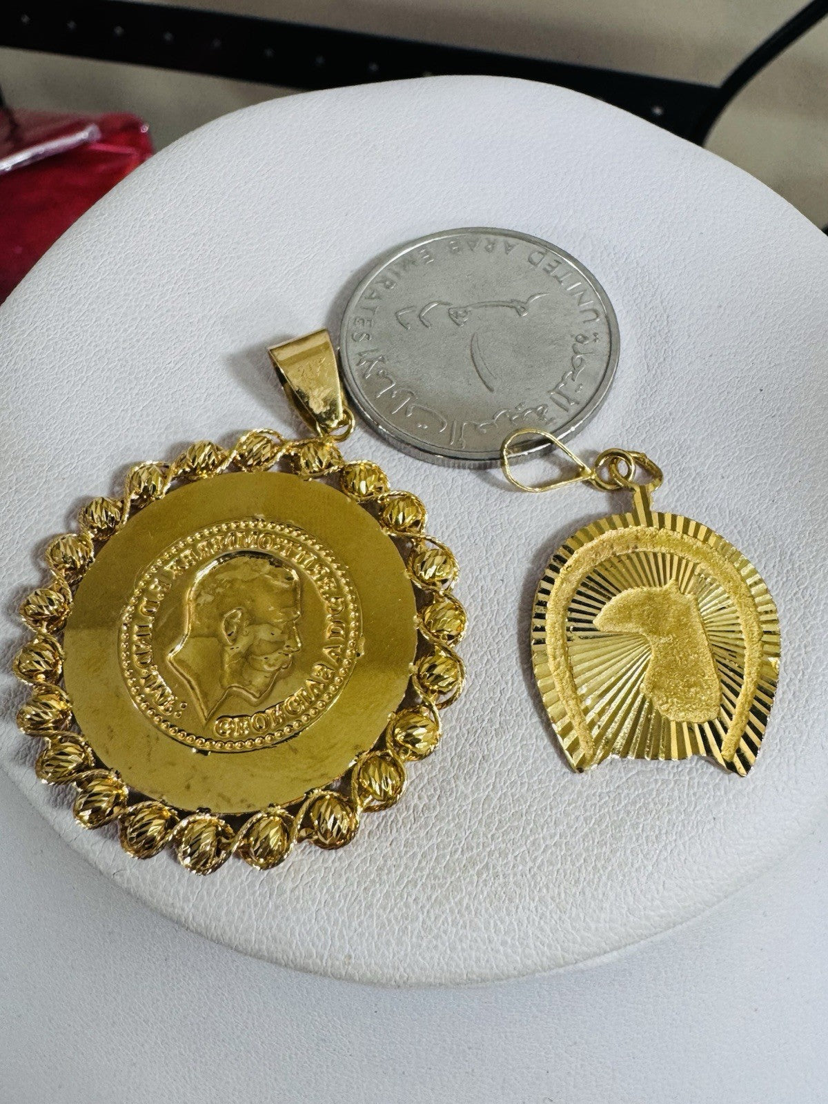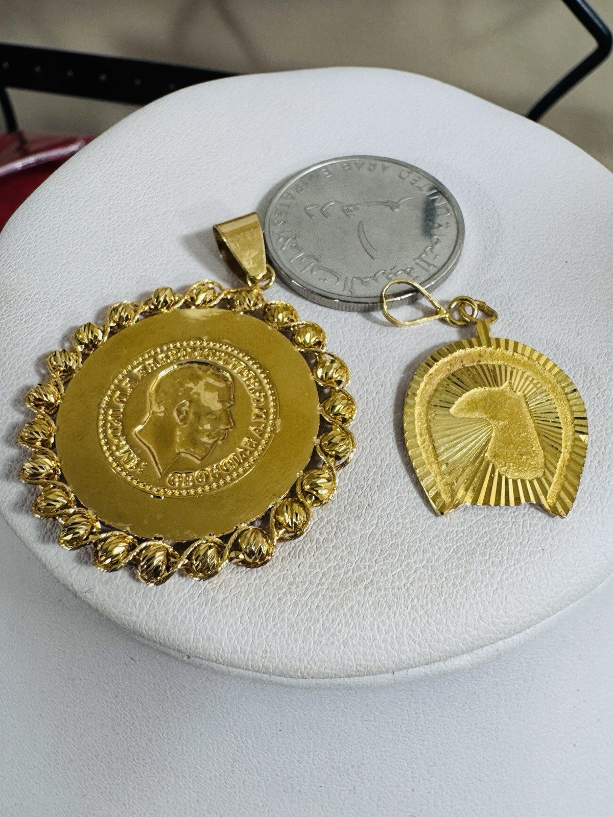 21K 875 Fine Real Gold Two (2) Set of Pendant 21K Horseshoe & 21K Coin 8.7g
