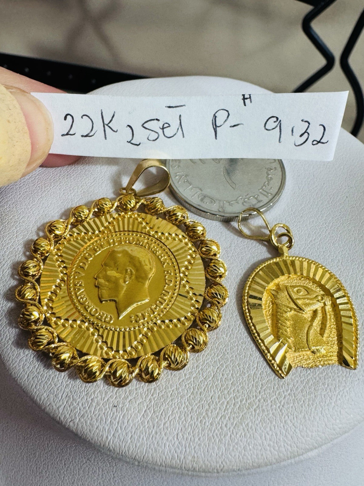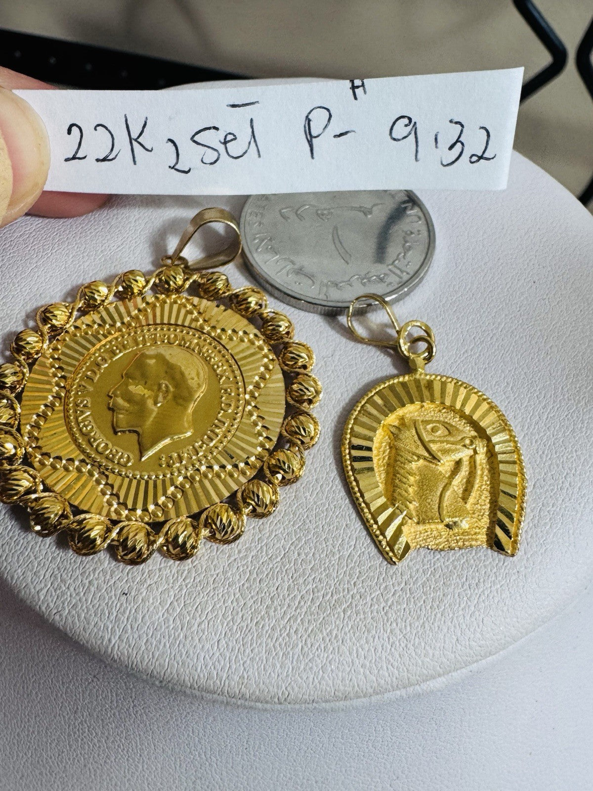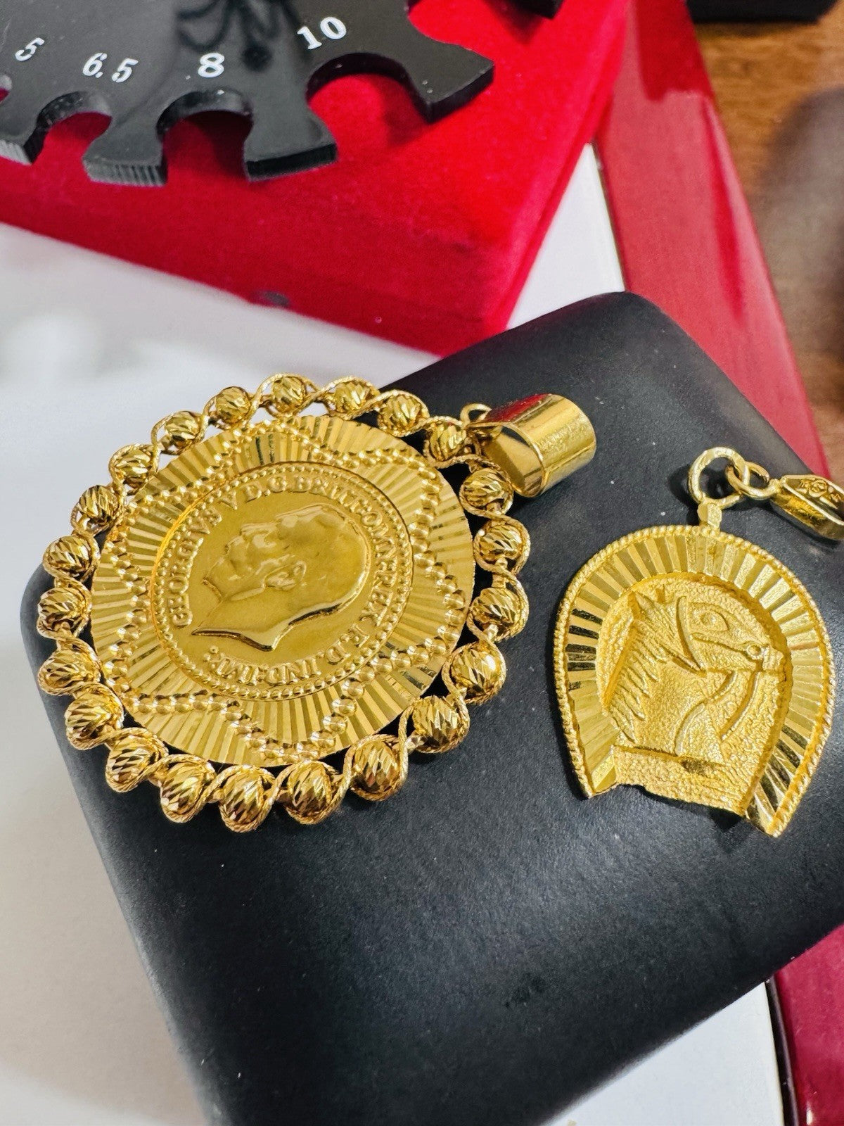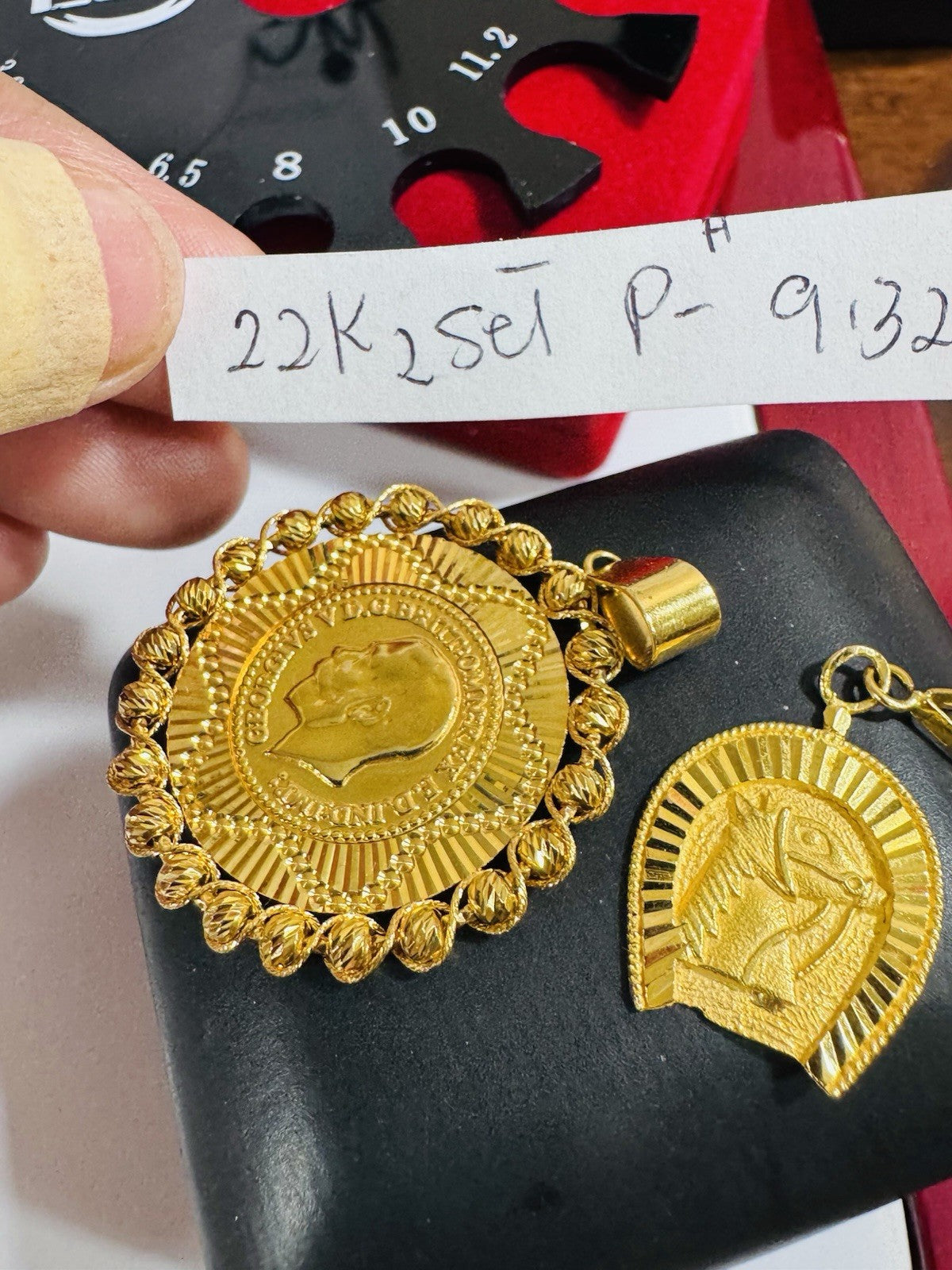 21K 875 Fine Real Gold Two (2) Set of Pendant 21K Horseshoe & 21K Coin 8.7g