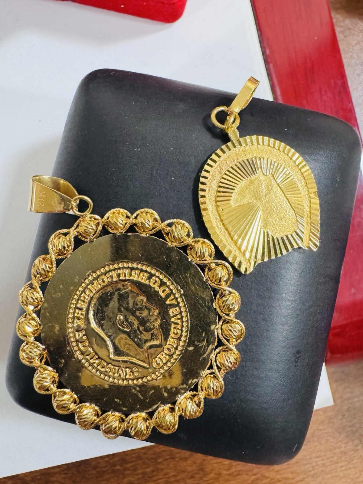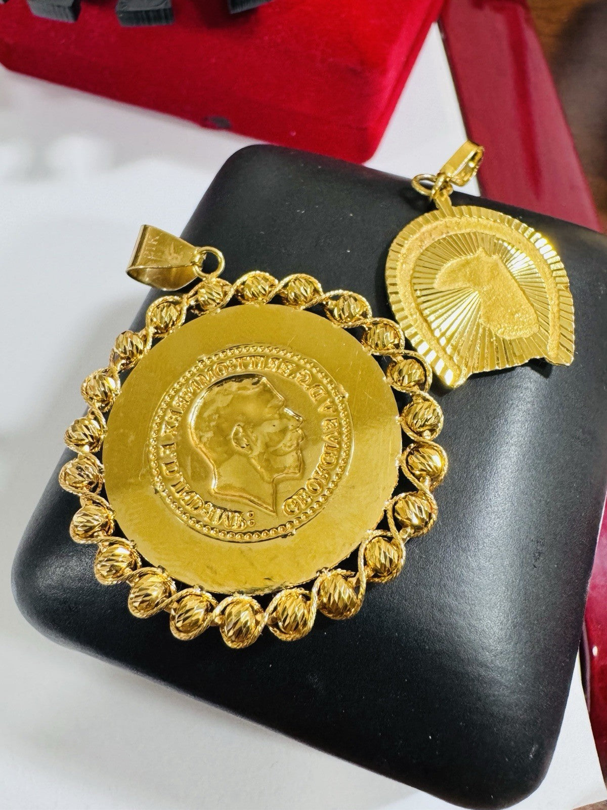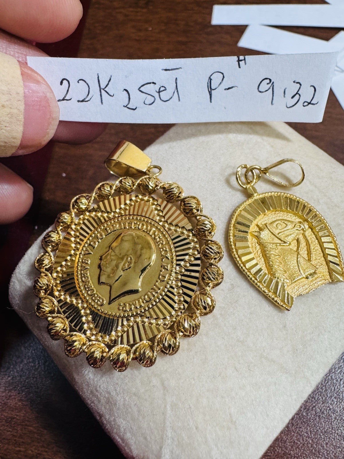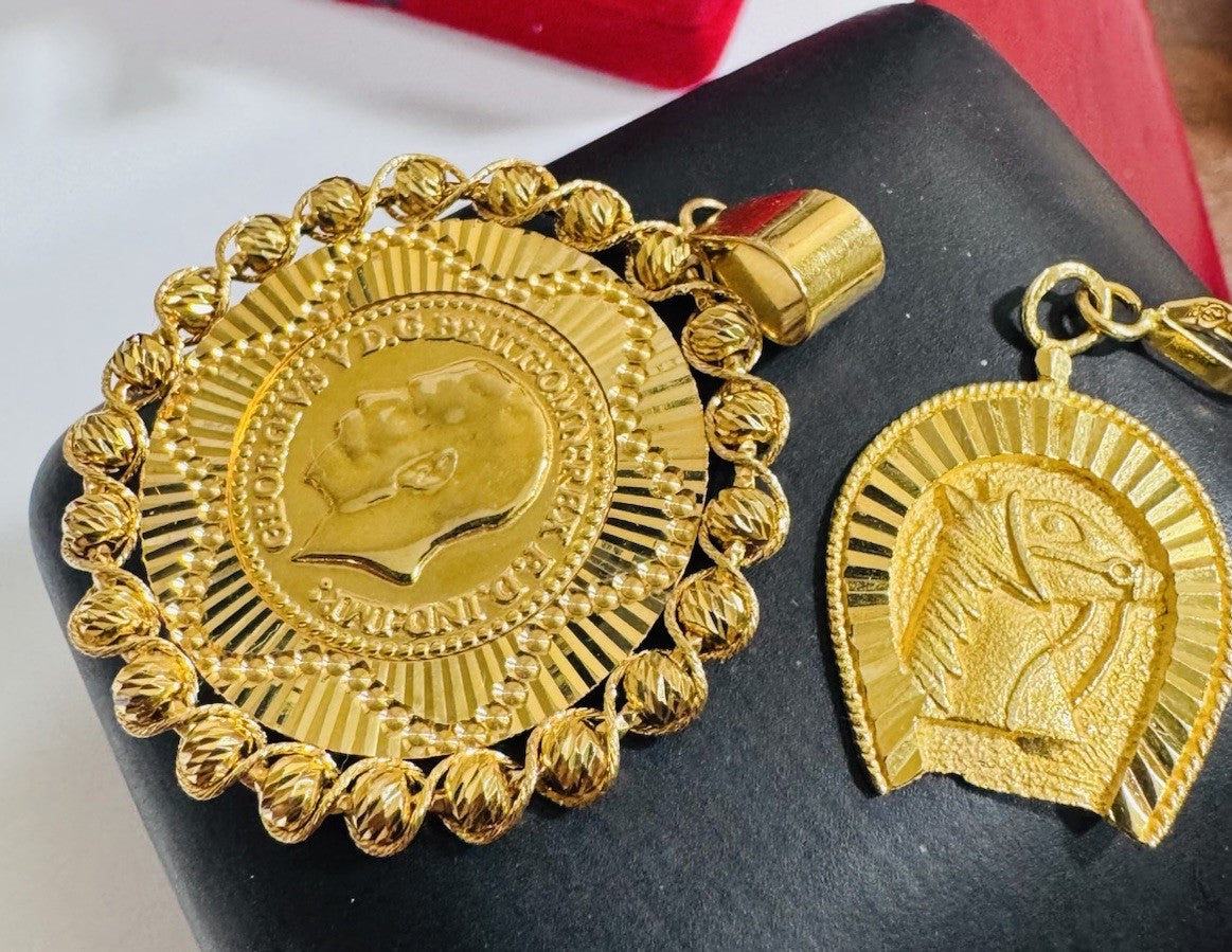 21K 875 Fine Real Gold Two (2) Set of Pendant 21K Horseshoe & 21K Coin 8.7g