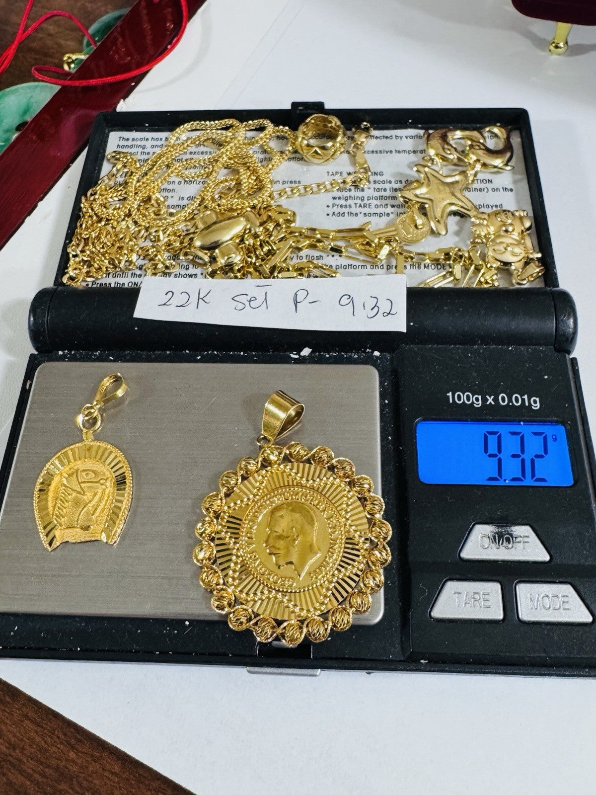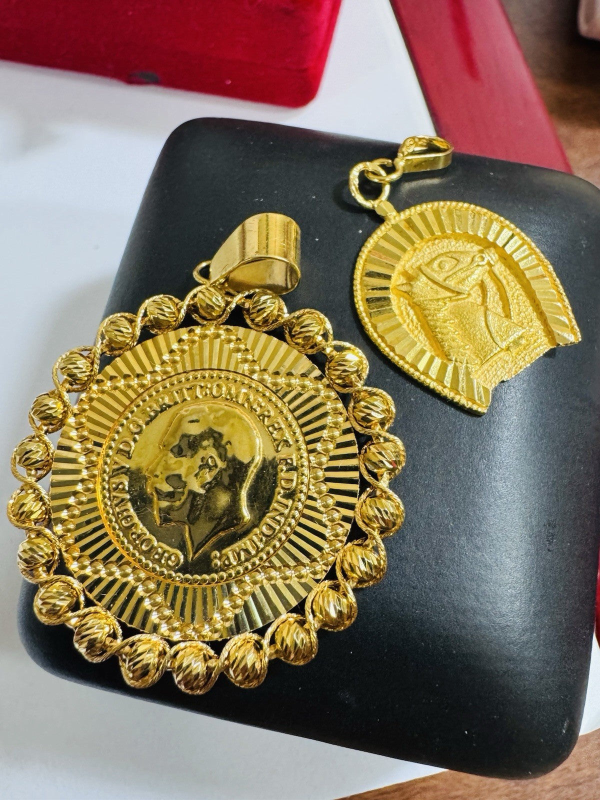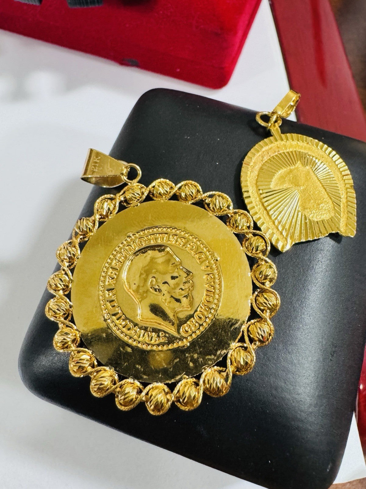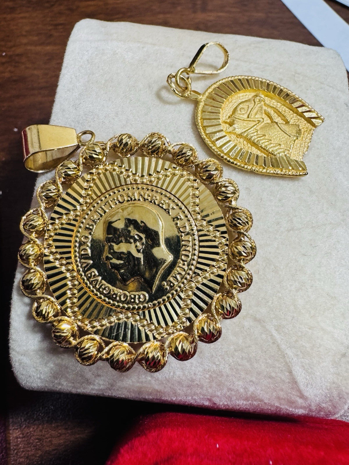21K 875 Fine Real Gold Two (2) Set of Pendant 21K Horseshoe & 21K Coin 8.7g