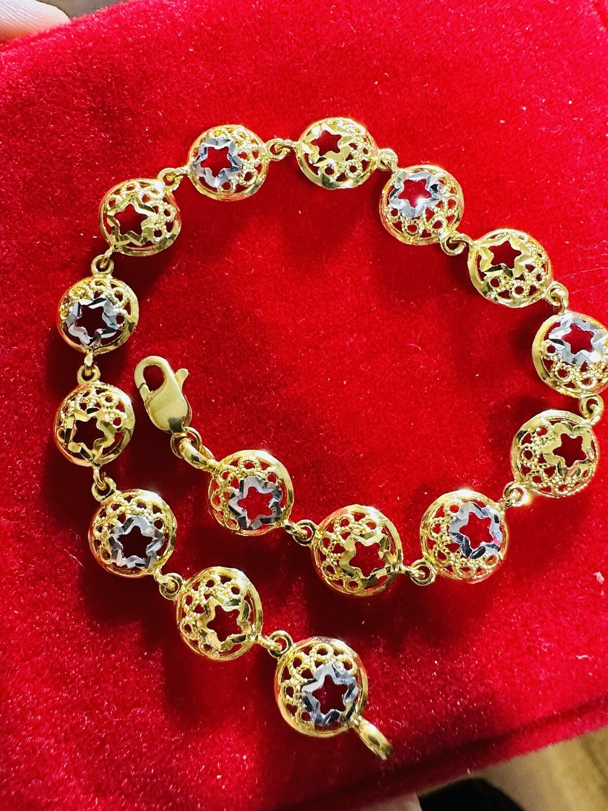 Hello You are buying Real Brand New 22K Yellow Saudi Real Two tone Gold 916 Women fits 7.5” long Bracelet 9.2g Beautiful piece, Fast Ship