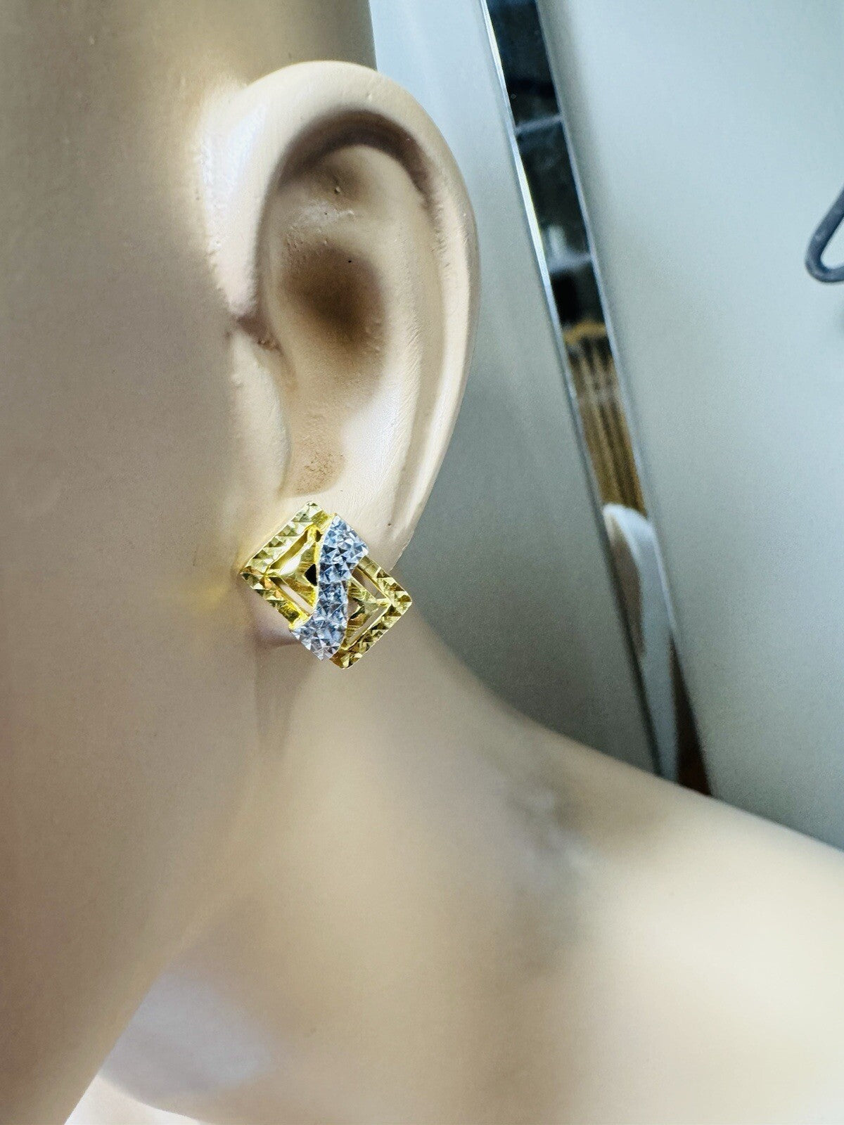 22C 22KT 916 Gold 20” Long Rectangle Set Earring Necklace 12.7g 1.6mm Two-tone