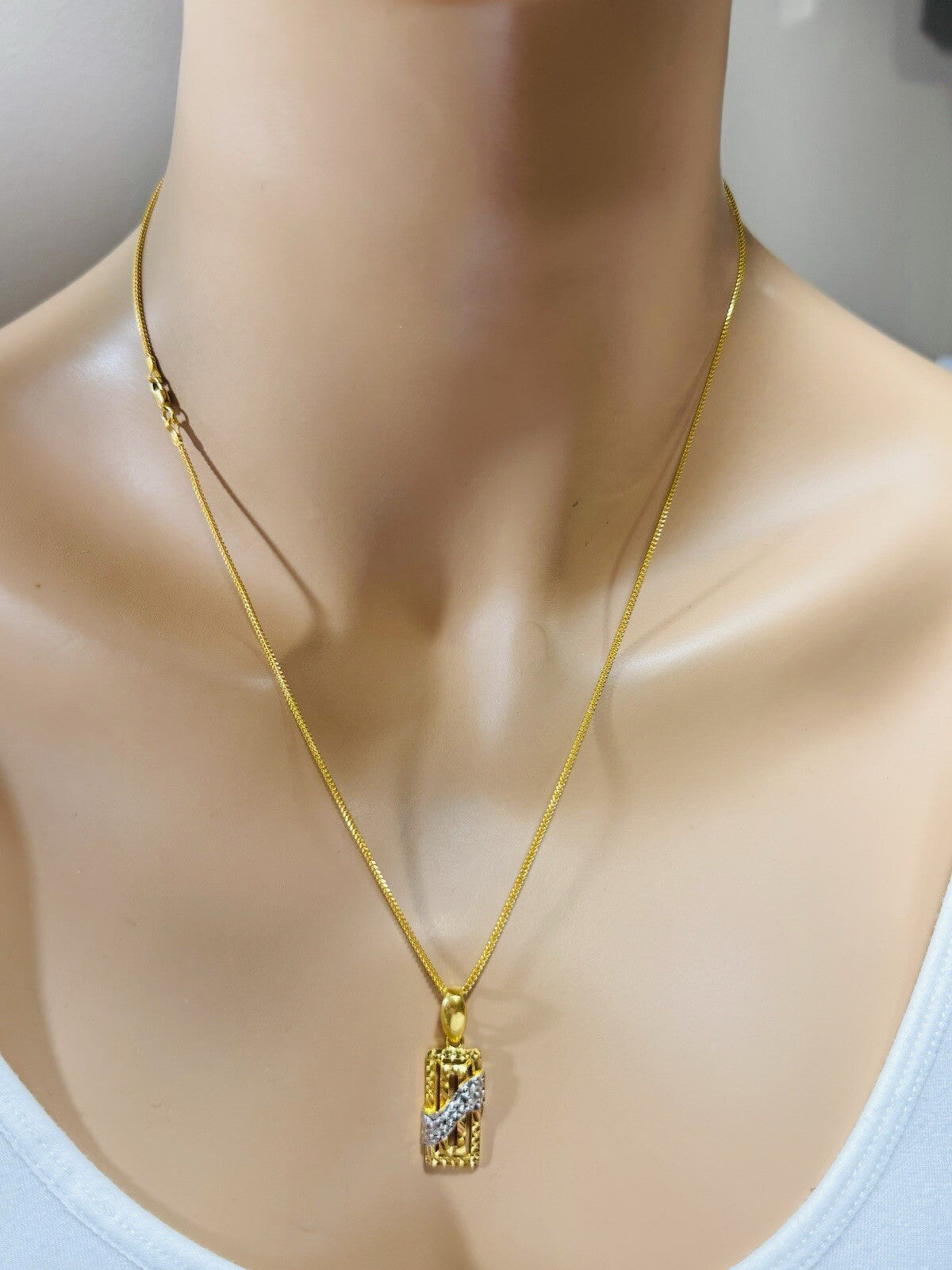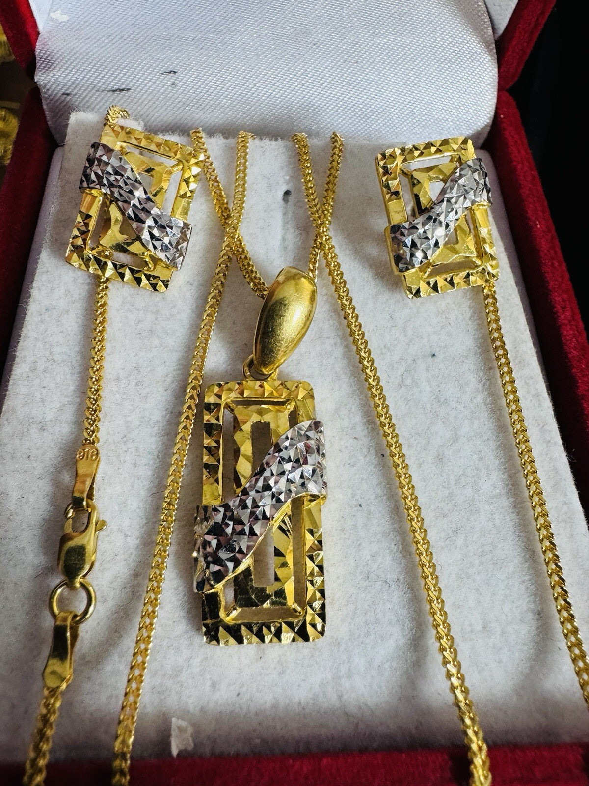 * Hello You are buying Real Brand New 22K 916 Fine Yellow Saudi Gold Women’s chain Set Earring Necklace With 20” long 1.6mm 12.7 grams USA Seller Fast shipping! Two tone set.