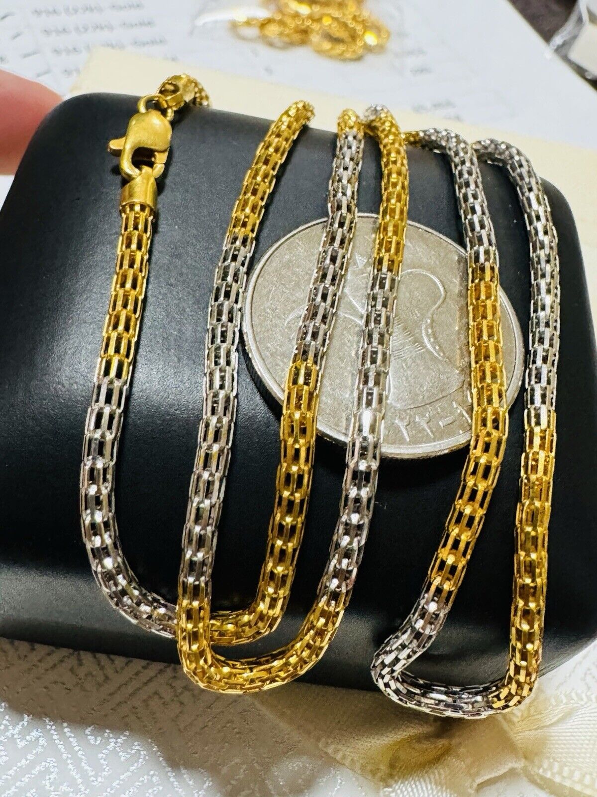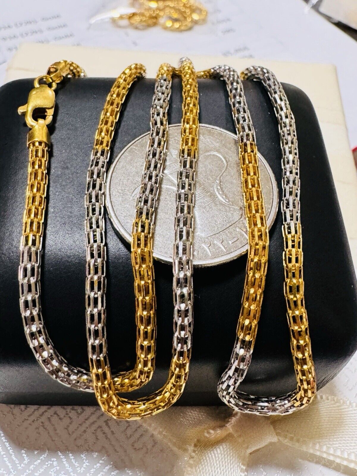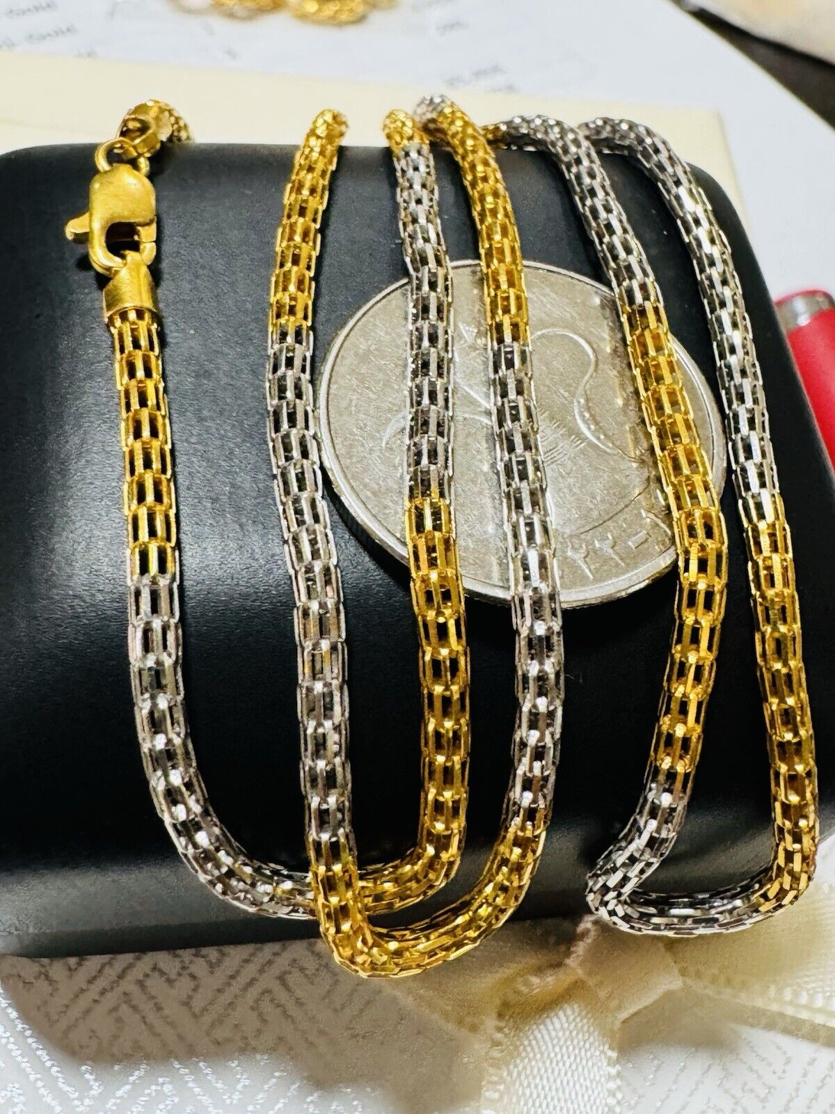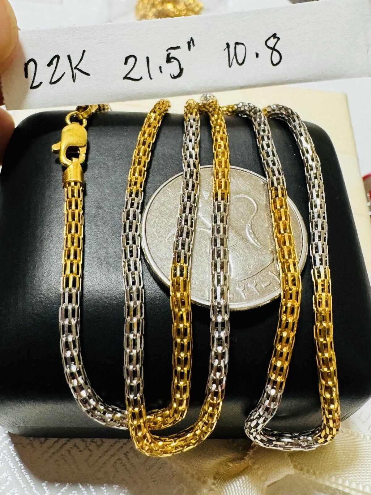 * Hello You are buying Real Brand New 22K 916 Fine Two-tone Gold Mens Women’s chain Necklace With 21.5” long 3.2mm 10.8 grams USA Seller Fast shipping!