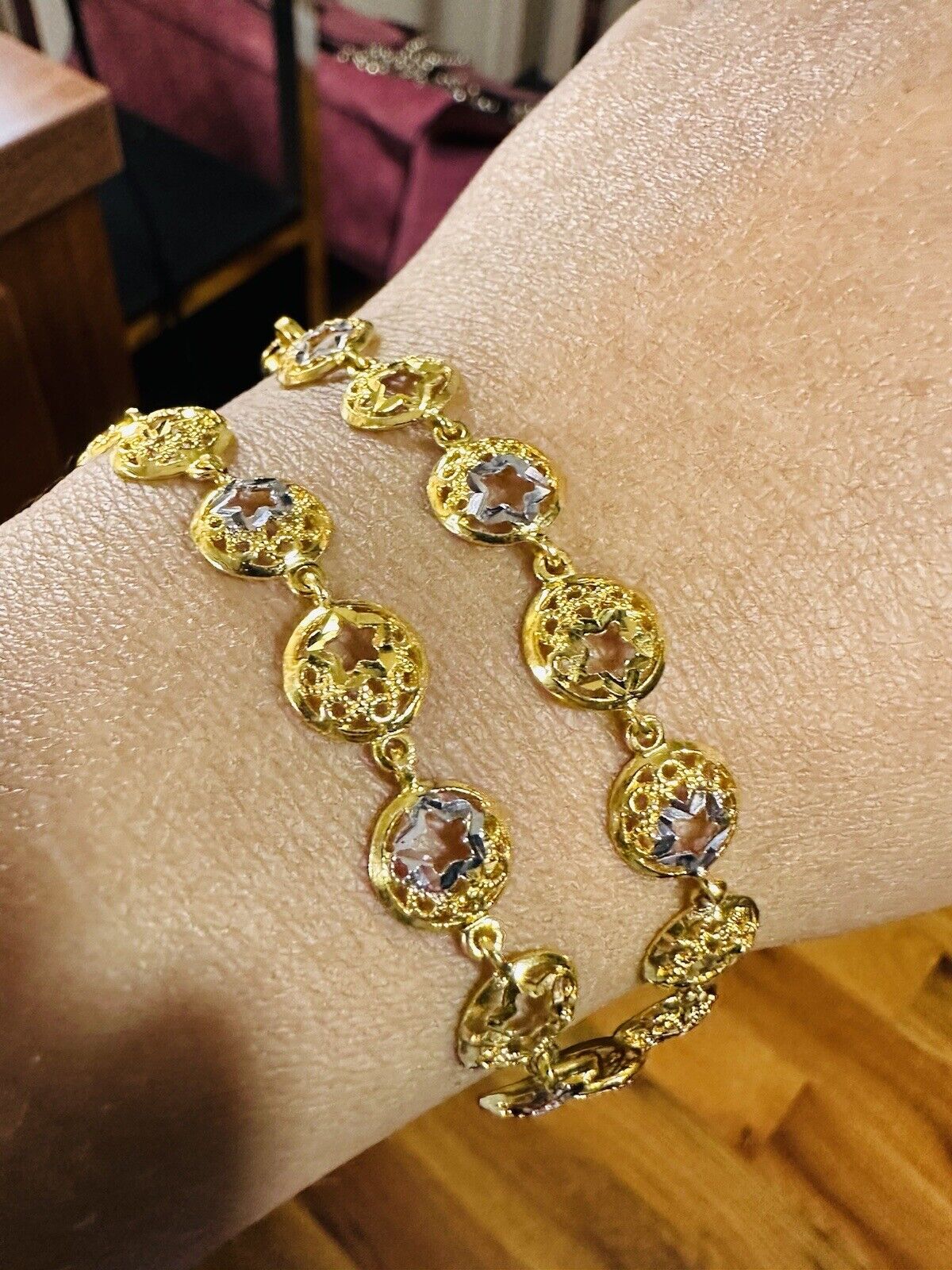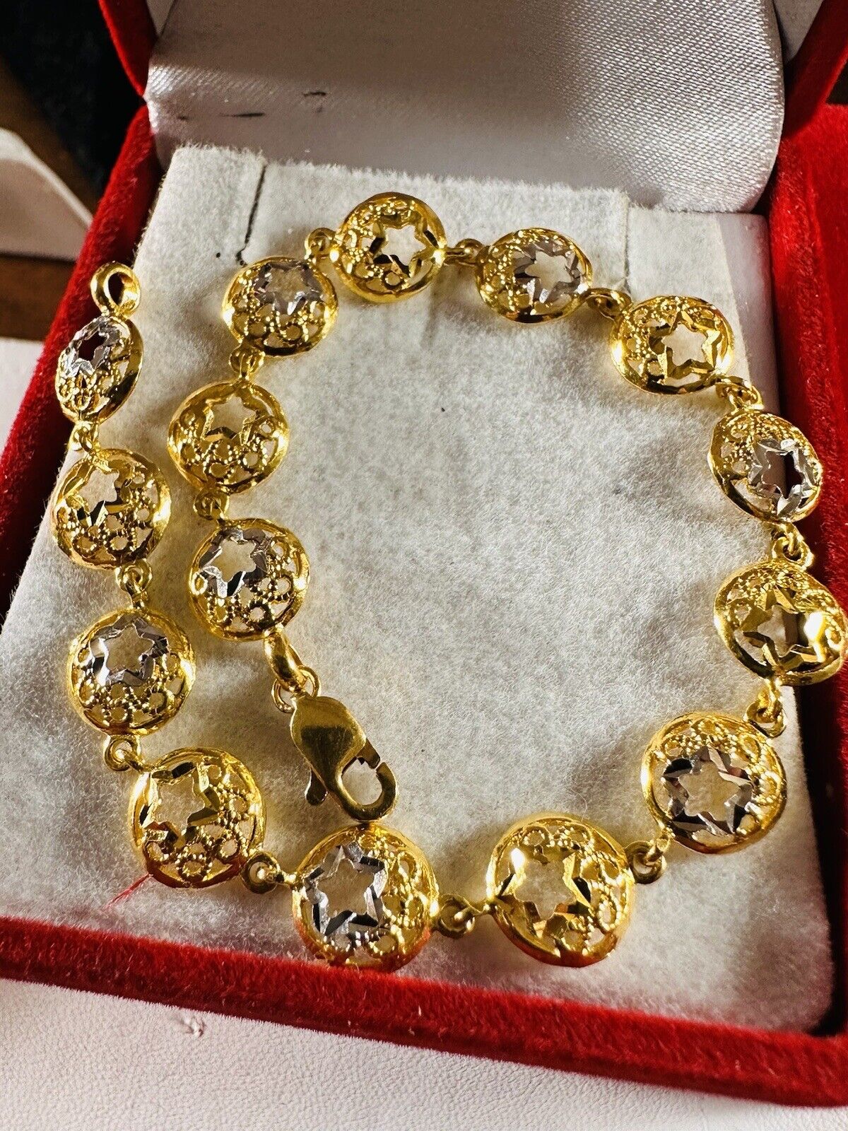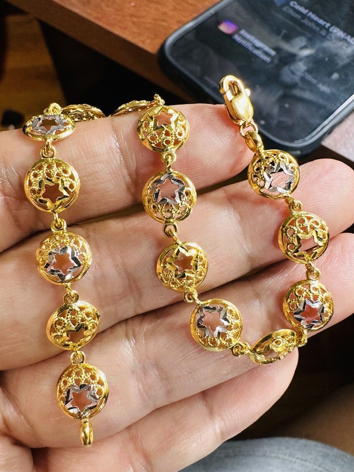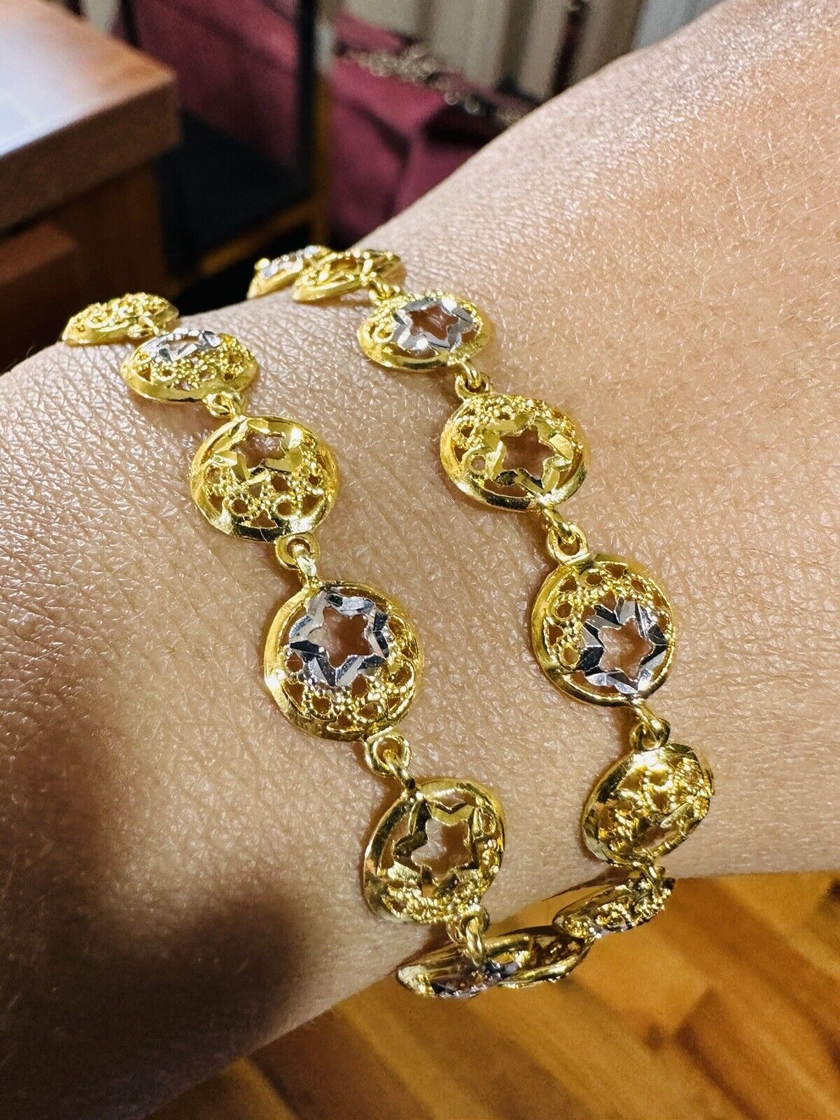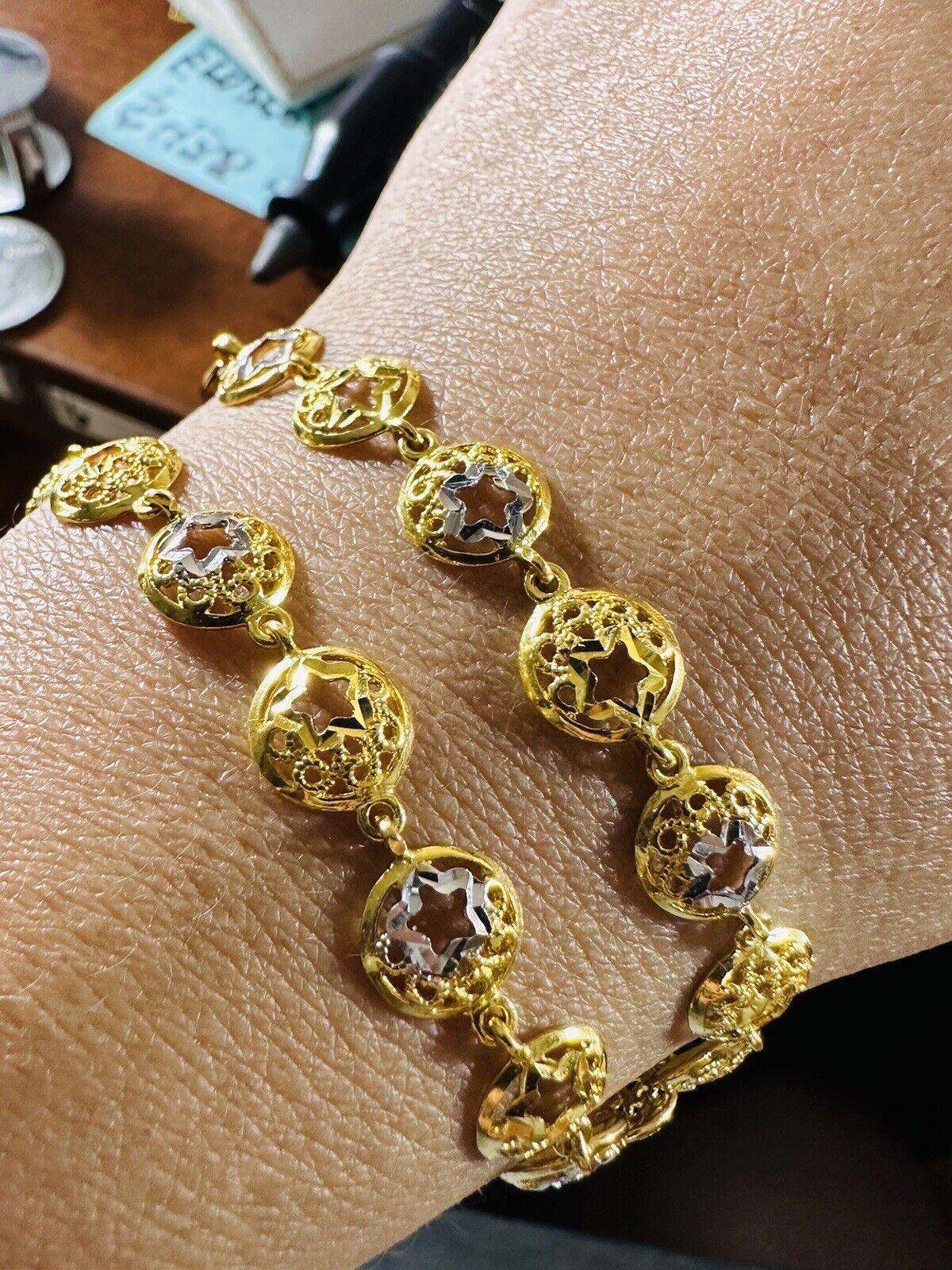 Hello You are buying Real Brand New 22K Yellow Saudi Real Two tone Gold 916 Women fits 7.5” long Bracelet 9.2g Beautiful piece, Fast Ship