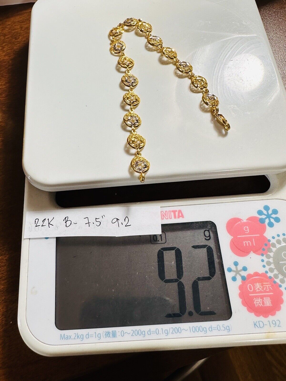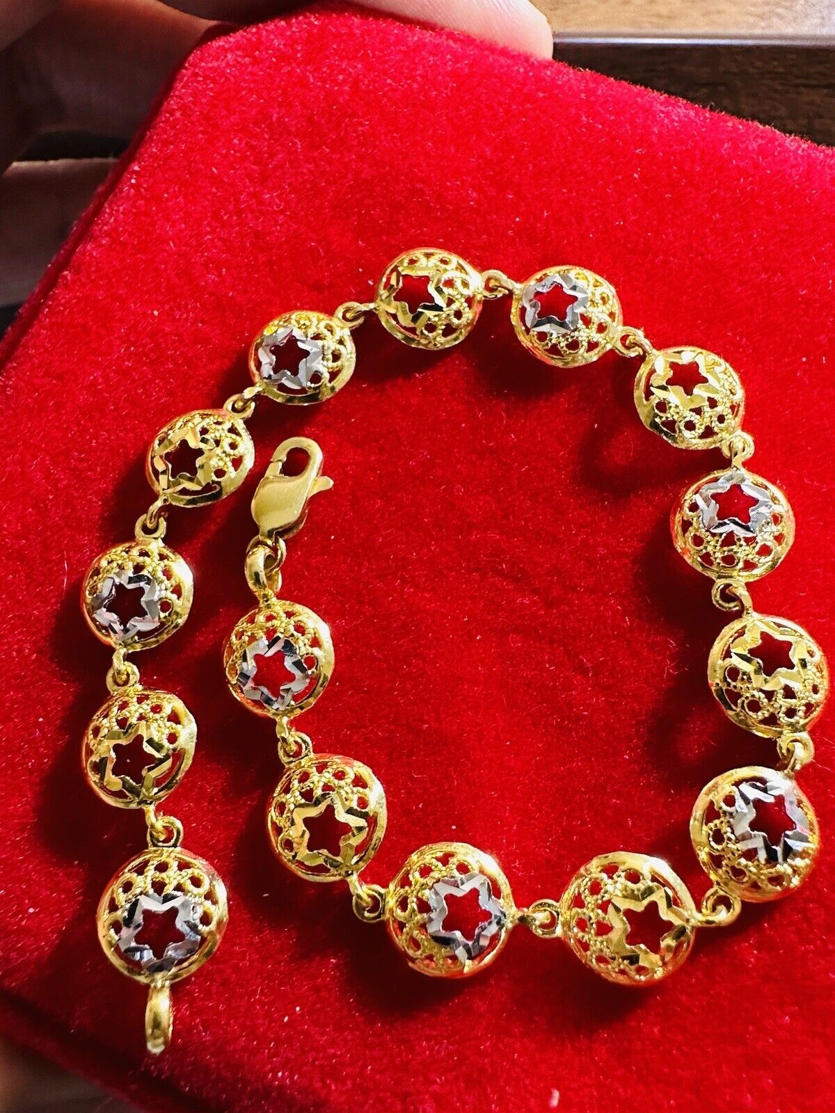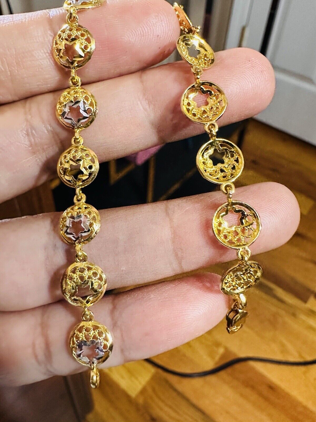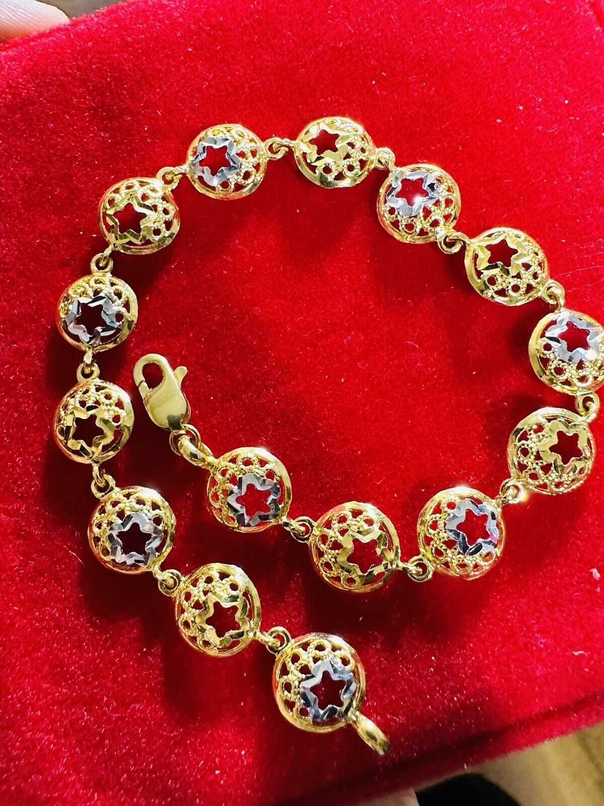 Hello You are buying Real Brand New 22K Yellow Saudi Real Two tone Gold 916 Women fits 7.5” long Bracelet 9.2g Beautiful piece, Fast Ship