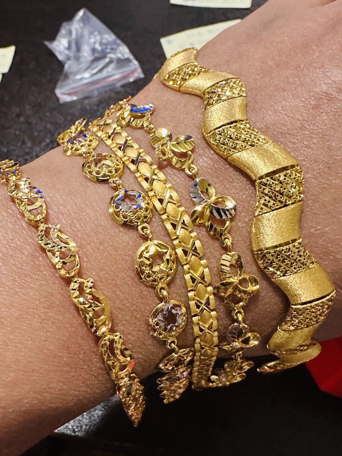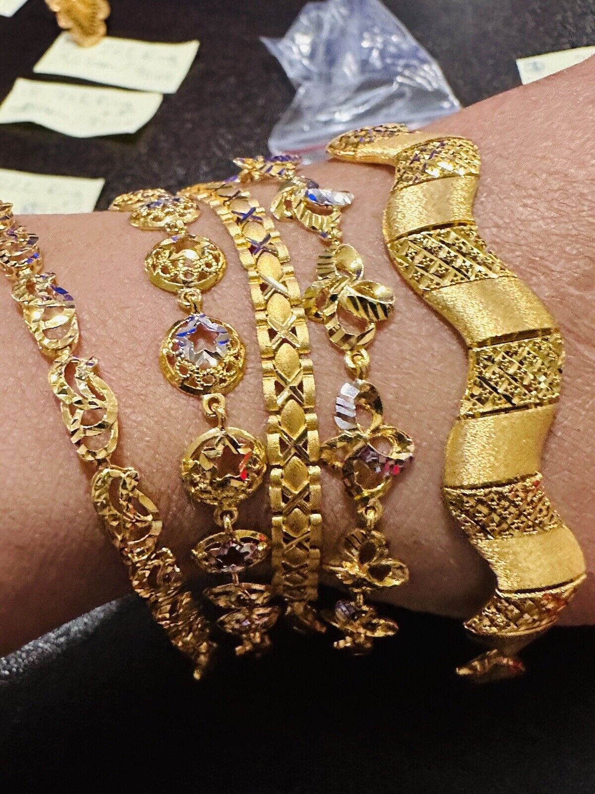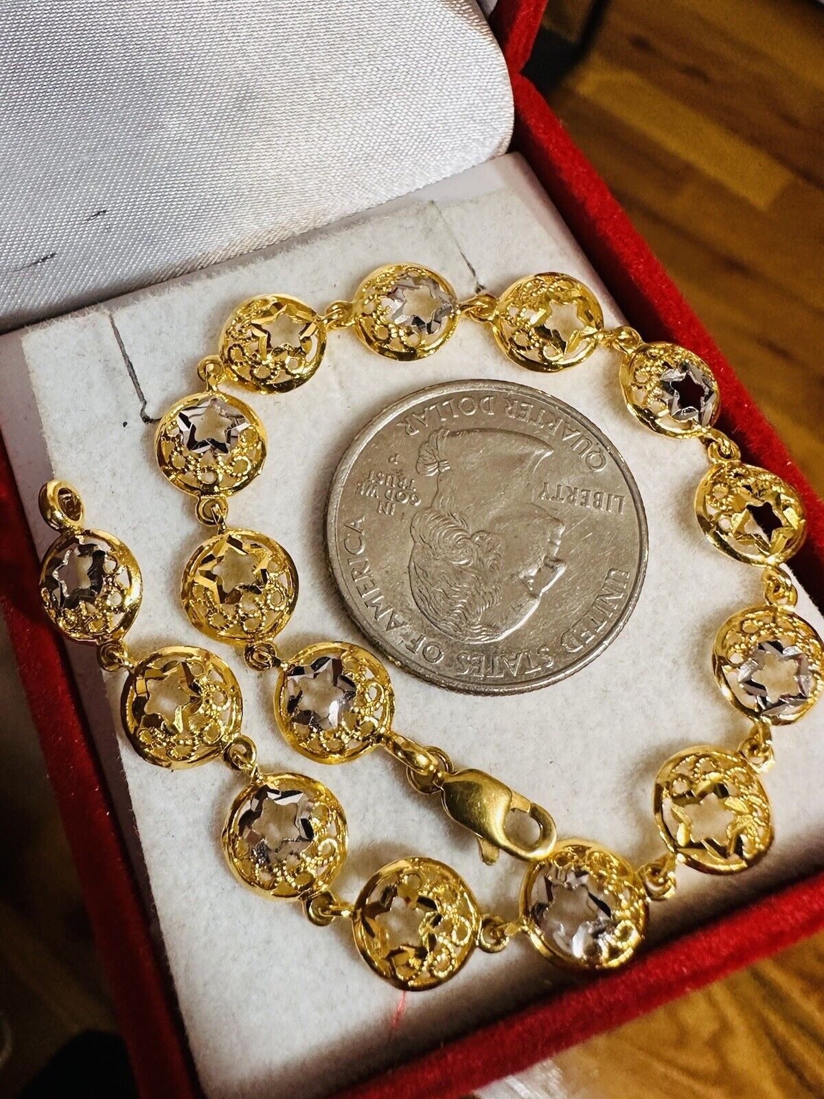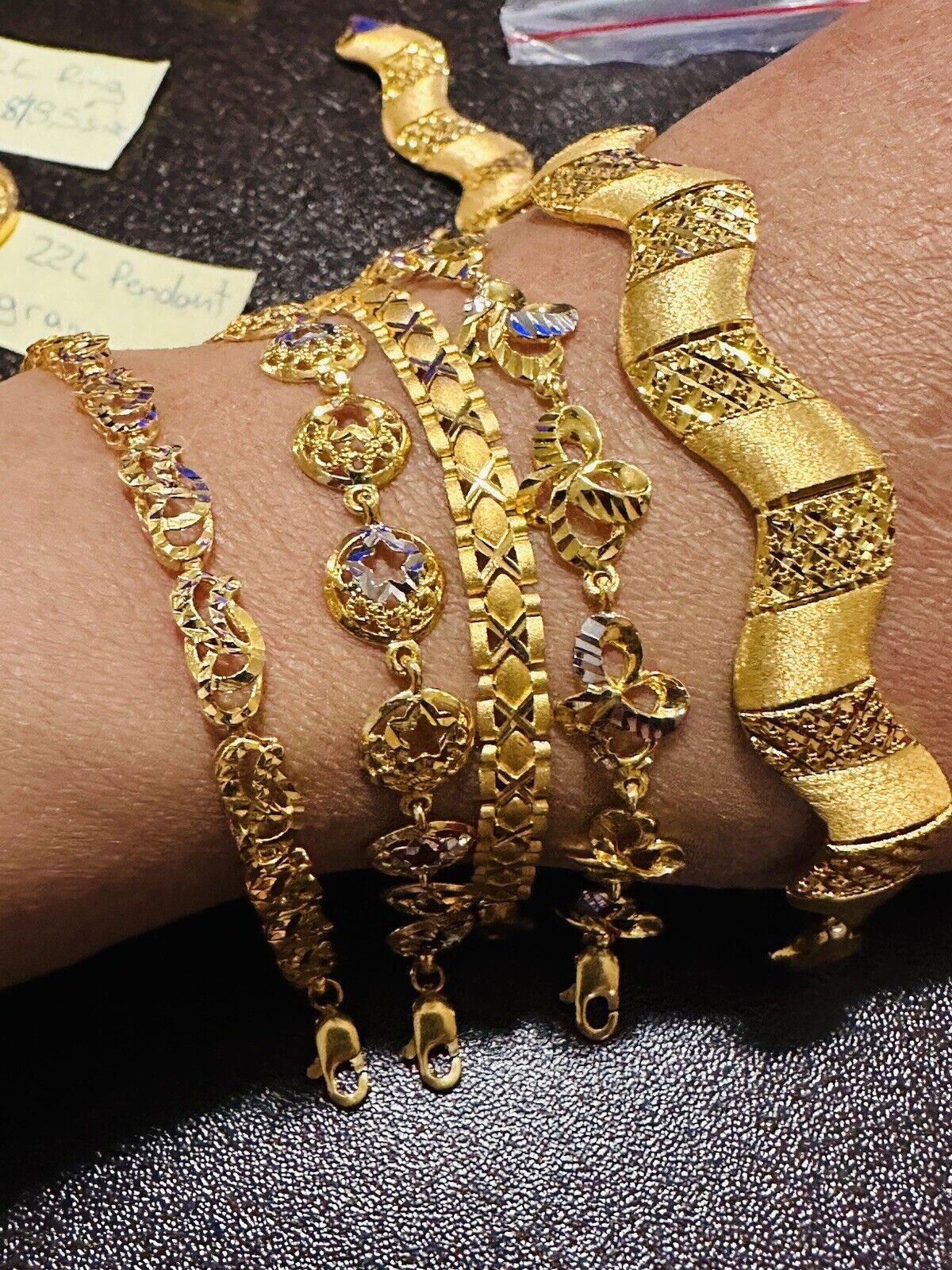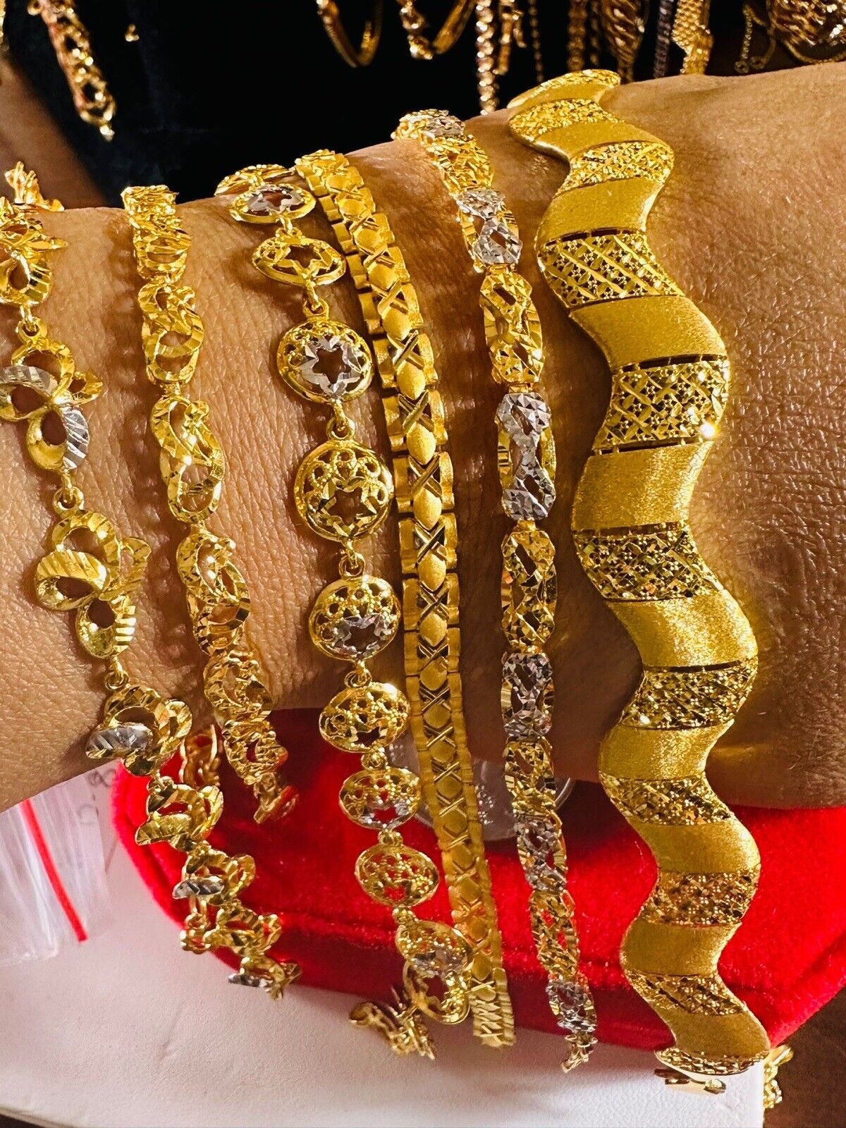 Hello You are buying Real Brand New 22K Yellow Saudi Real Two tone Gold 916 Women fits 7.5” long Bracelet 9.2g Beautiful piece, Fast Ship