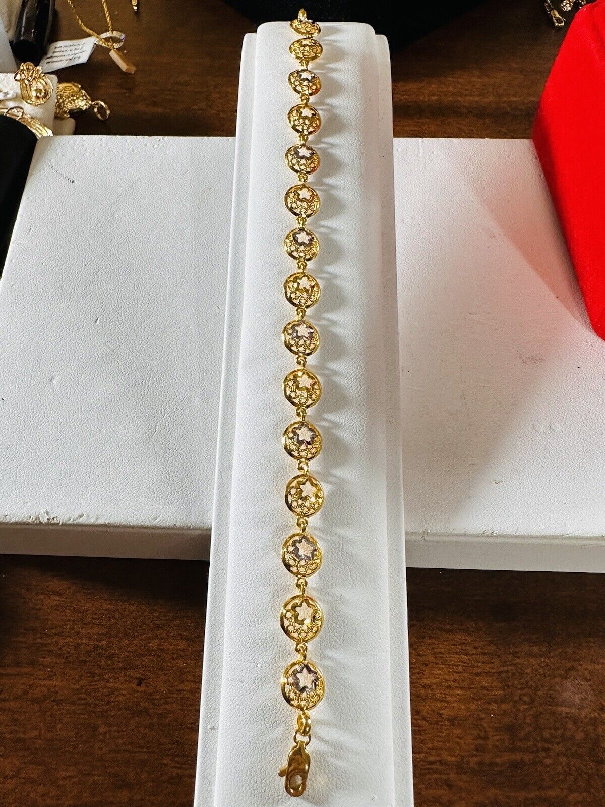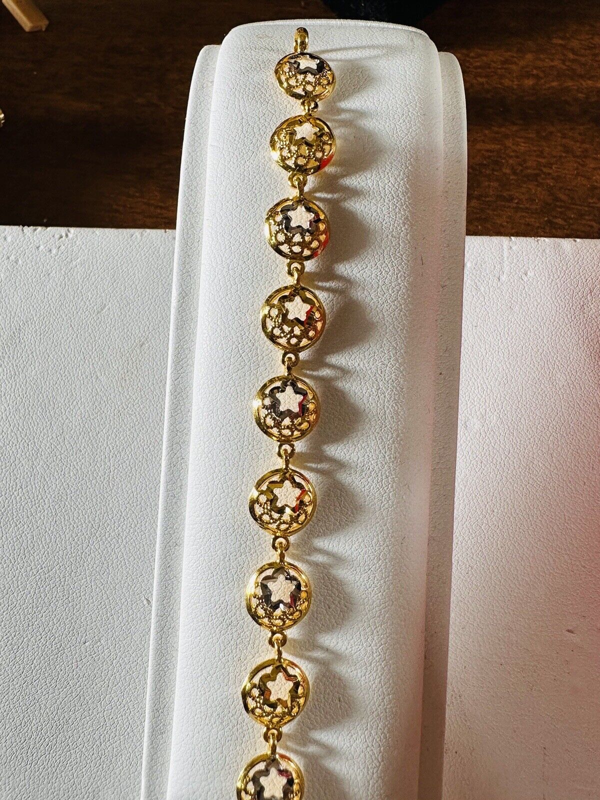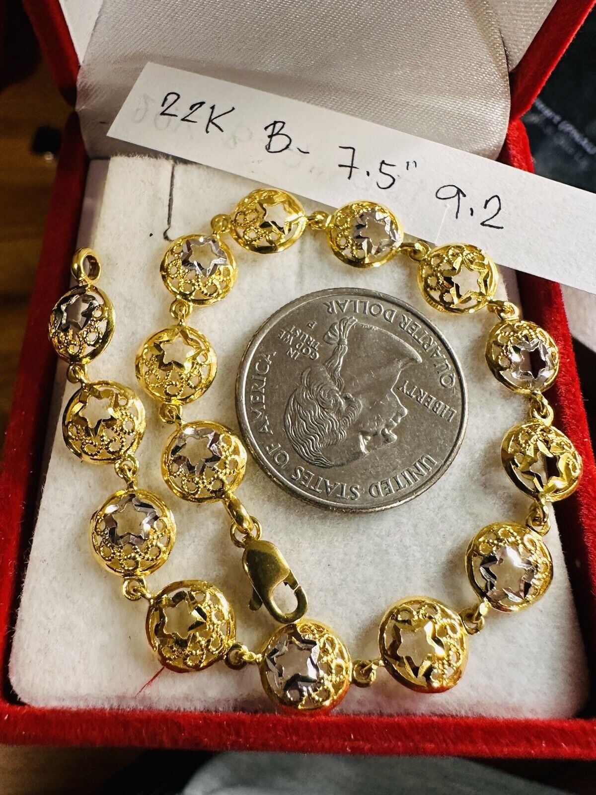 22K 916 Dubai Gold Women’s 7.5” long Unique Round Star Bracelet 9.2g Med/Large
