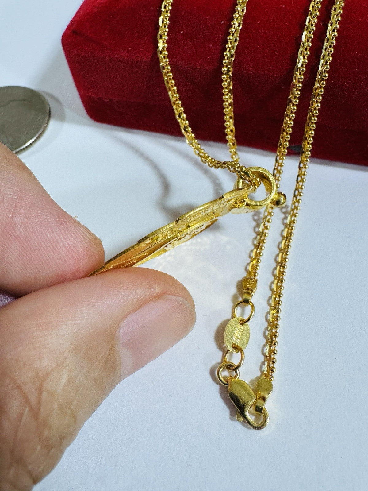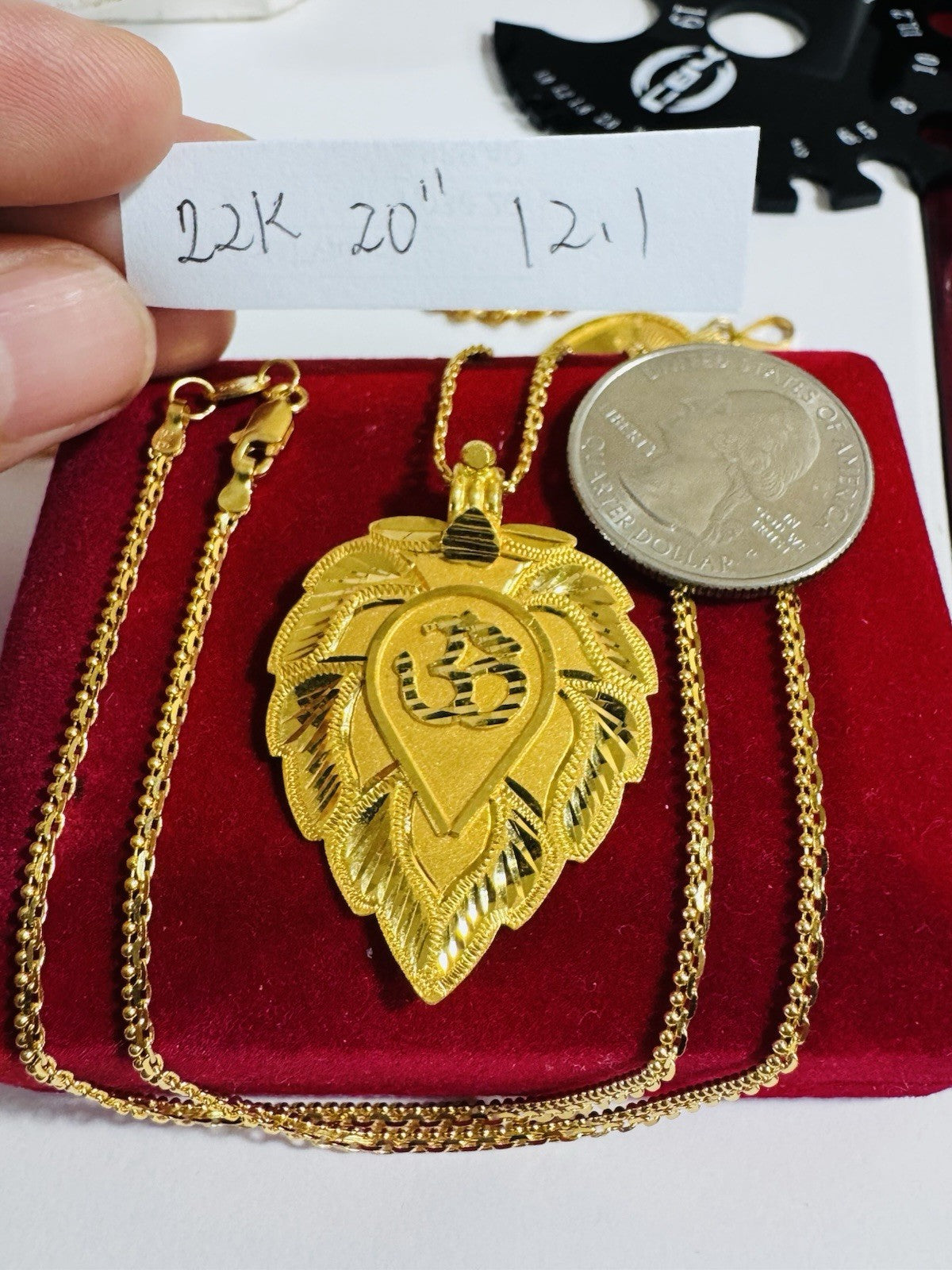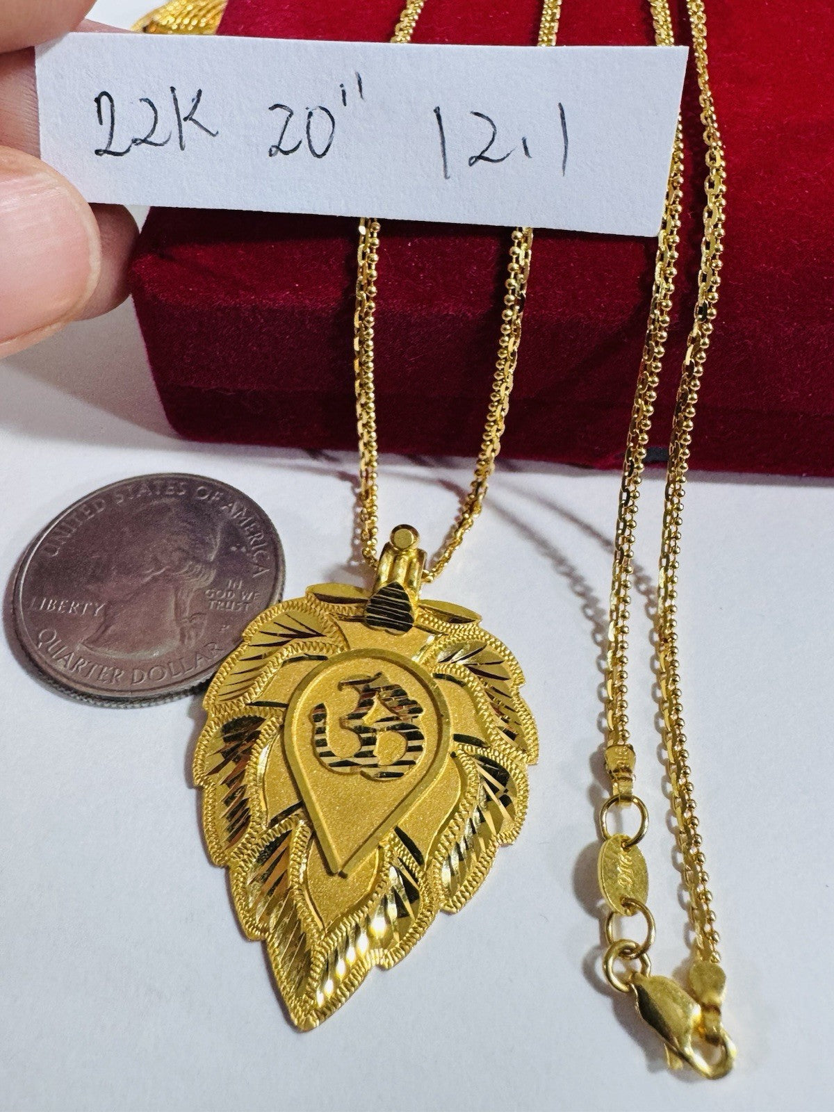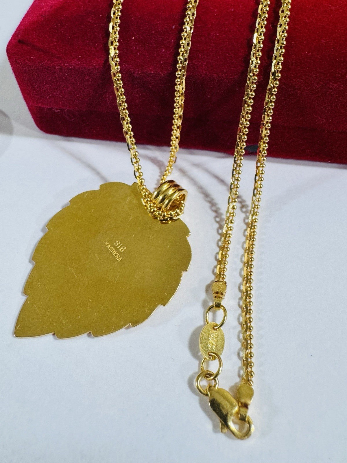 22K 916 Real Gold 20” Long Heart Leaf Necklace 12.1g 2.2mm
