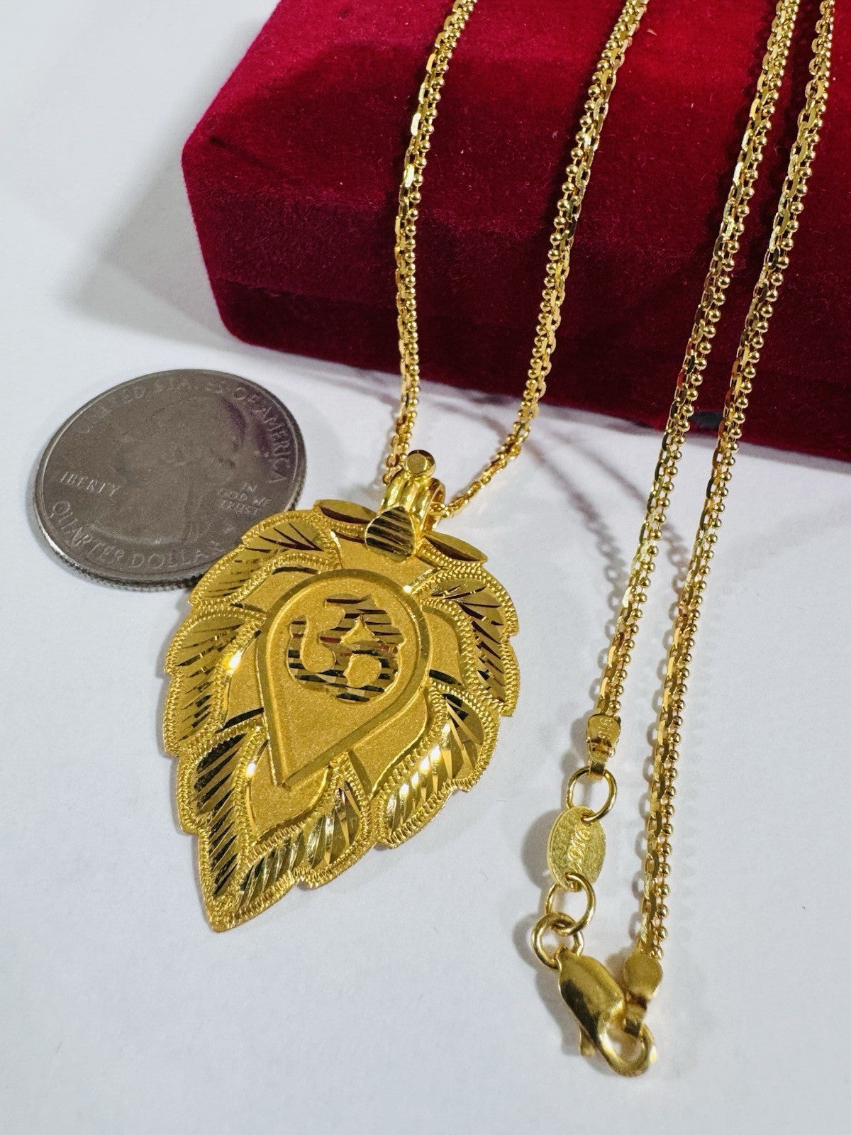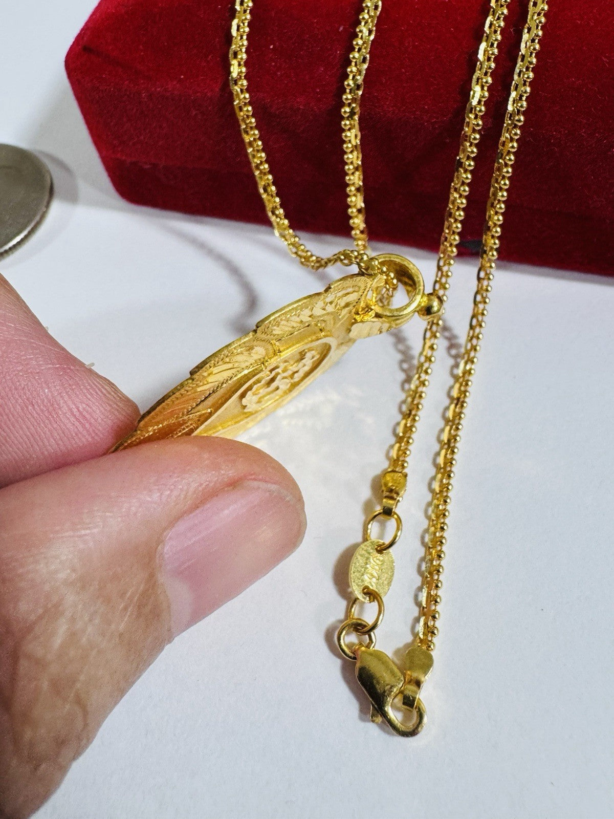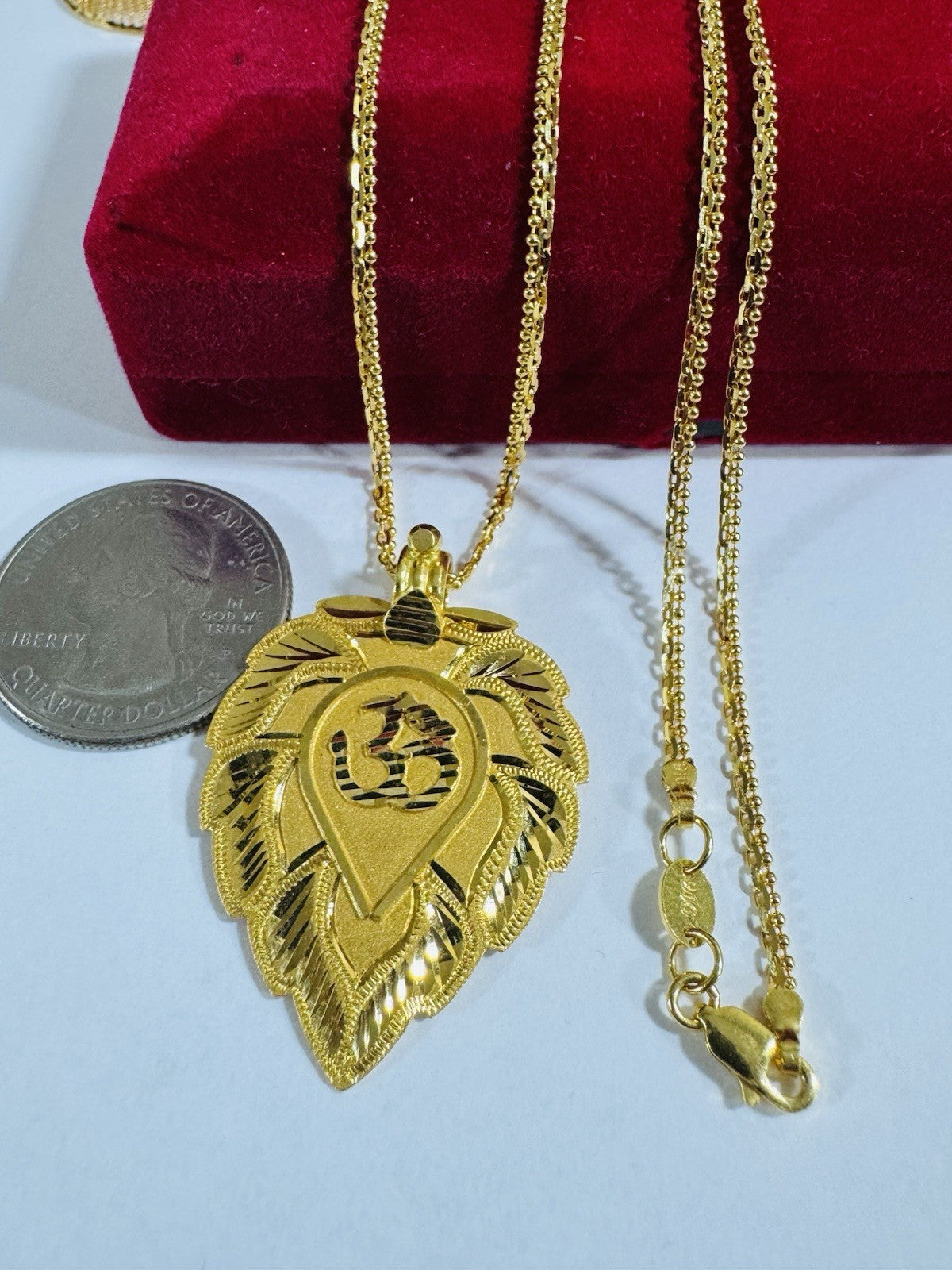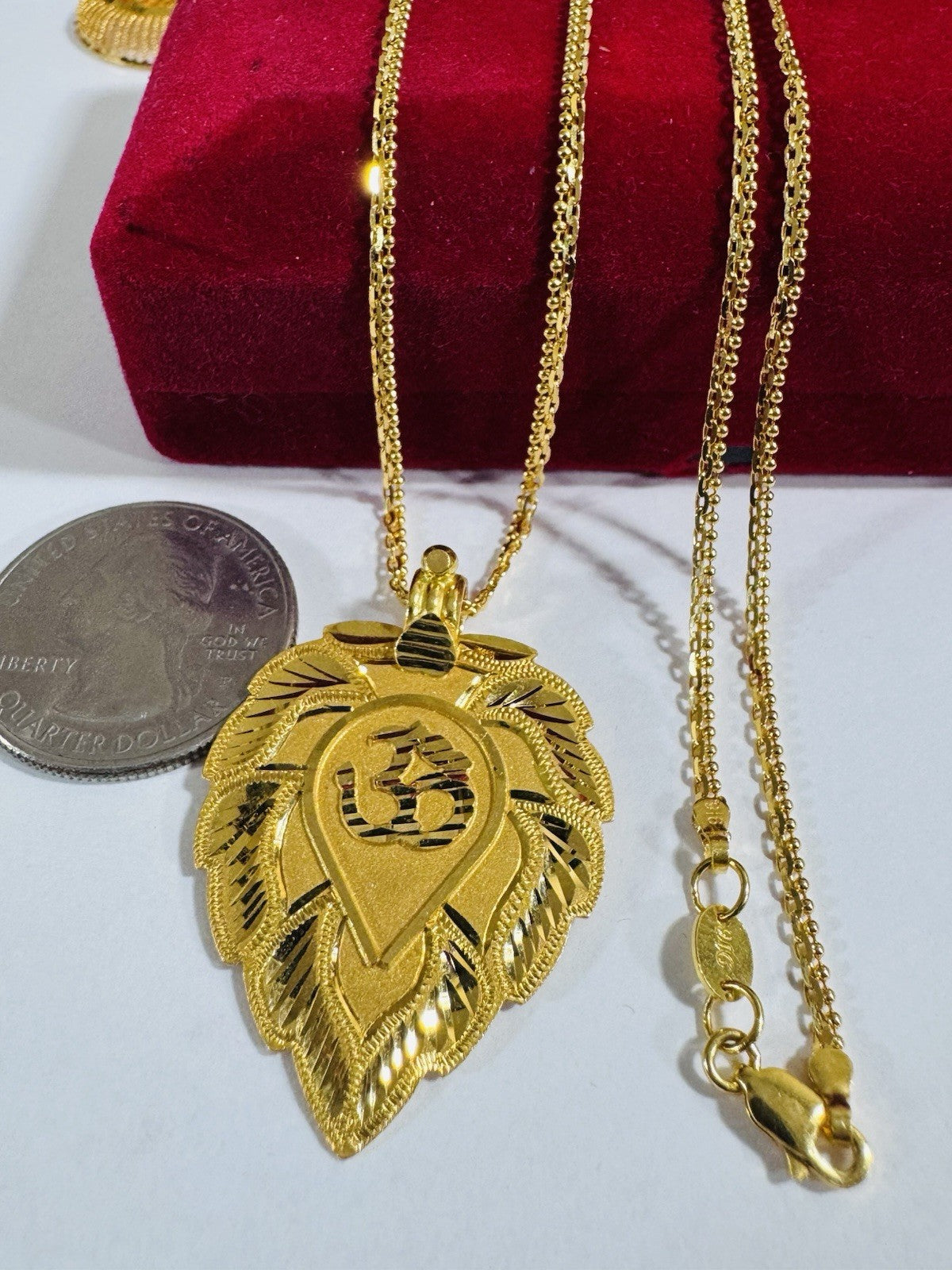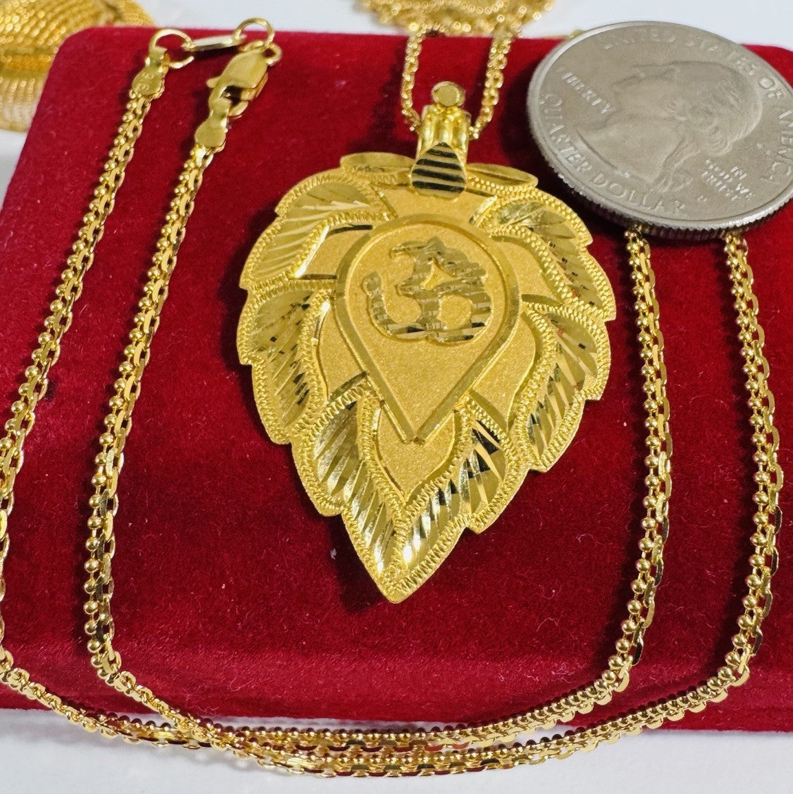 22K 916 Real Gold 20” Long Heart Leaf Necklace 12.1g 2.2mm