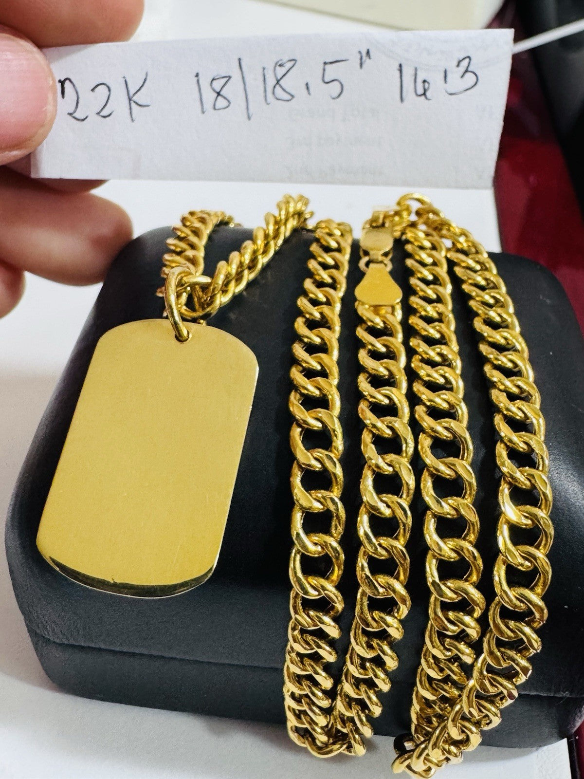 22K 916 Yellow Real Gold 18”/18.5” long Rectangle Set Cuban Necklace 16.3g 5.5mm