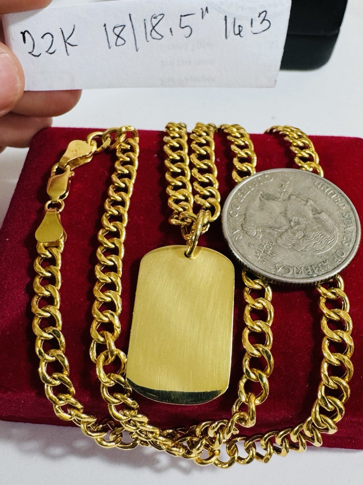 *Hello You are buying Real Beautiful Solid 22K 916 Fine Real Gold 18.5” Long Women’s size Set Necklace 16.3g 5.5mm wide chain