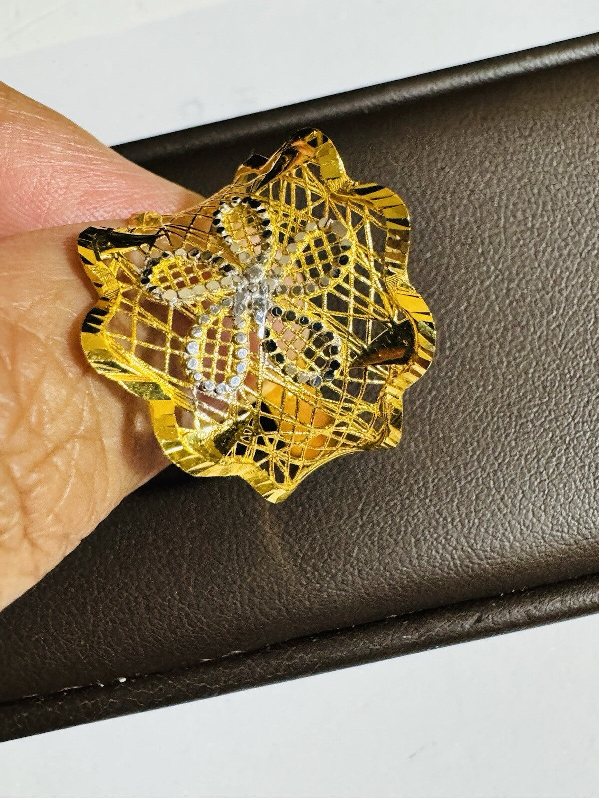 • You are buying Real Beautiful Dubai 22K 916 Yellow Saudi Real UAE Gold Women’s Unique Style Ring 4.5g Fits on 9.5/10” very Rare items hard to find. Two tone colors