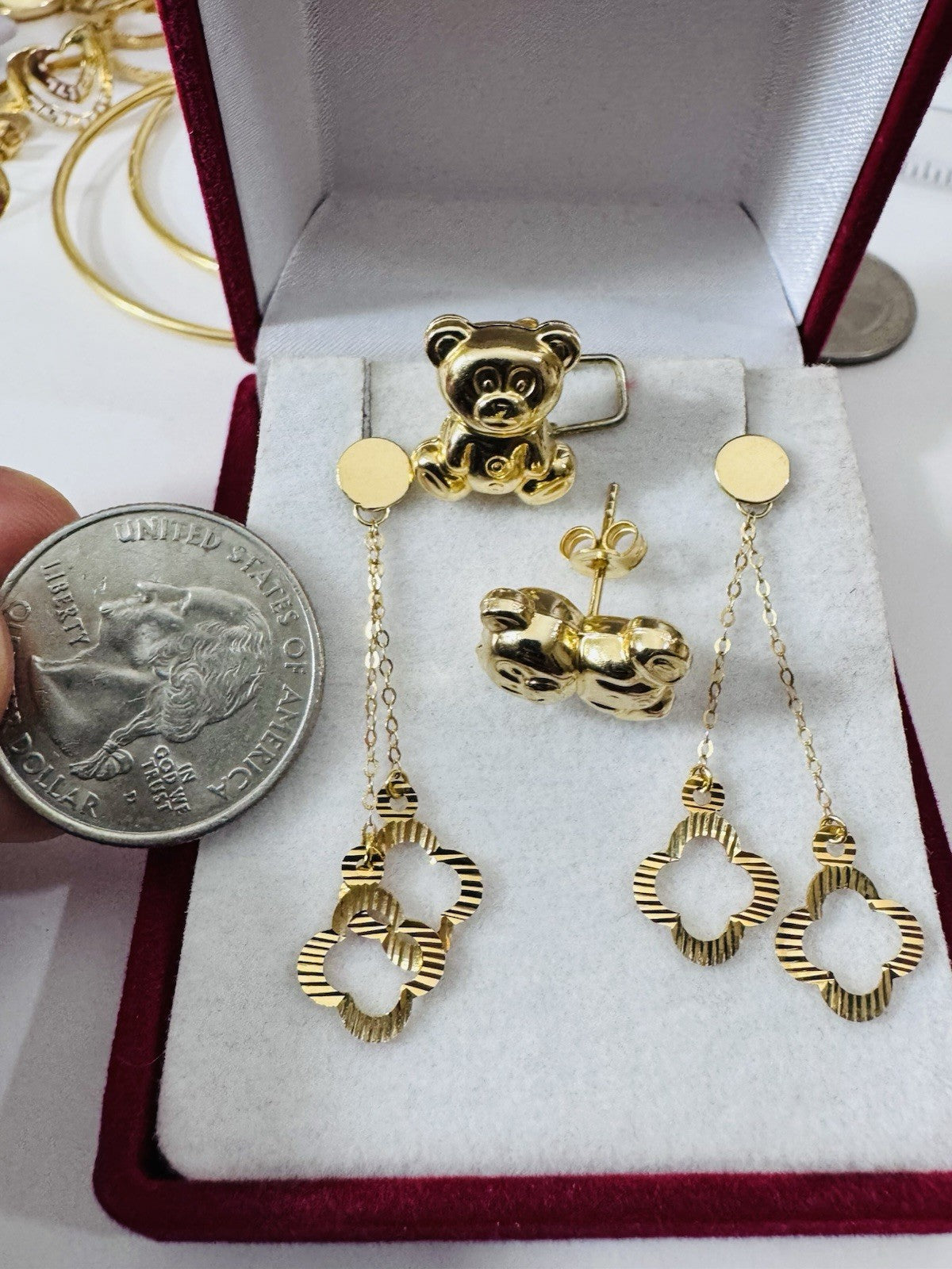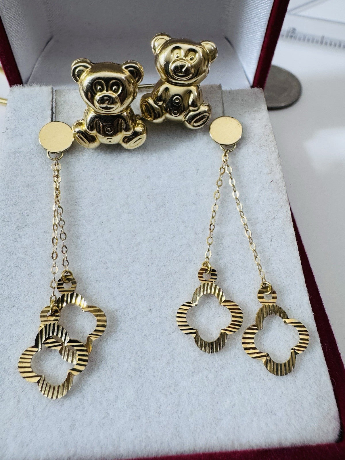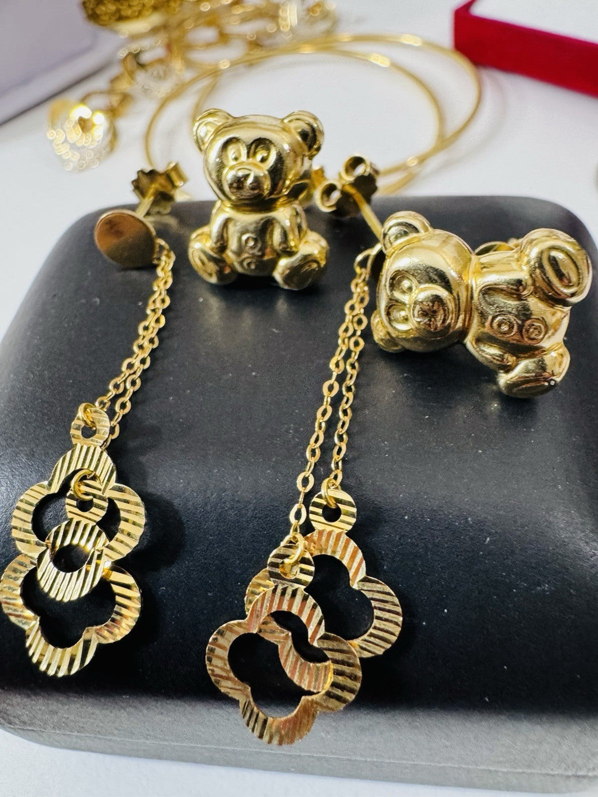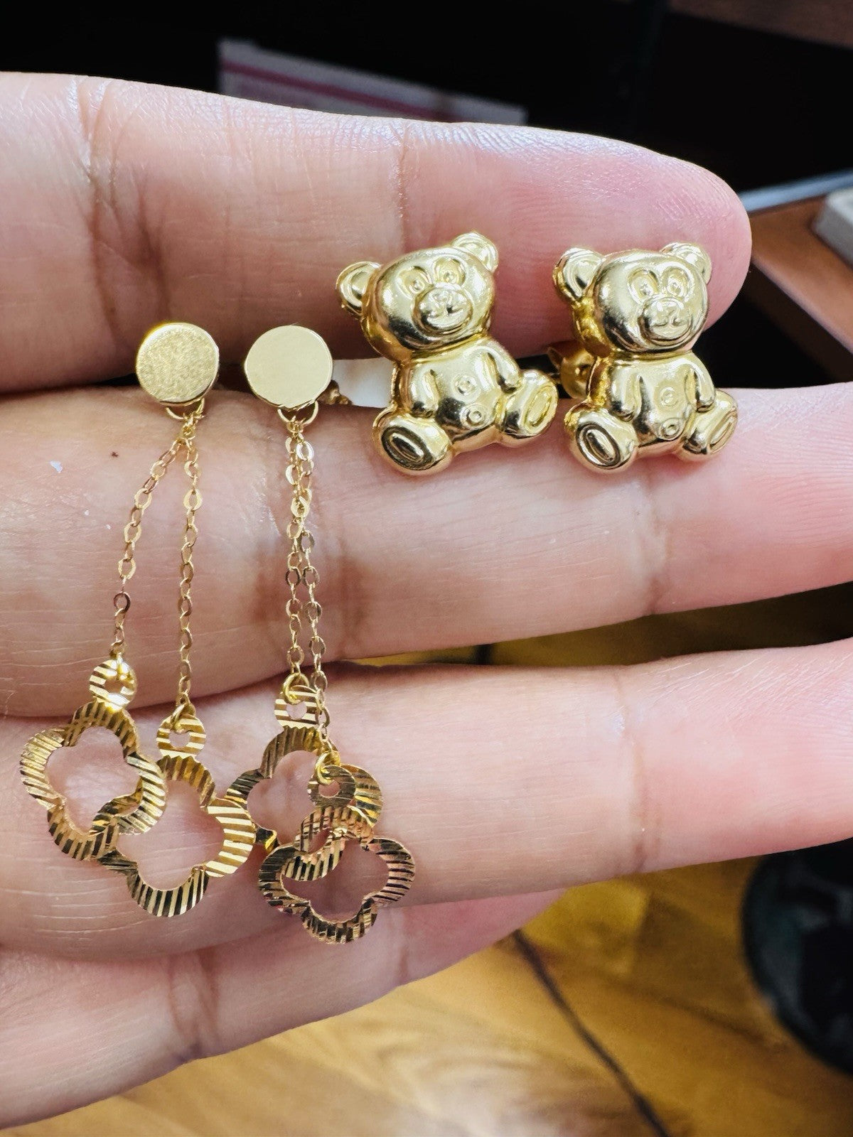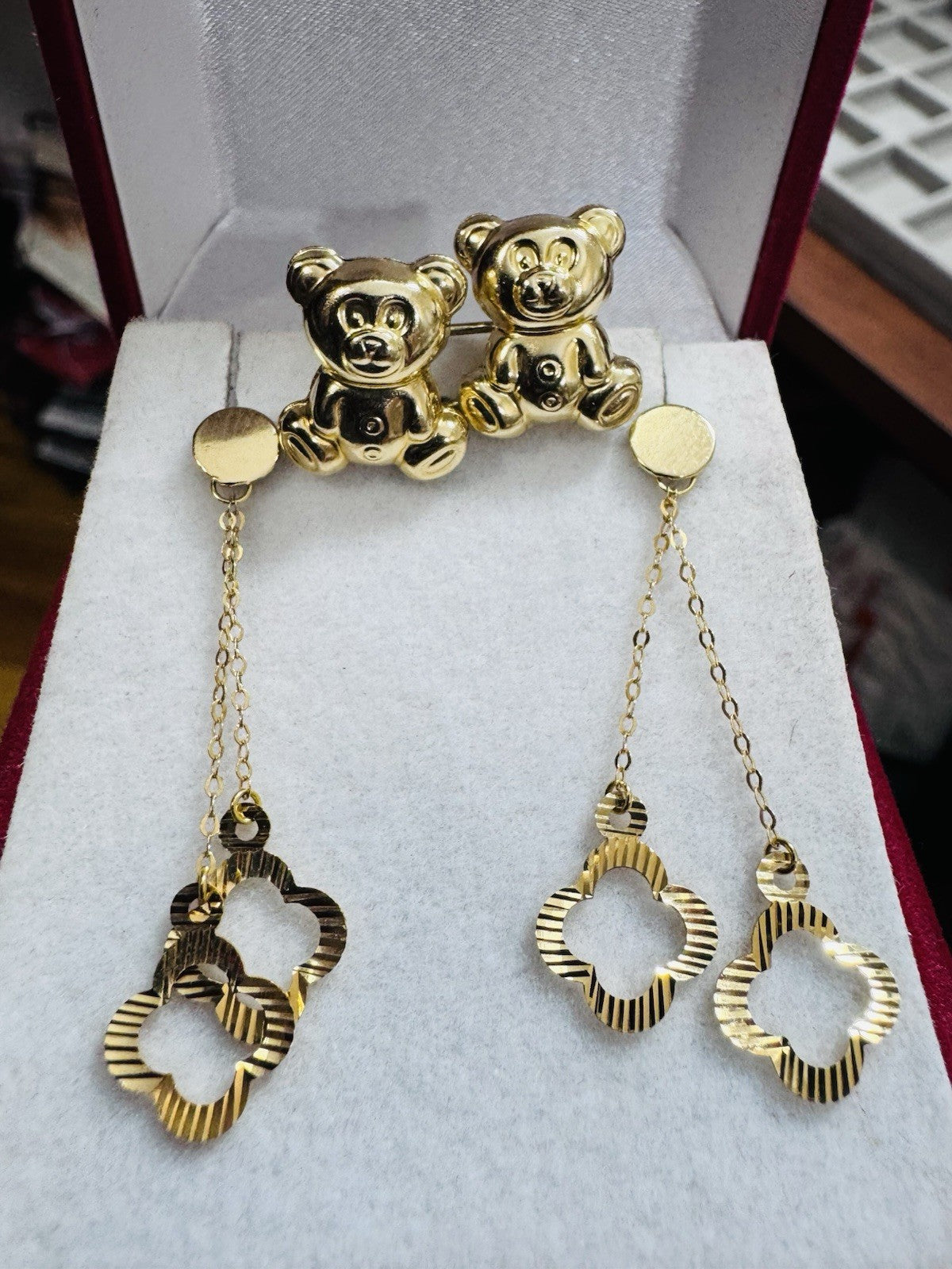 Genuine 18K 750 Fine Real Gold Dangle & Bear ( 2 ) Two Set Earrings 4.8g