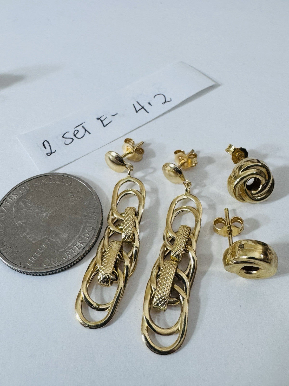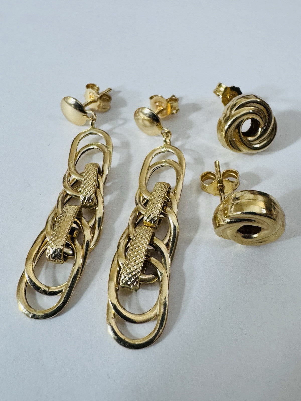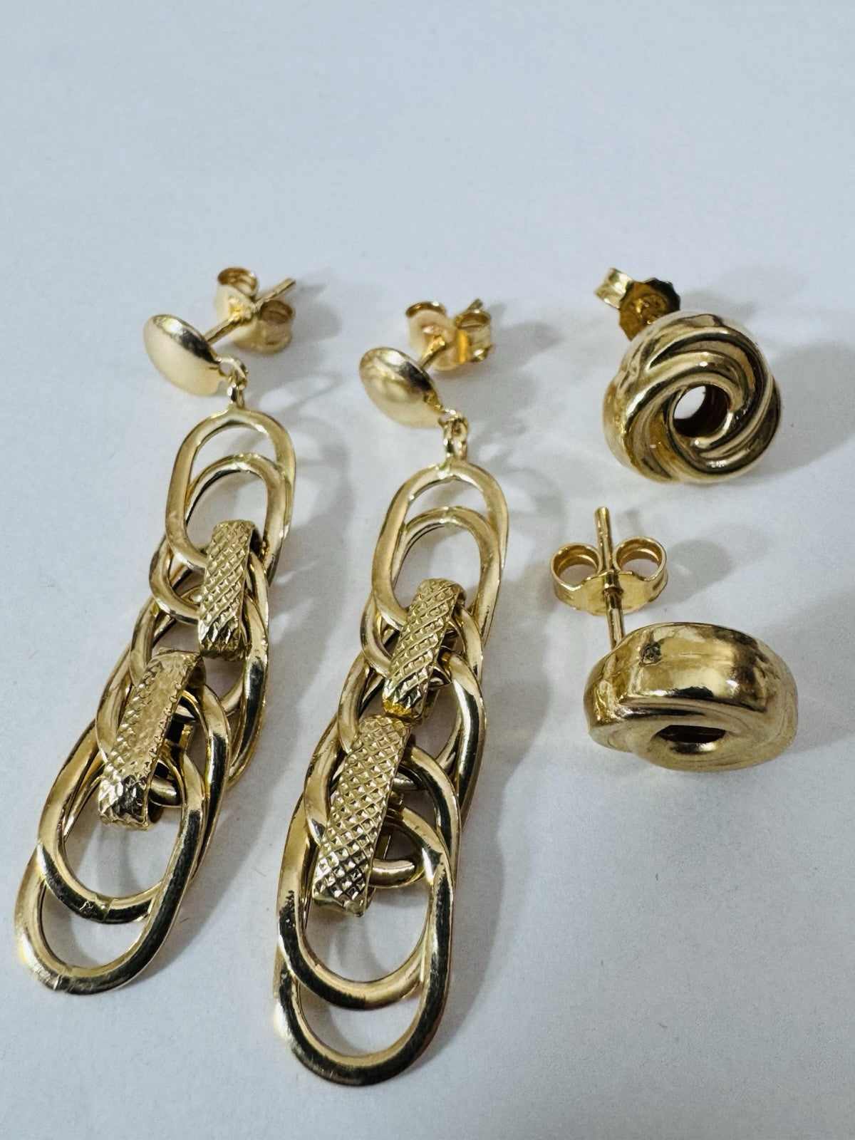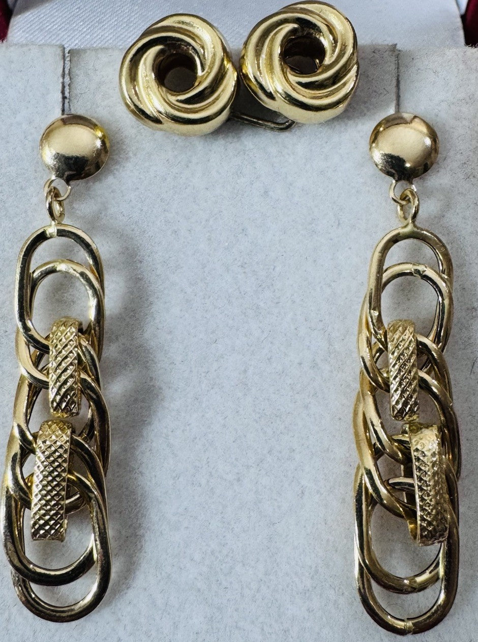 Genuine 18K 750 Fine Real Gold Dangle & Knot Women’s ( 2 ) Two Set Earrings 4.2g