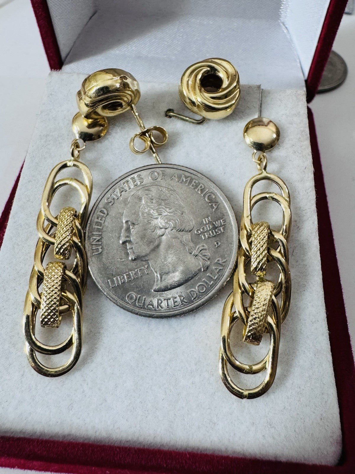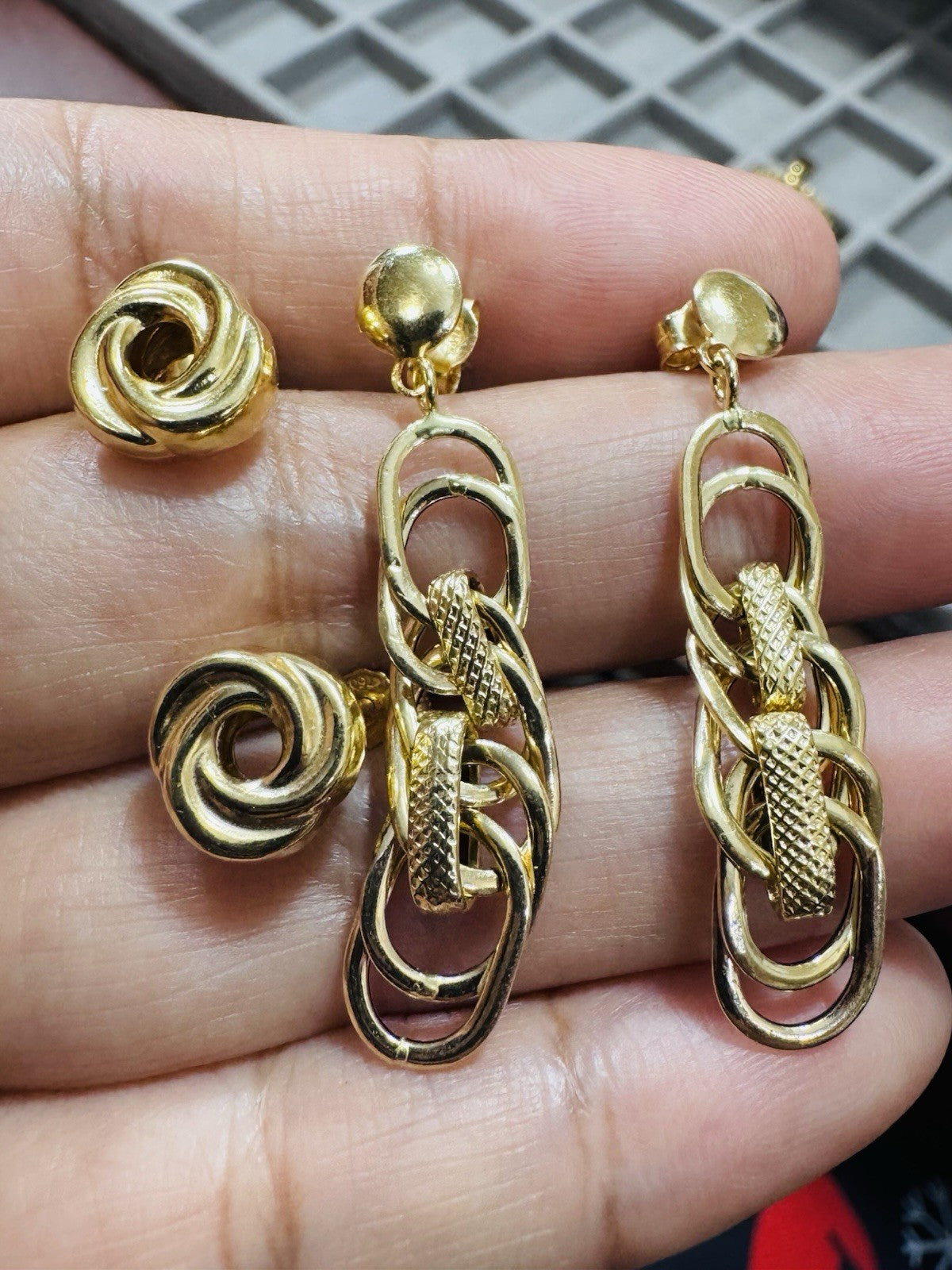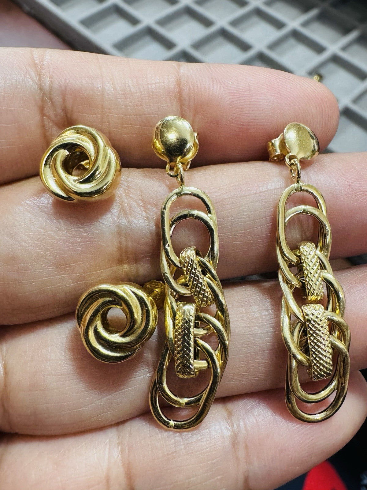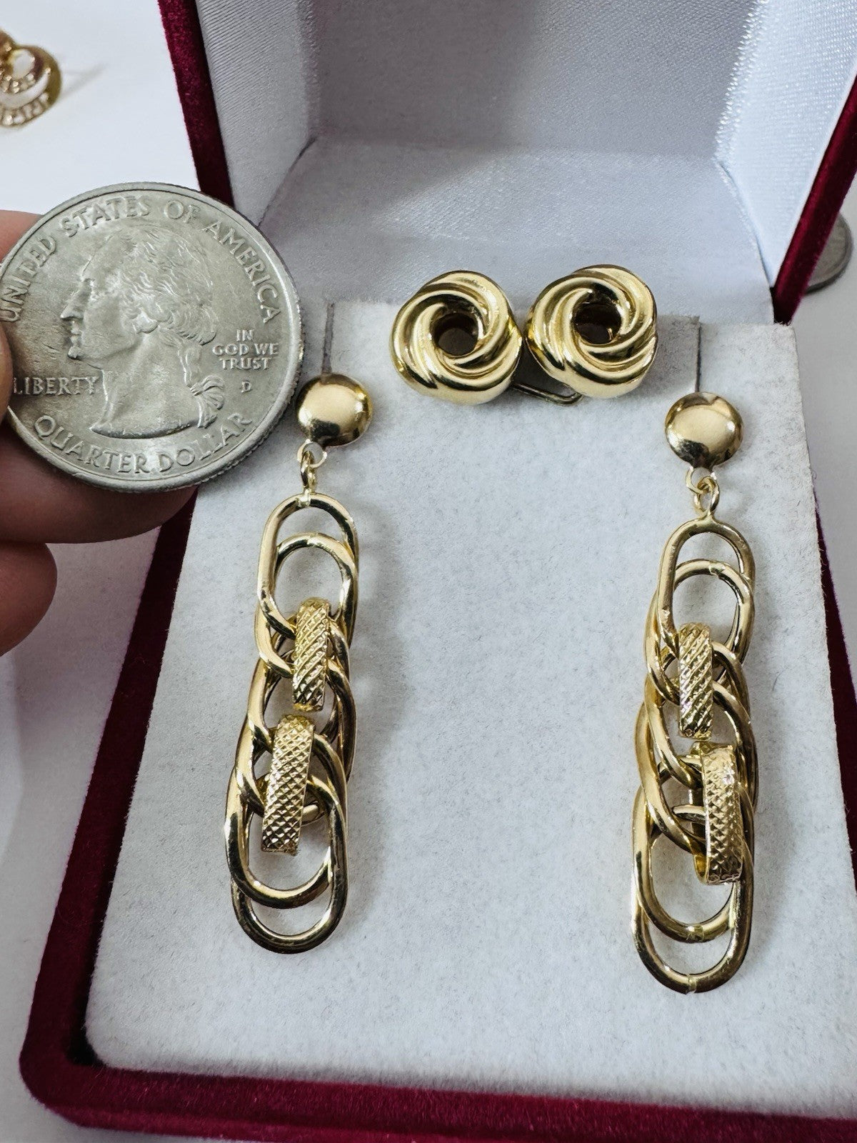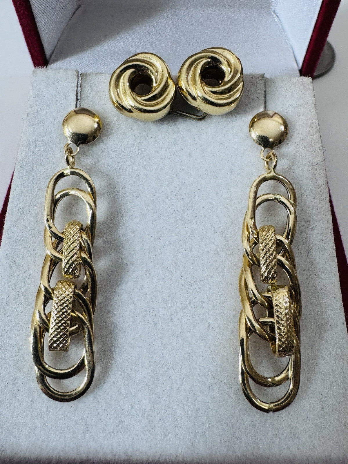 Genuine 18K 750 Fine Real Gold Dangle & Knot Women’s ( 2 ) Two Set Earrings 4.2g