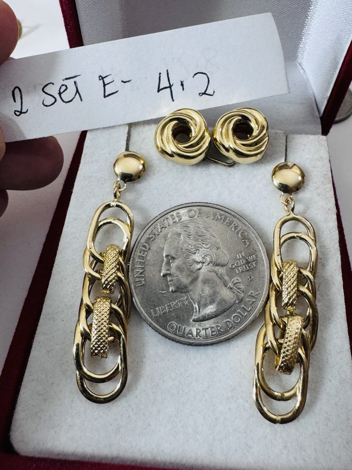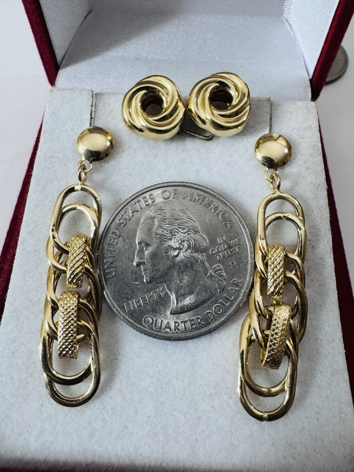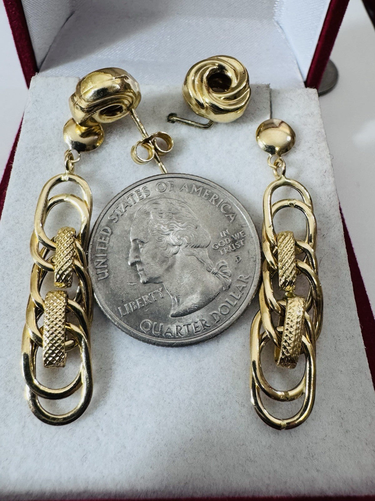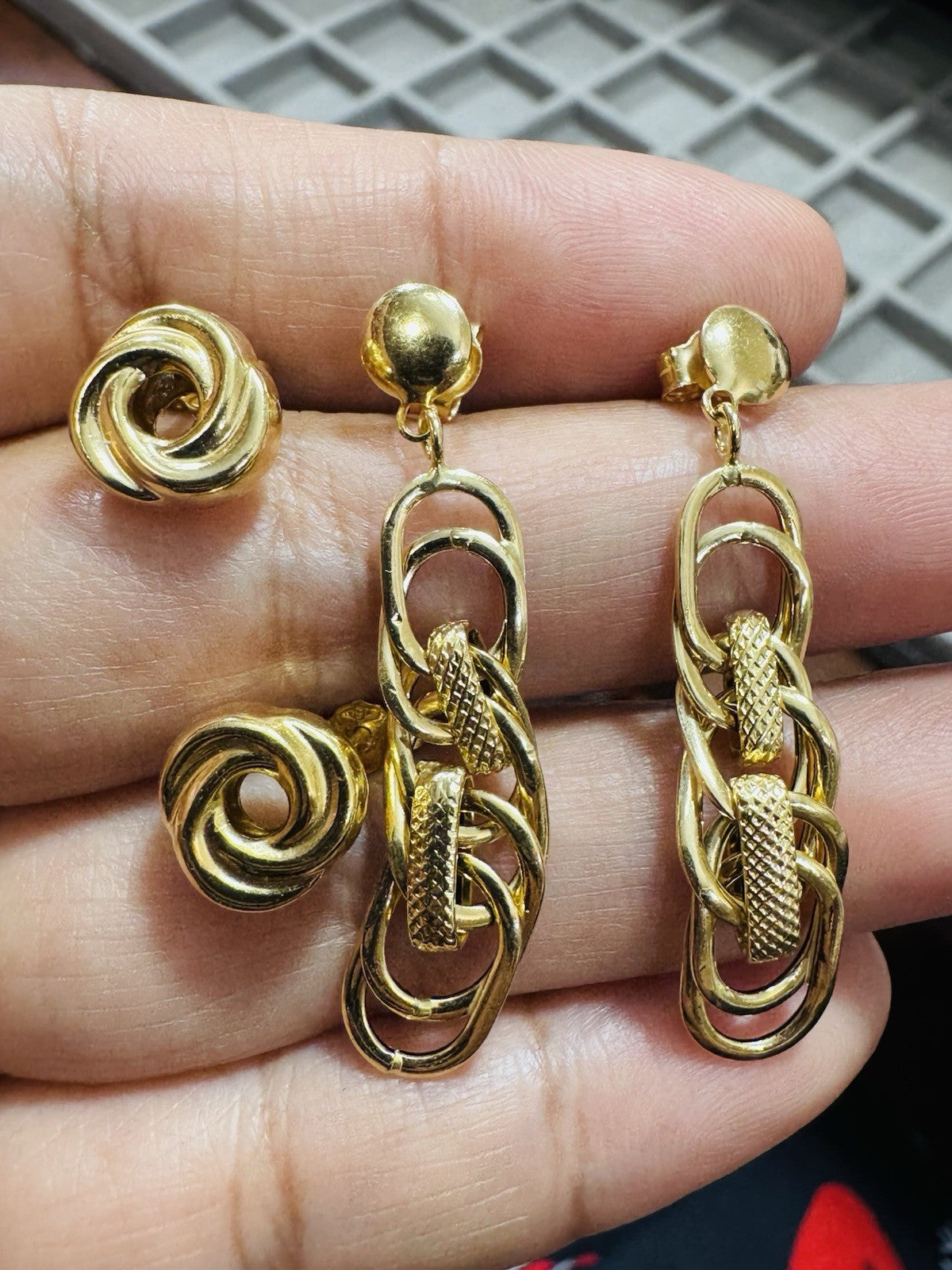 Genuine 18K 750 Fine Real Gold Dangle & Knot Women’s ( 2 ) Two Set Earrings 4.2g