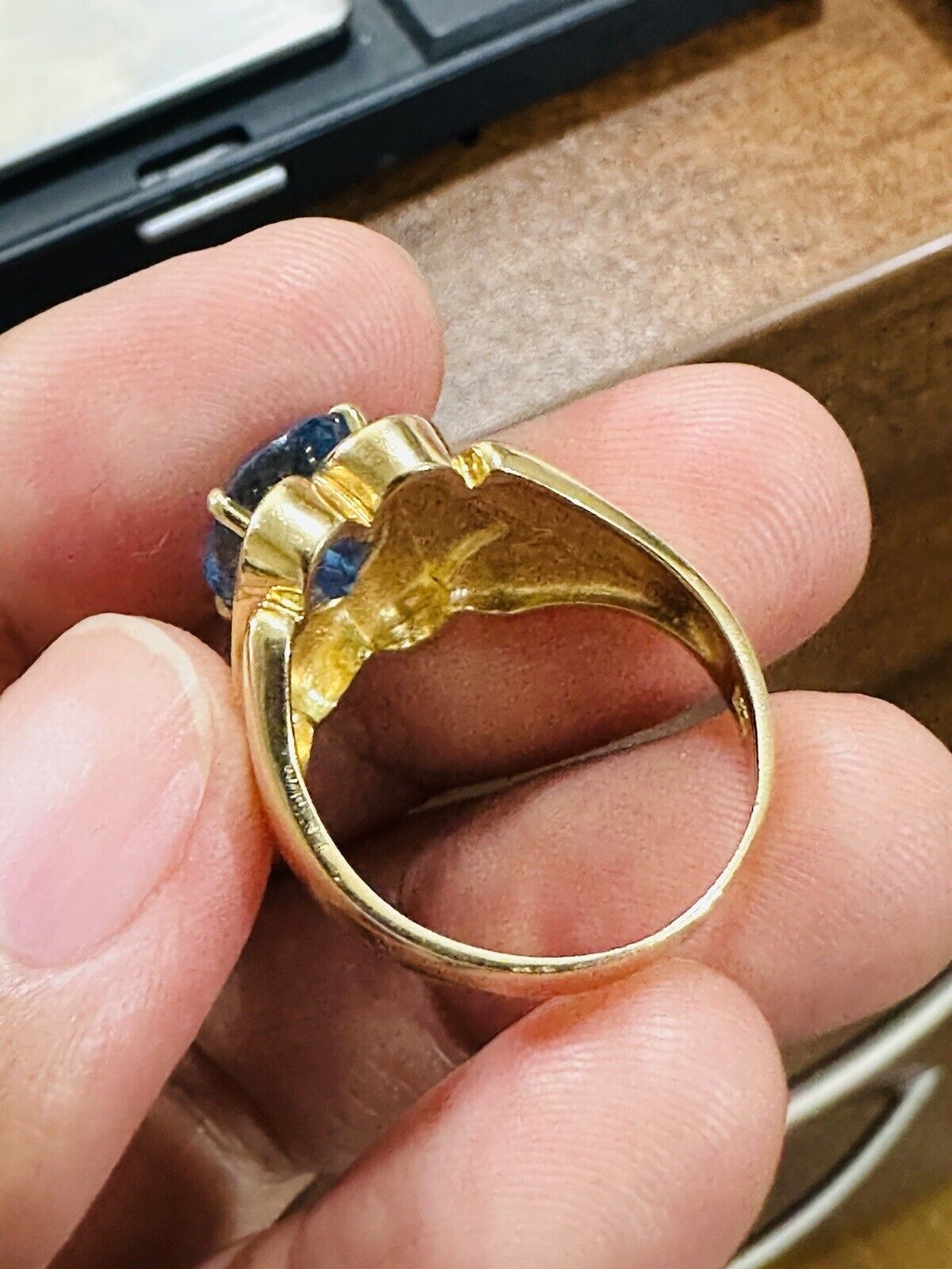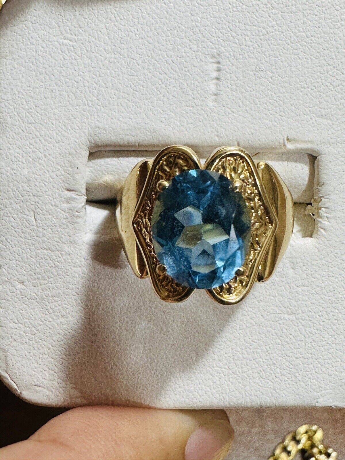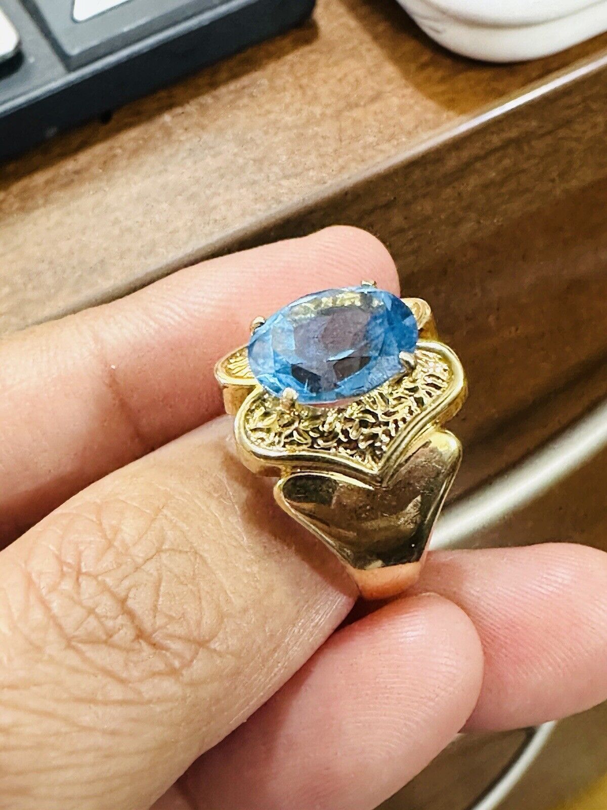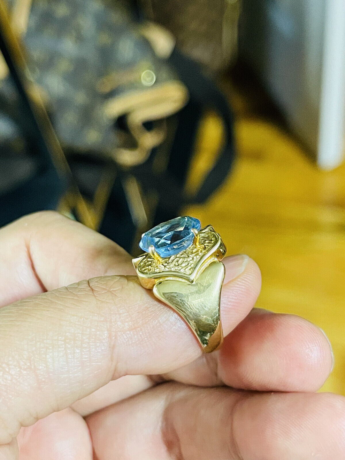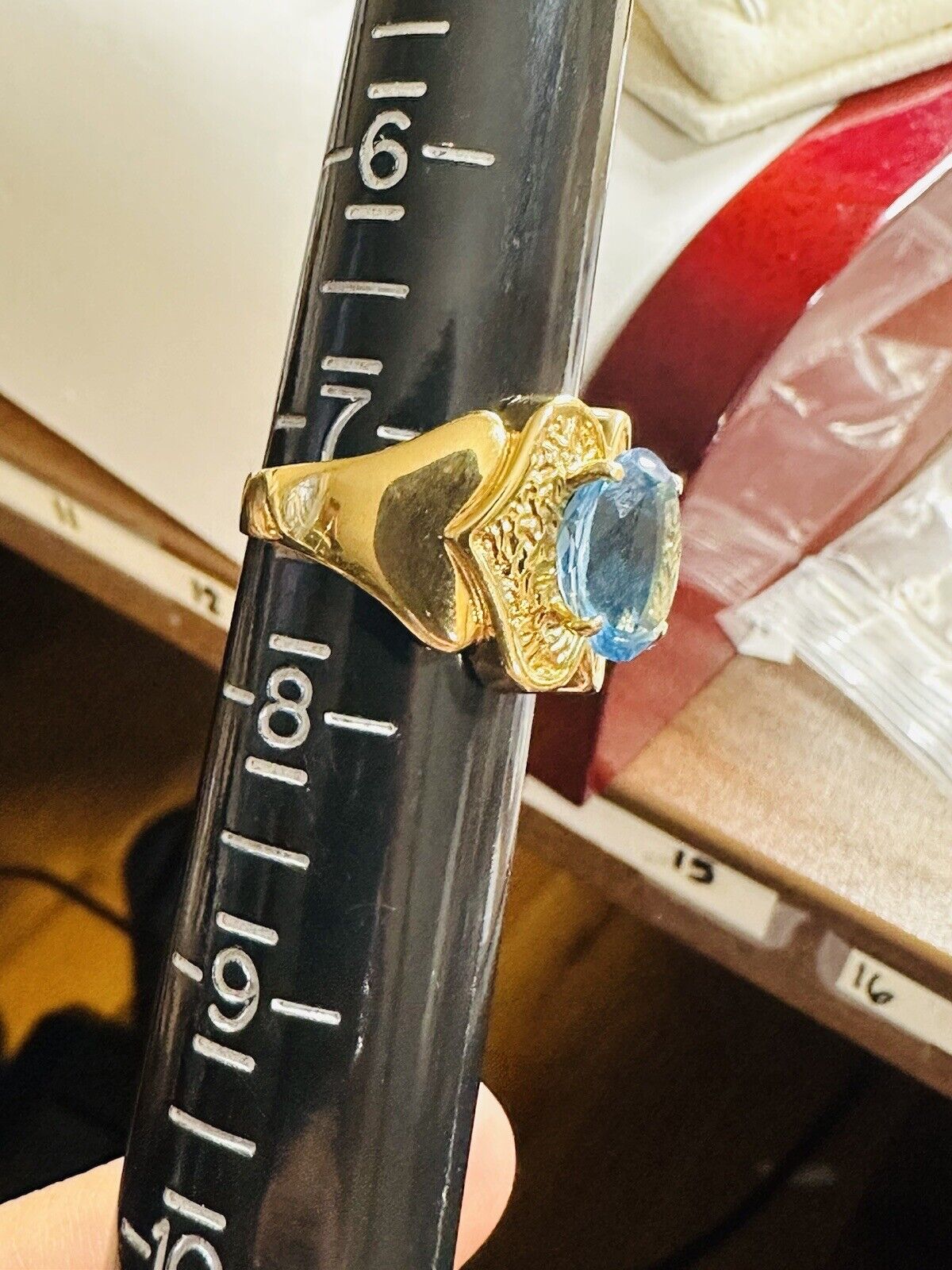 K18 Japan Fine Real Gold Blue Topaz Gold Ring Fits 7/7.5” 6.9g Beautiful