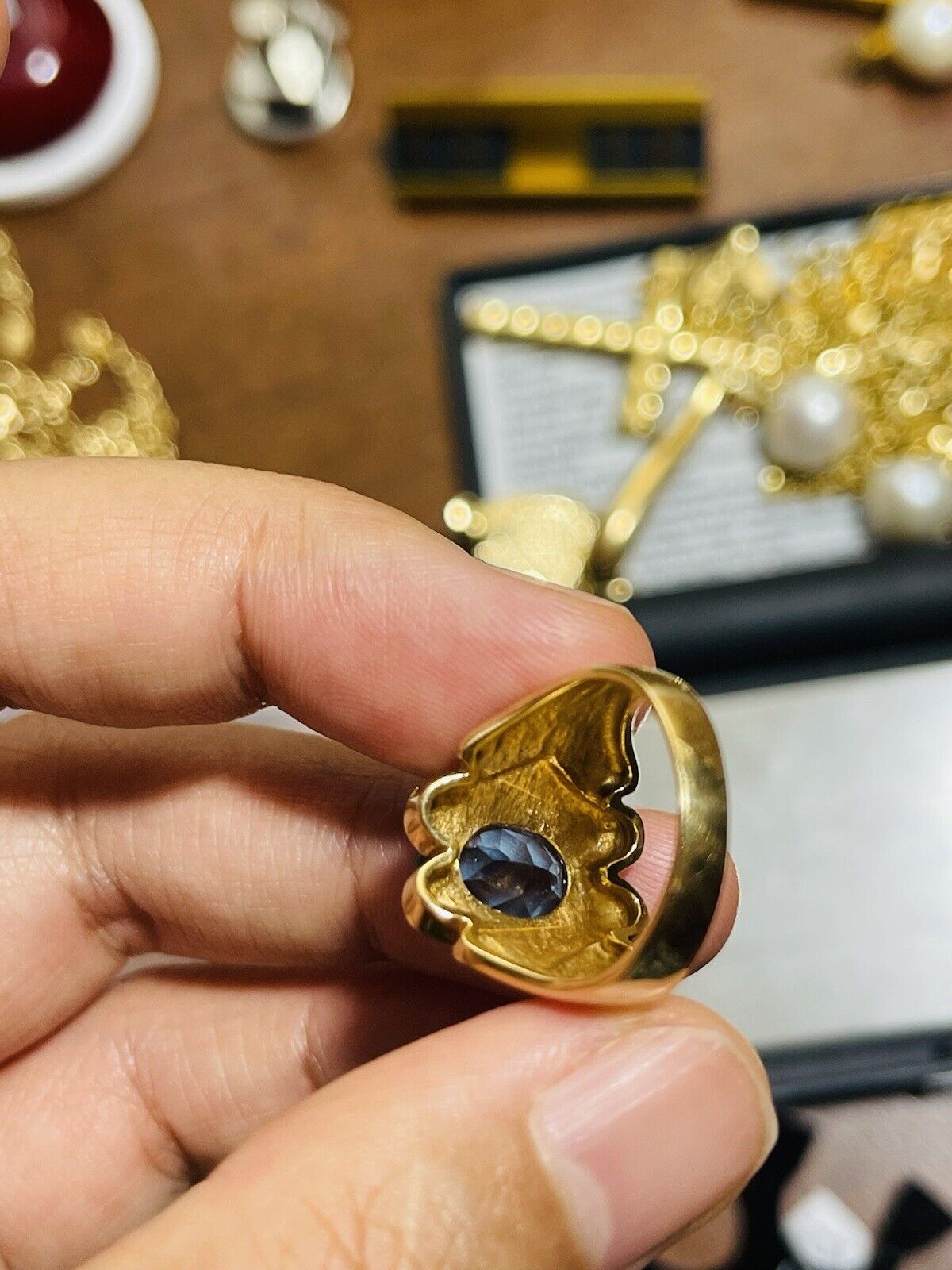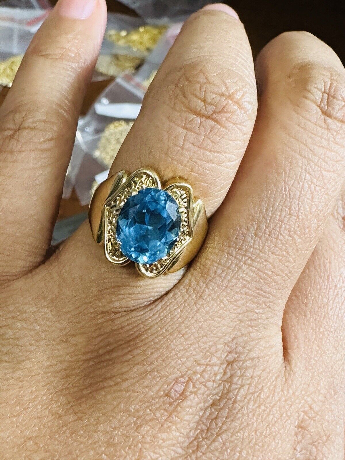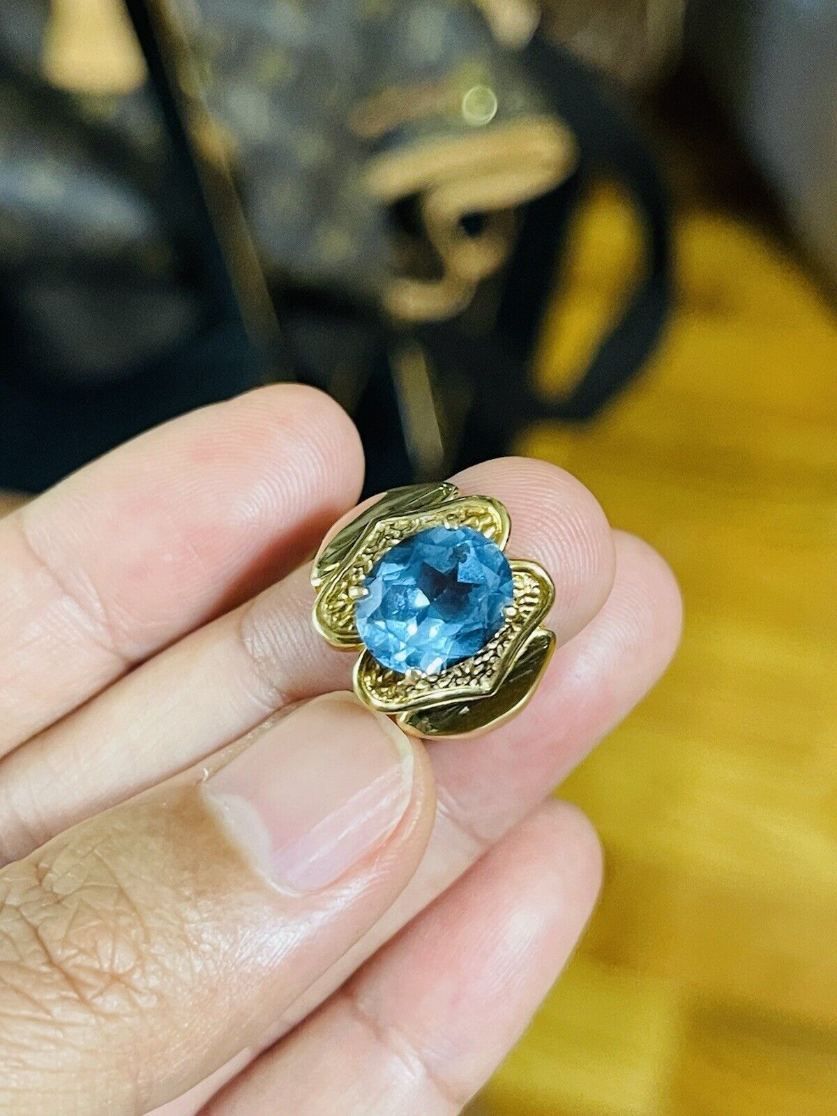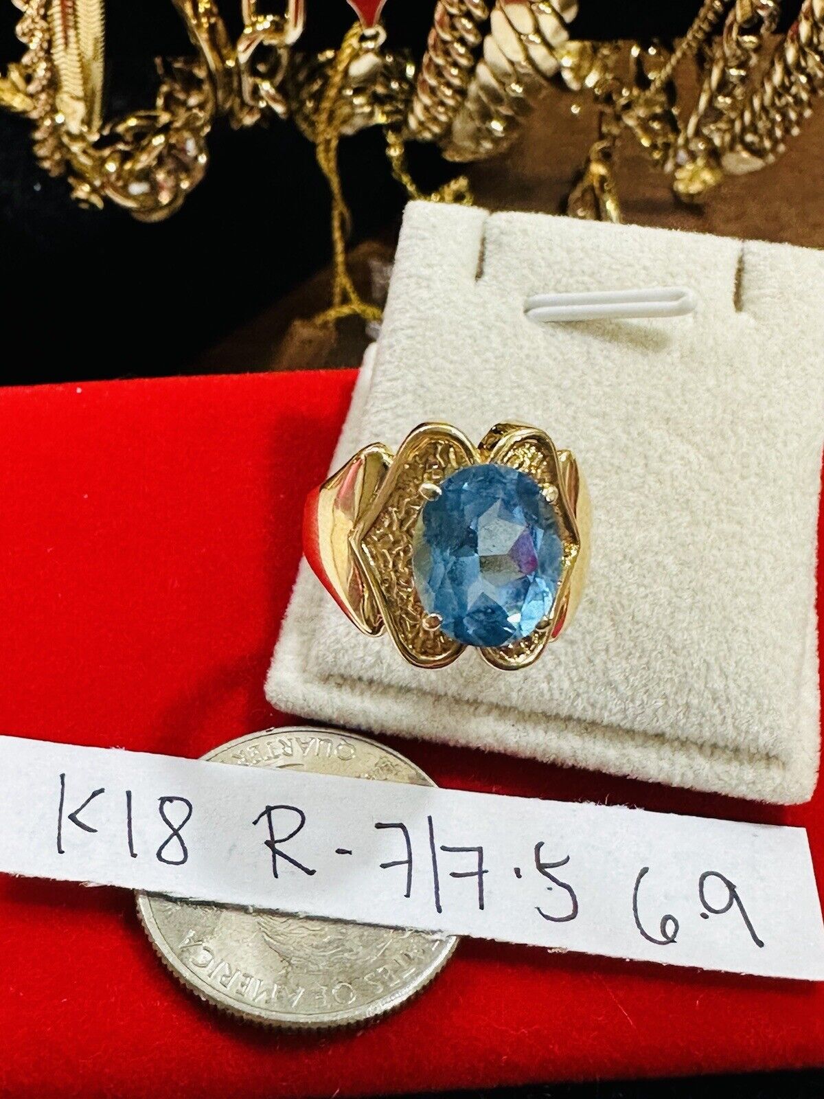 • You are buying Real Fine Beautiful K18 Japan Yellow Real Fine Gold Blue Topaz Women’s Ring Fits 7/7.5” Long 6.9g fast shipping!