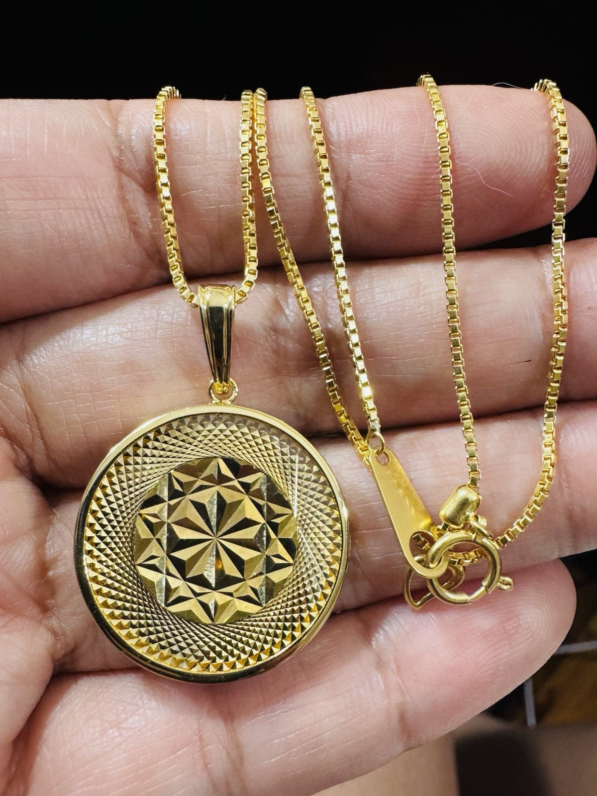 This beautiful Light weight Womens Box Chain Set Pendant and necklace is expertly crafted in K18 Japan real yellow gold and features a stunning 18 inch chain with 10 grams