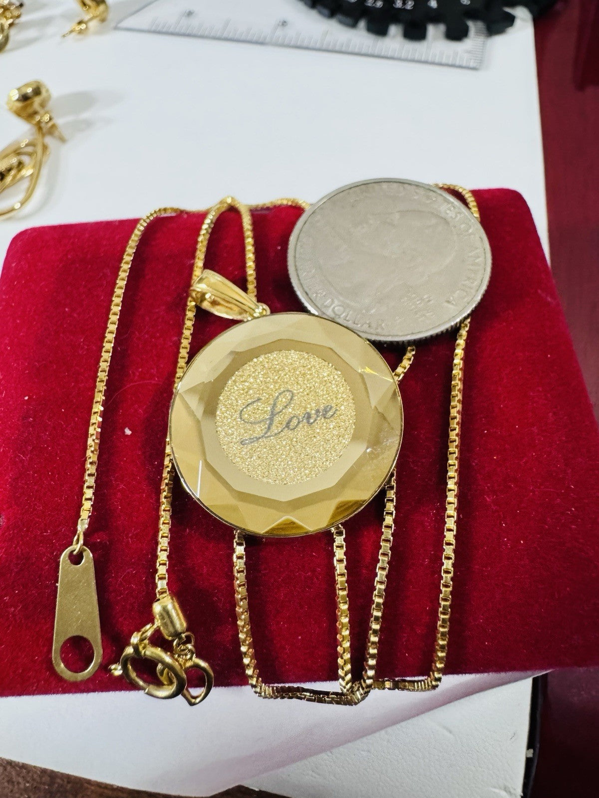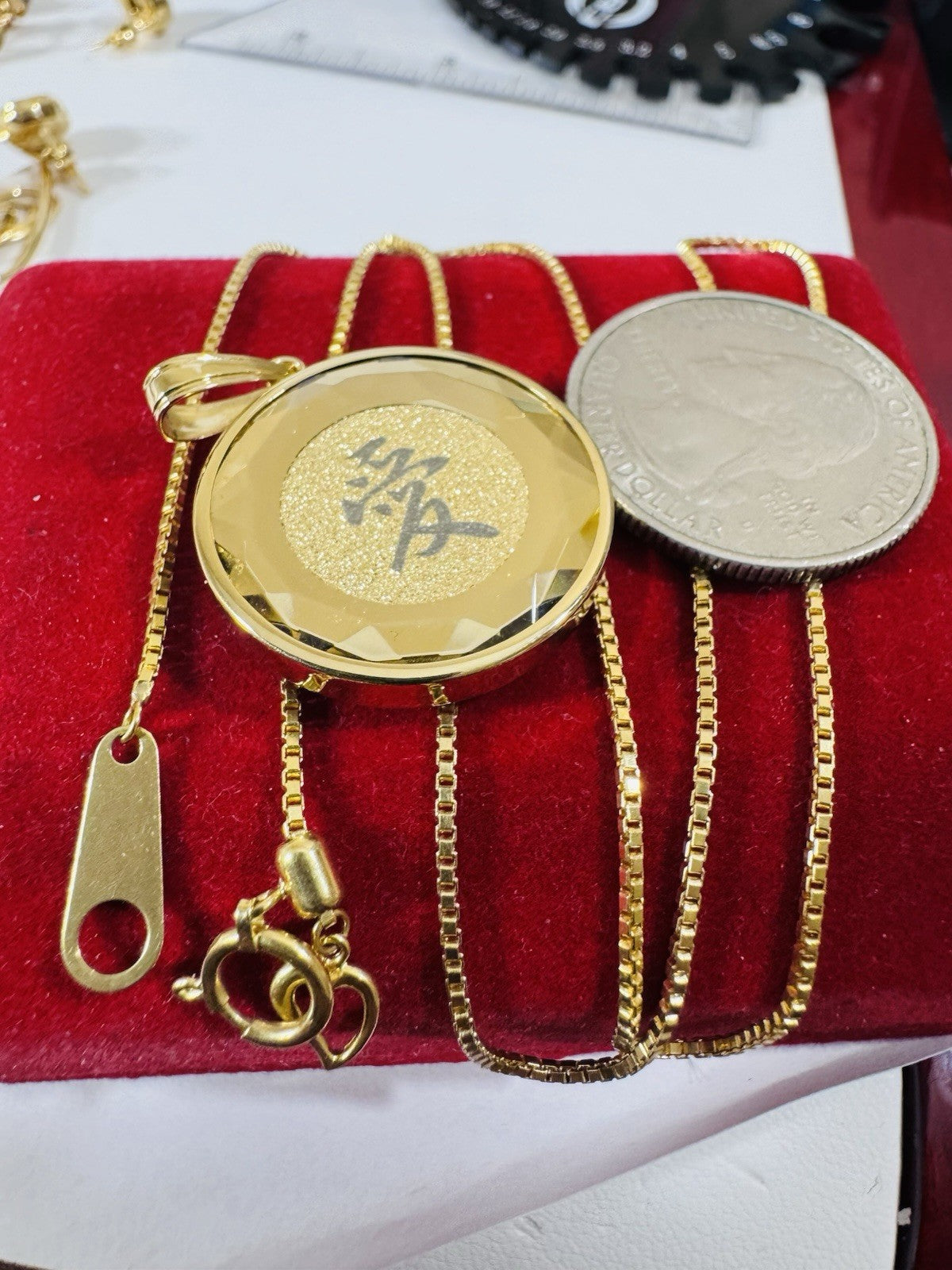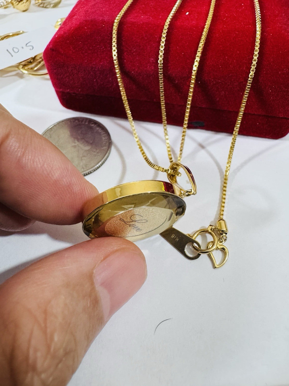 • Its reversible Pendant its Japan gold Pendant has glass on top. Avoid water for moist!