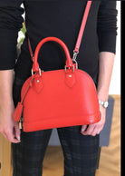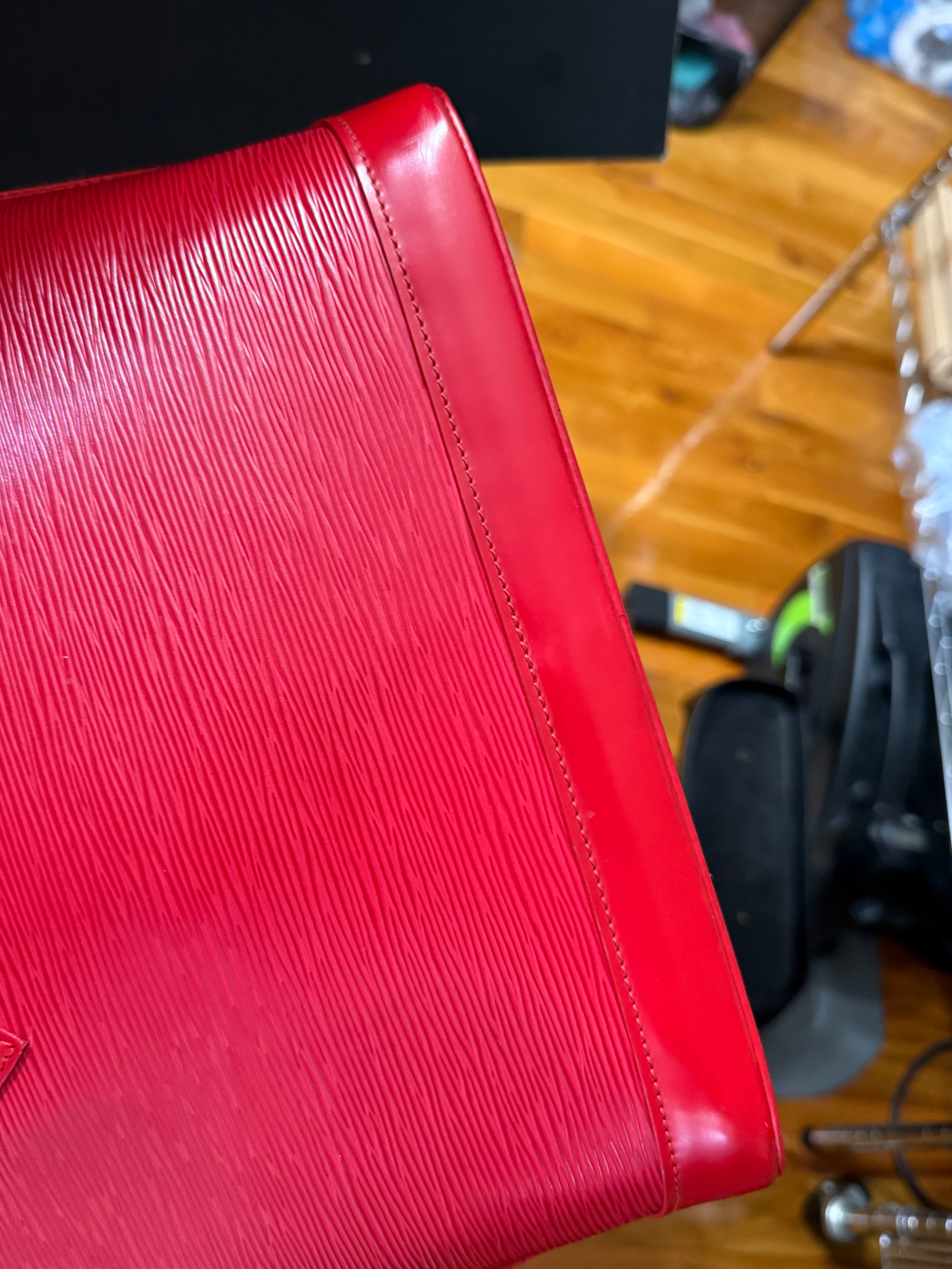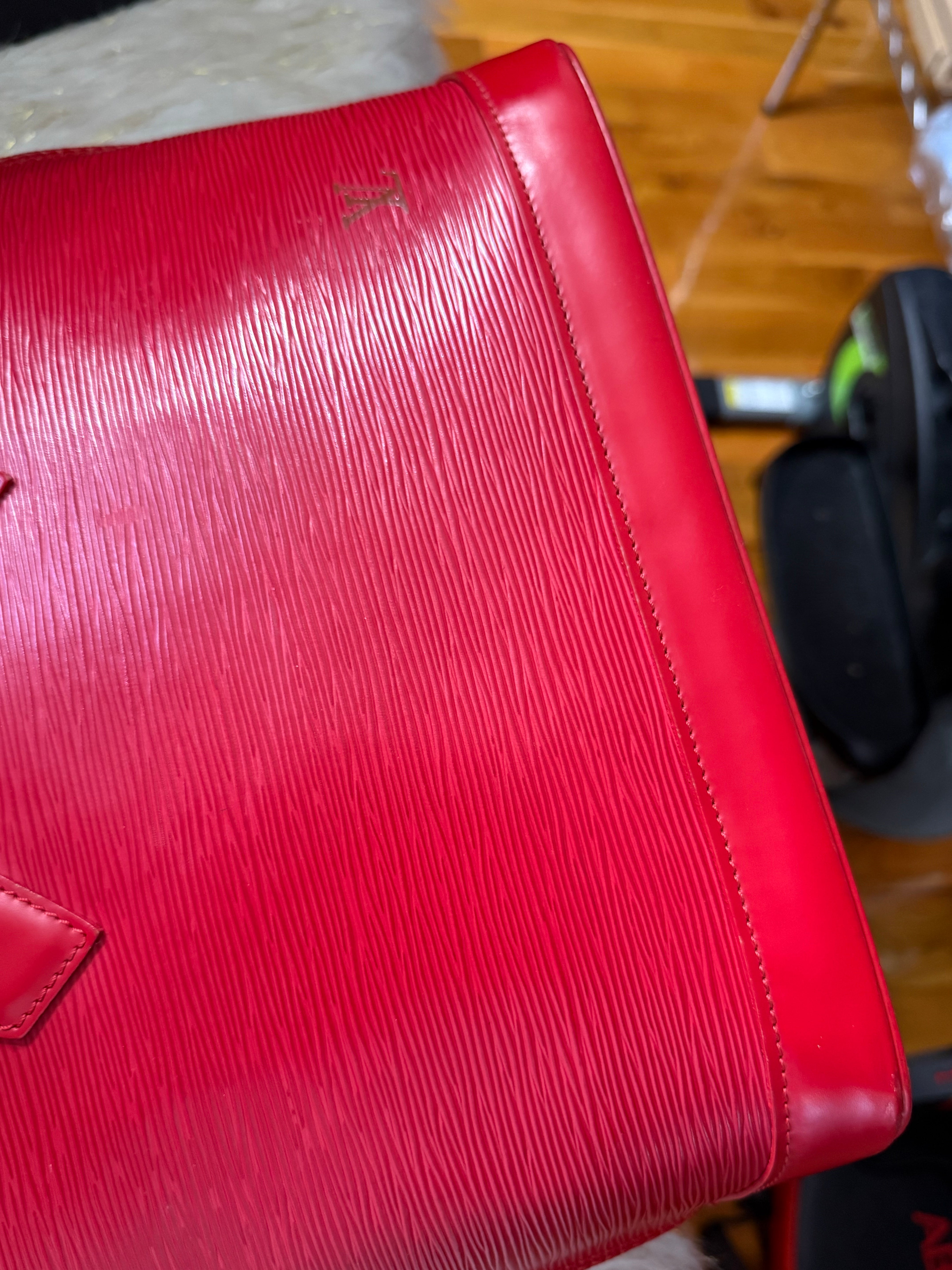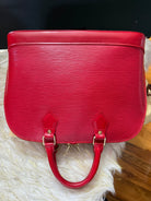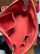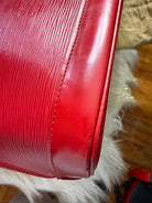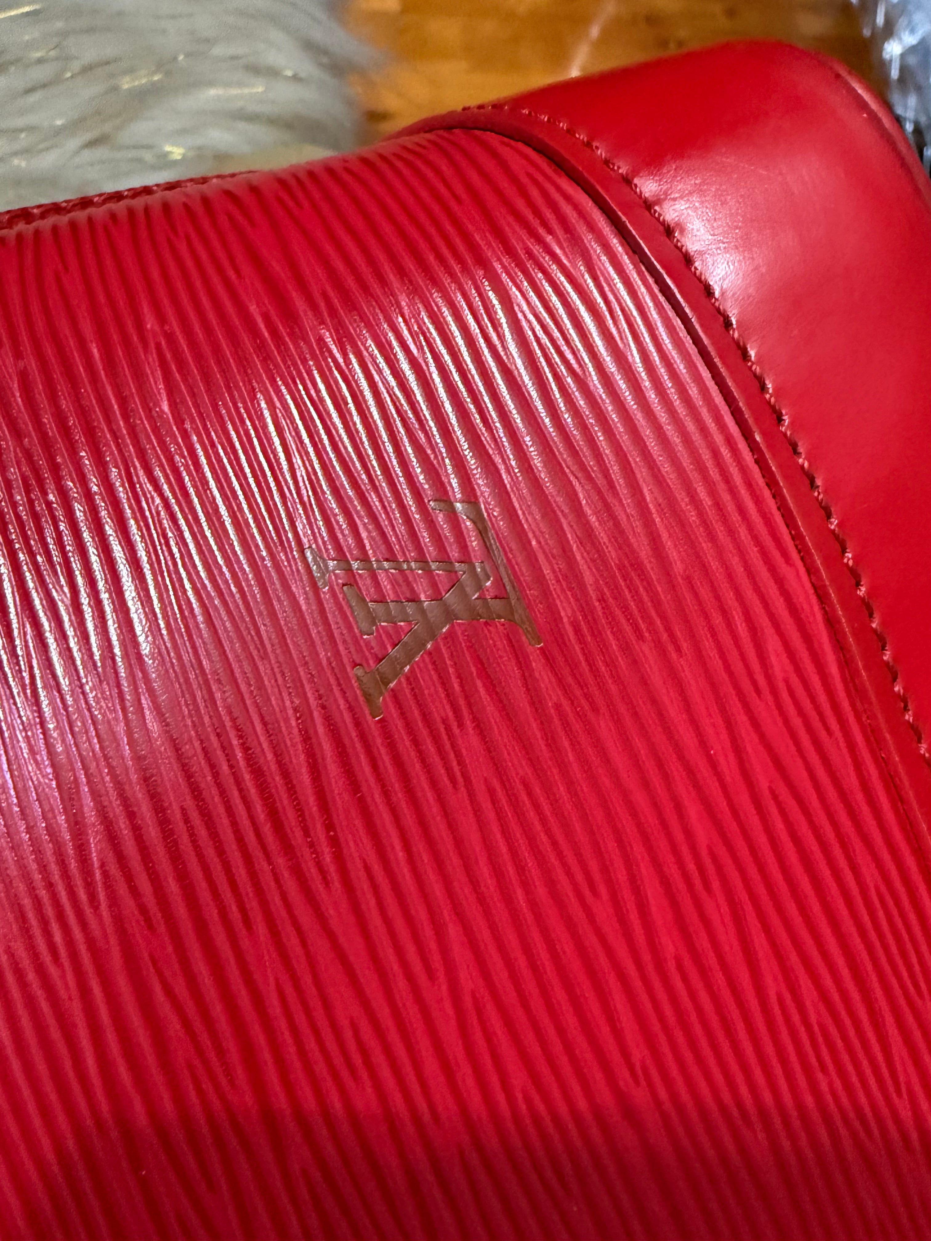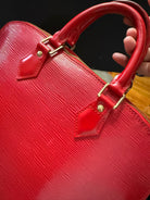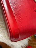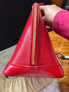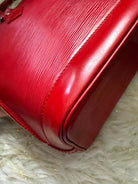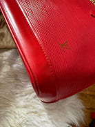 Stylish Handbag with iconic red epi pattern. Features red tones. Perfect for everyday use.