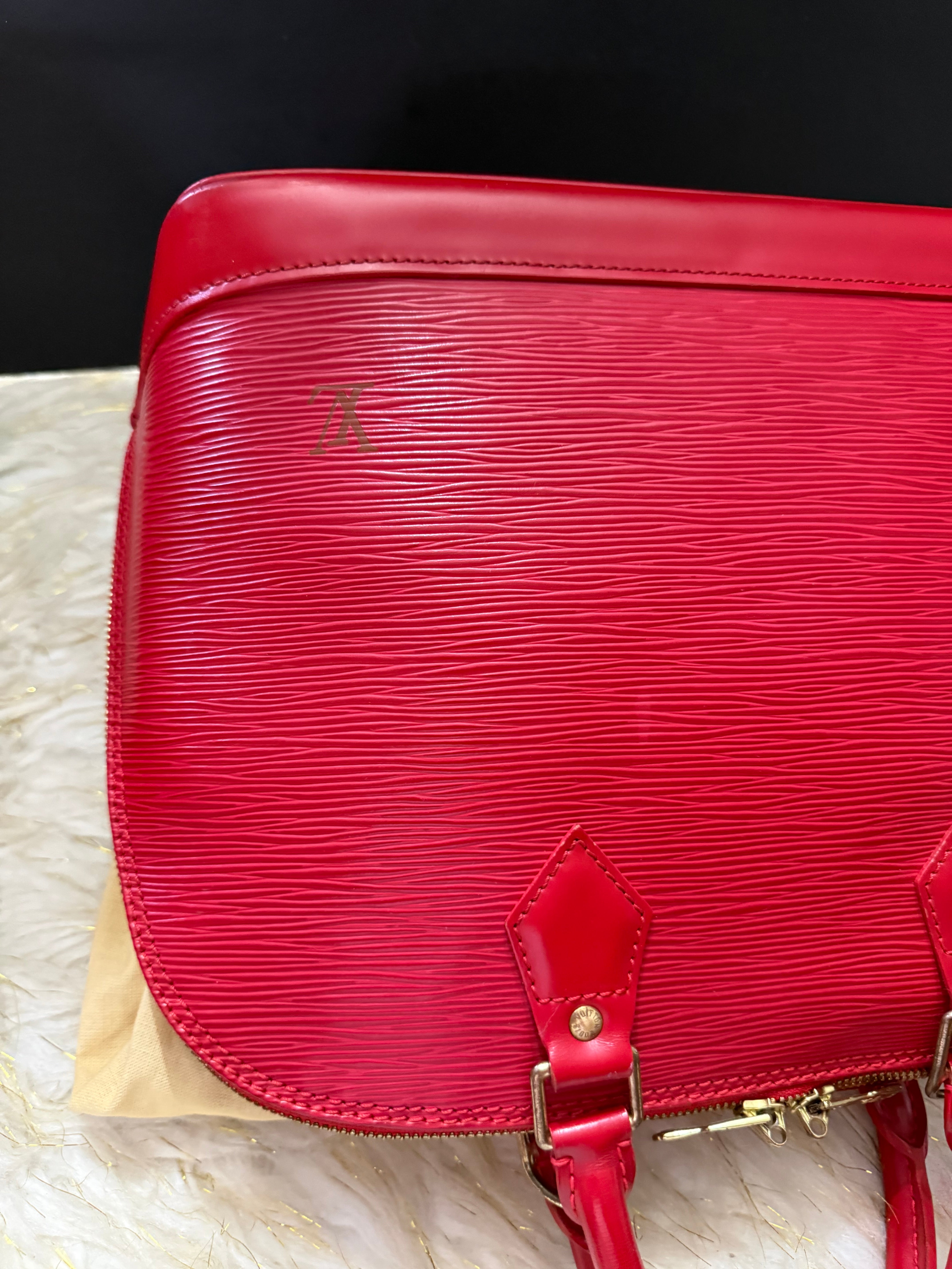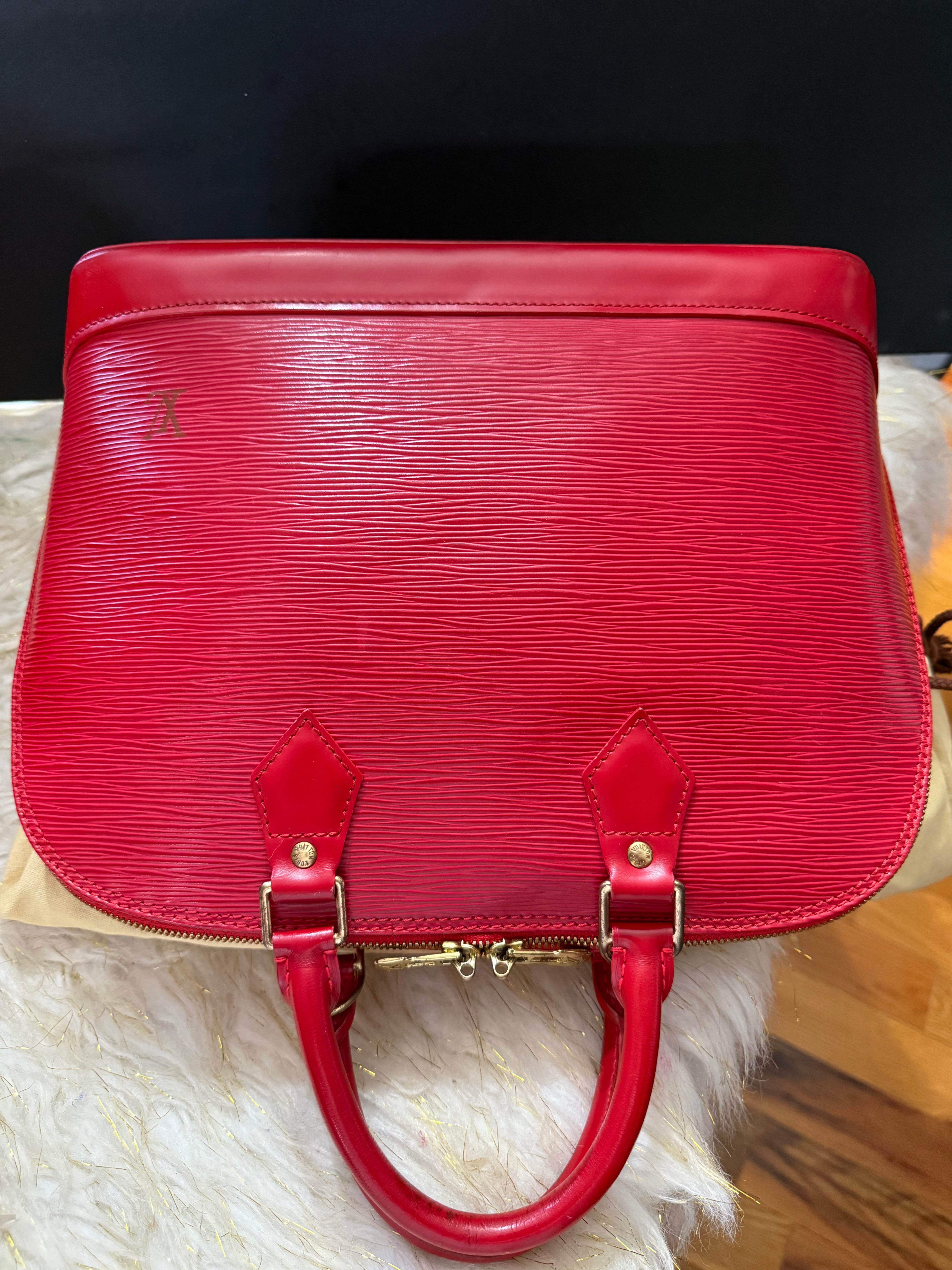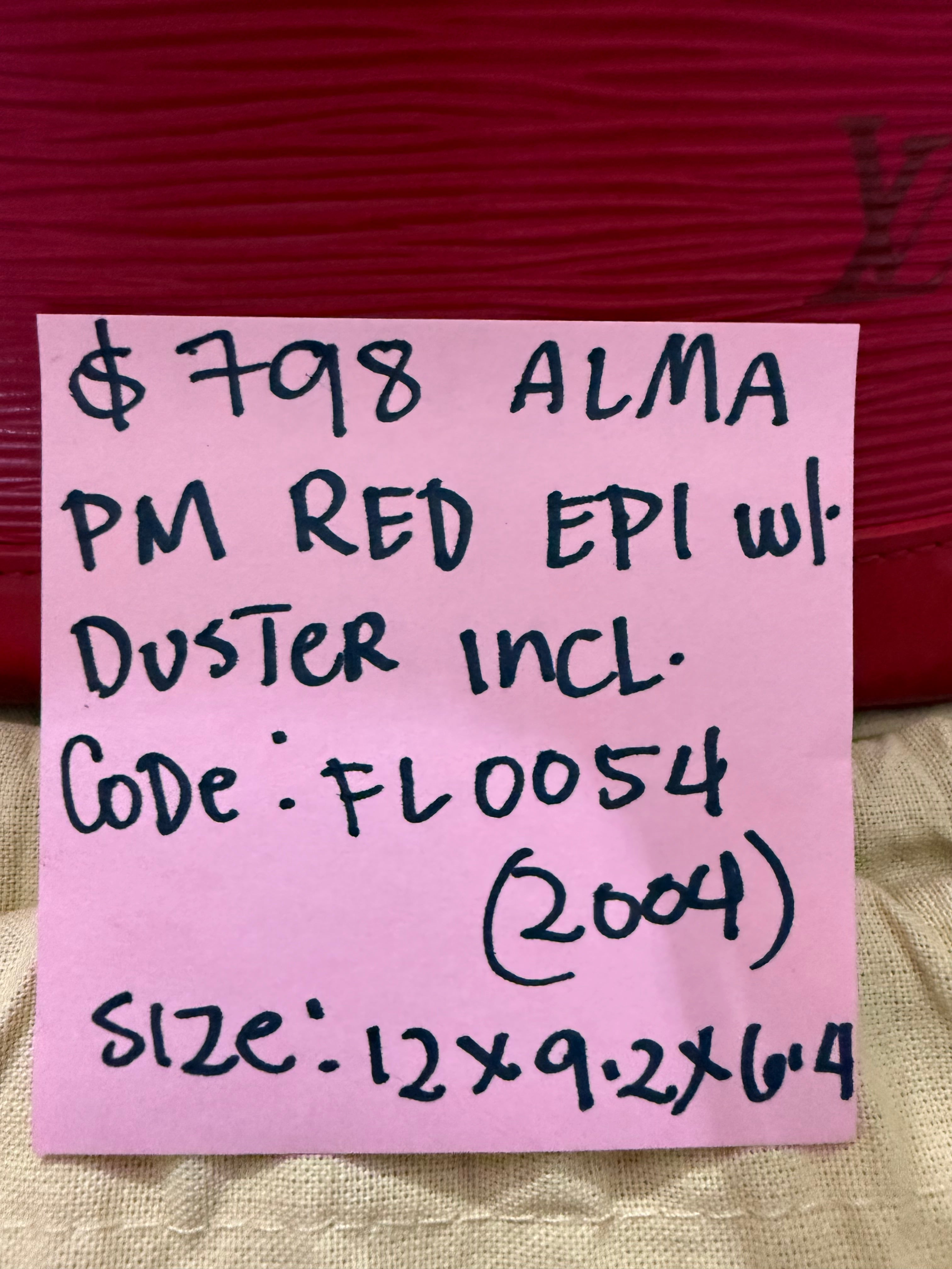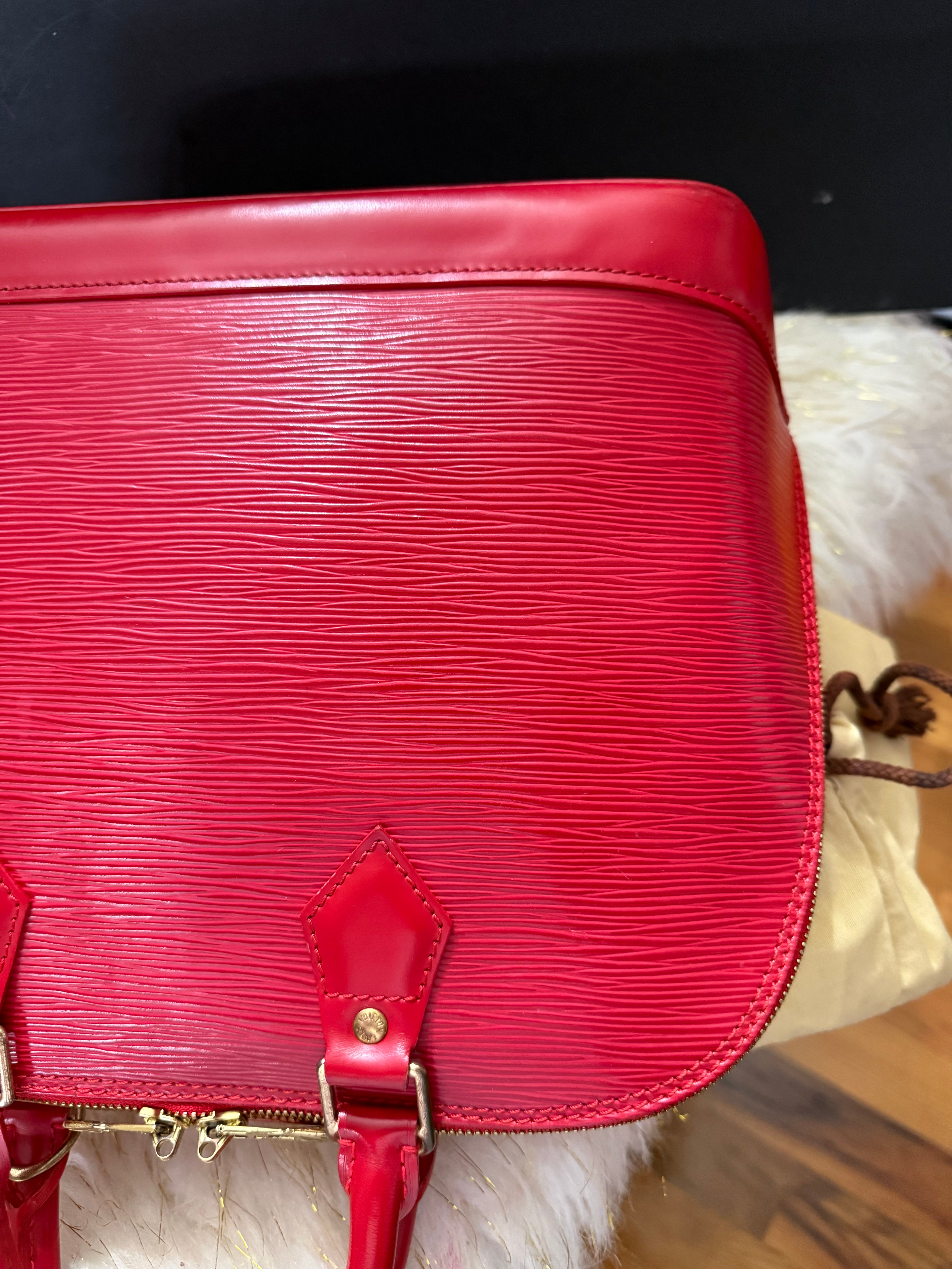 Louis Vuitton Alma Pm Red epi handbag with duster