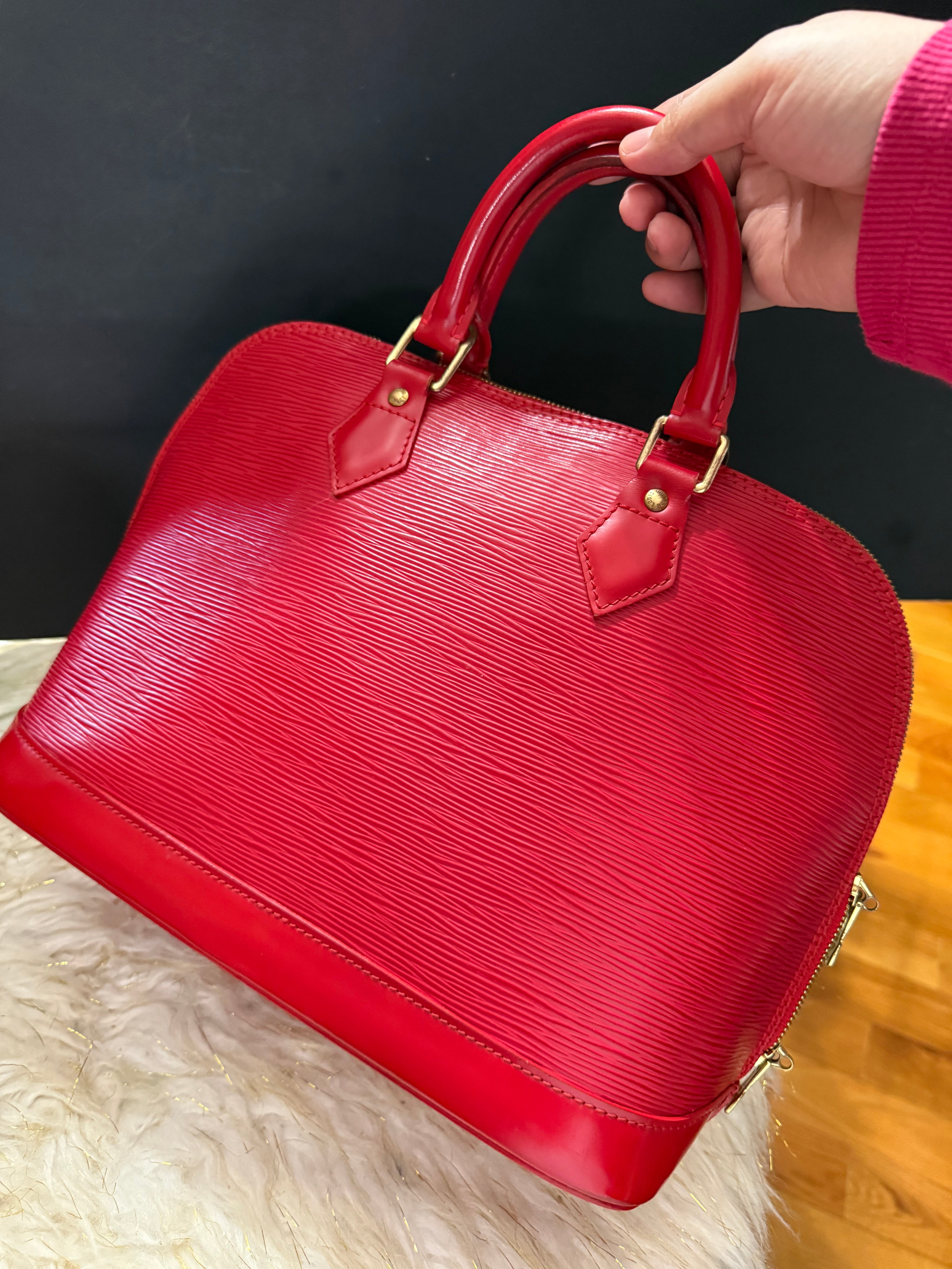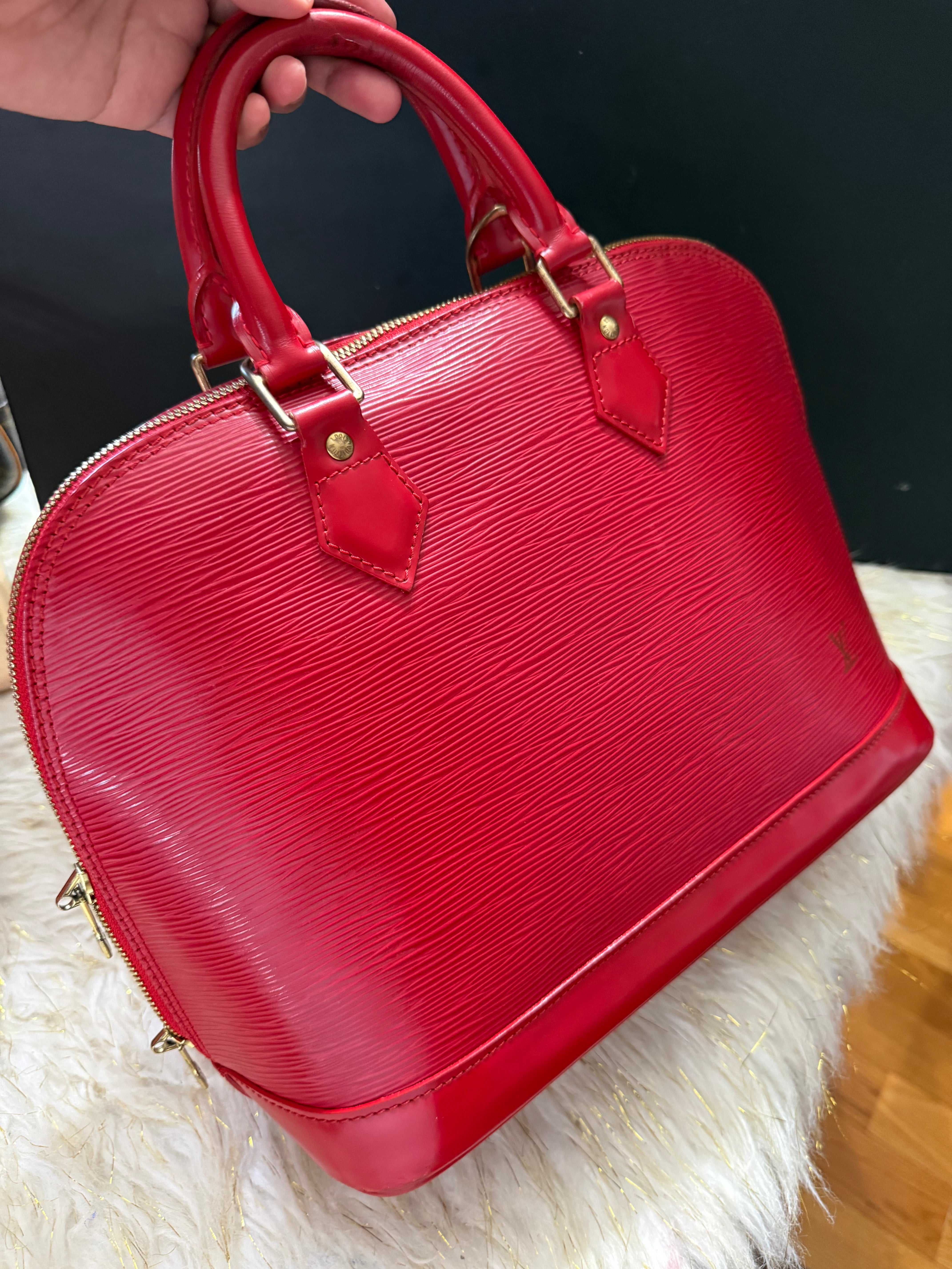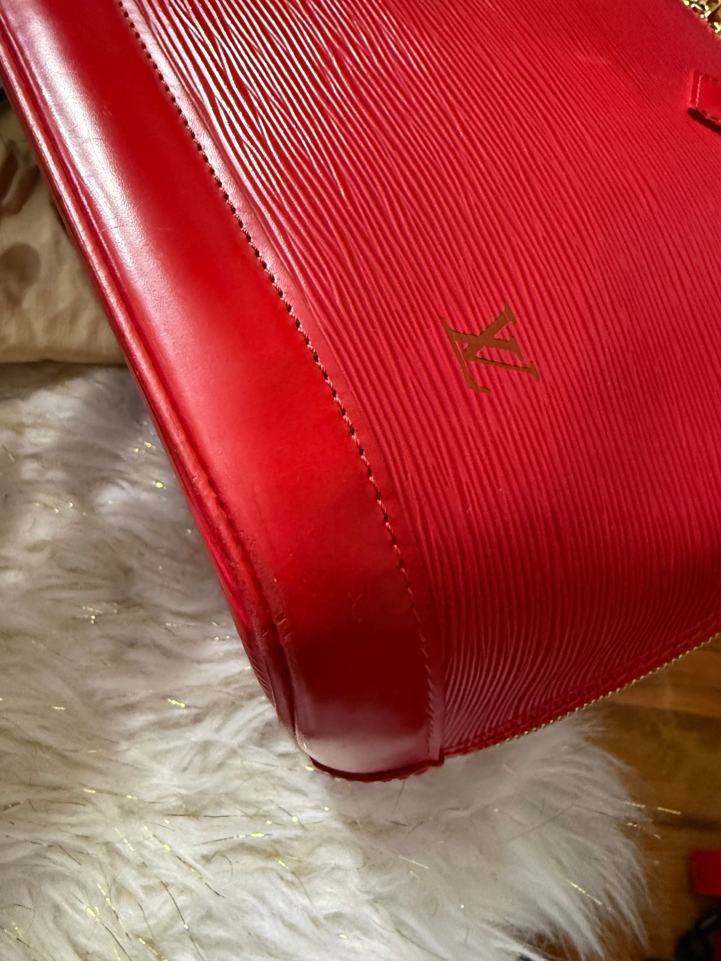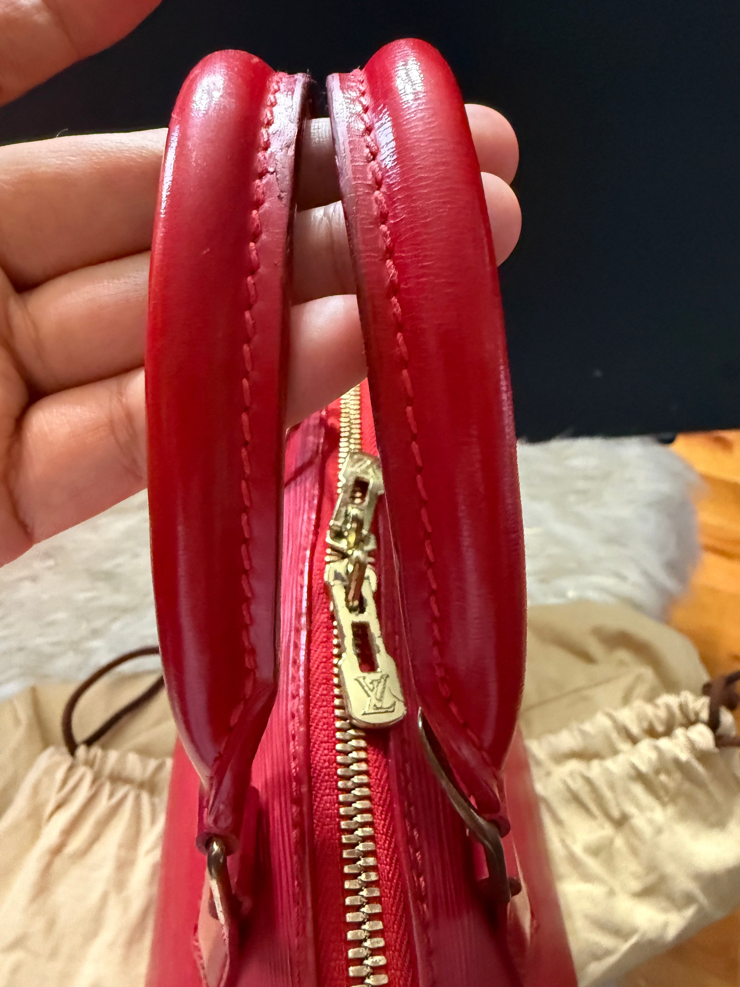 Louis Vuitton Alma Pm Red epi handbag with duster