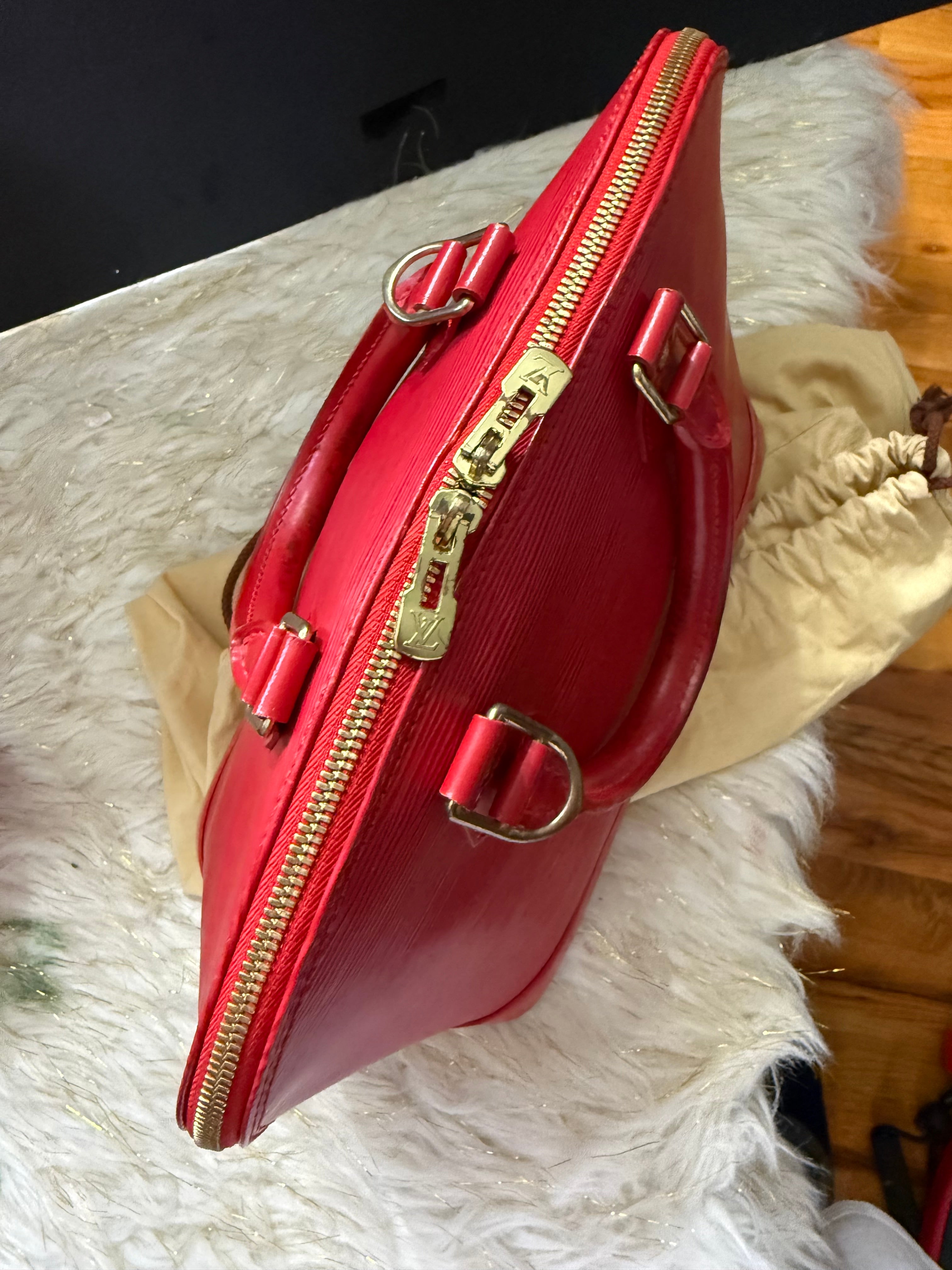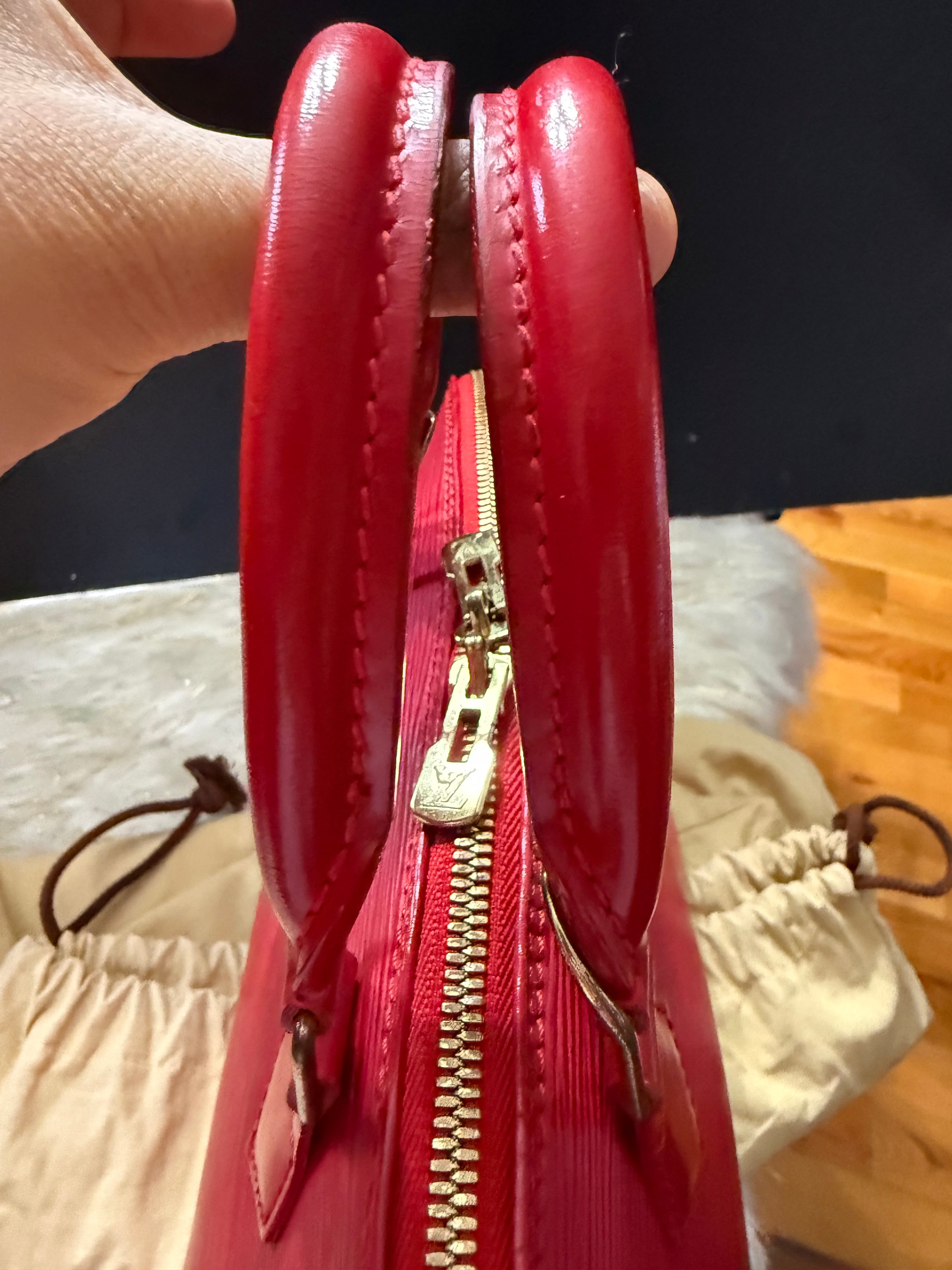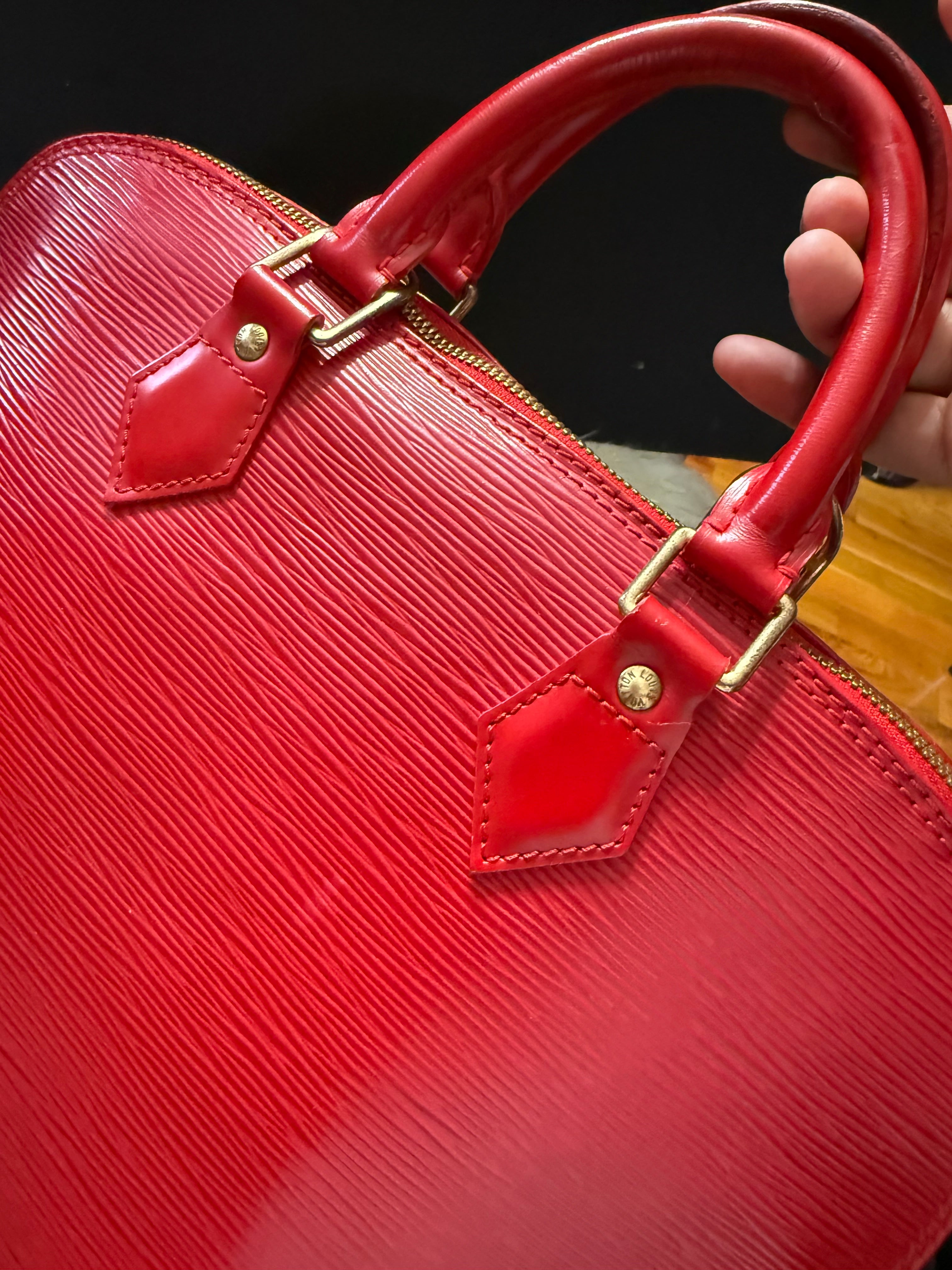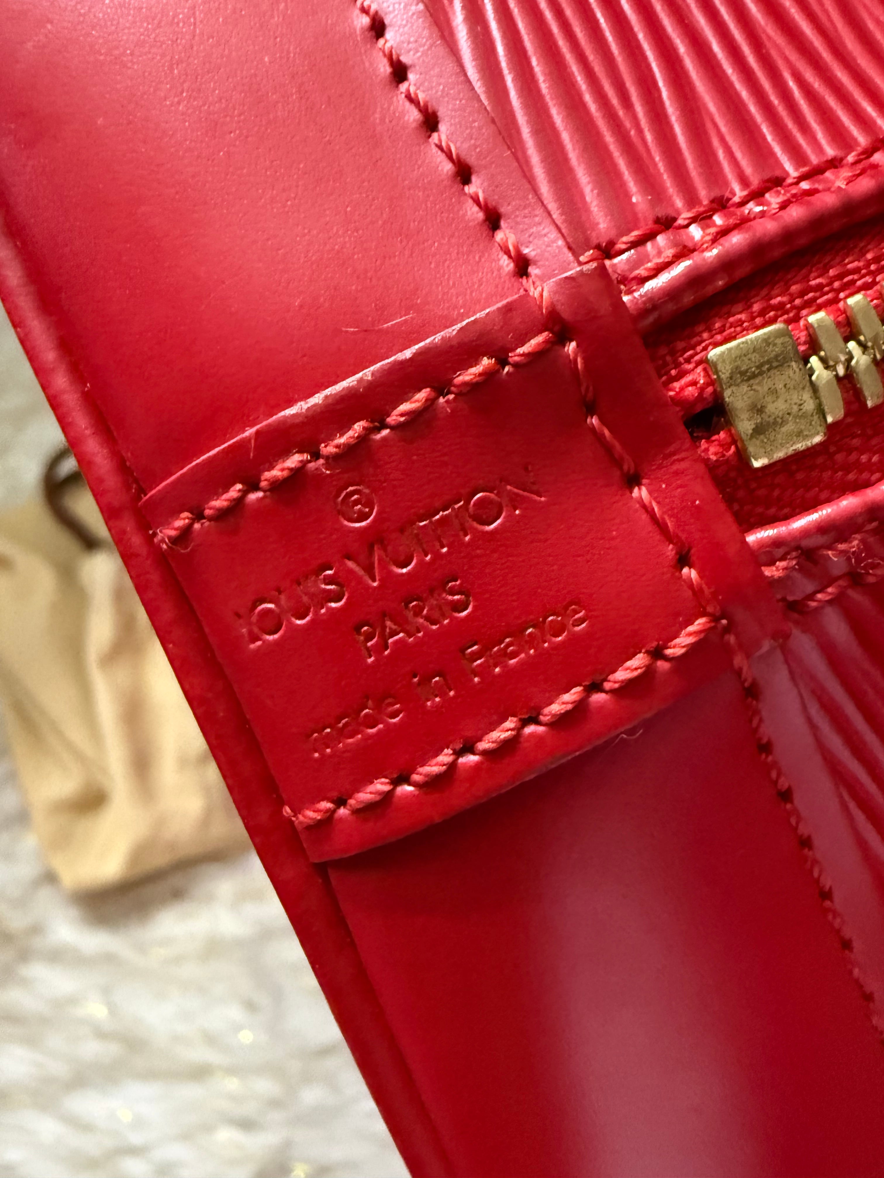 Louis Vuitton Alma Pm Red epi handbag with duster