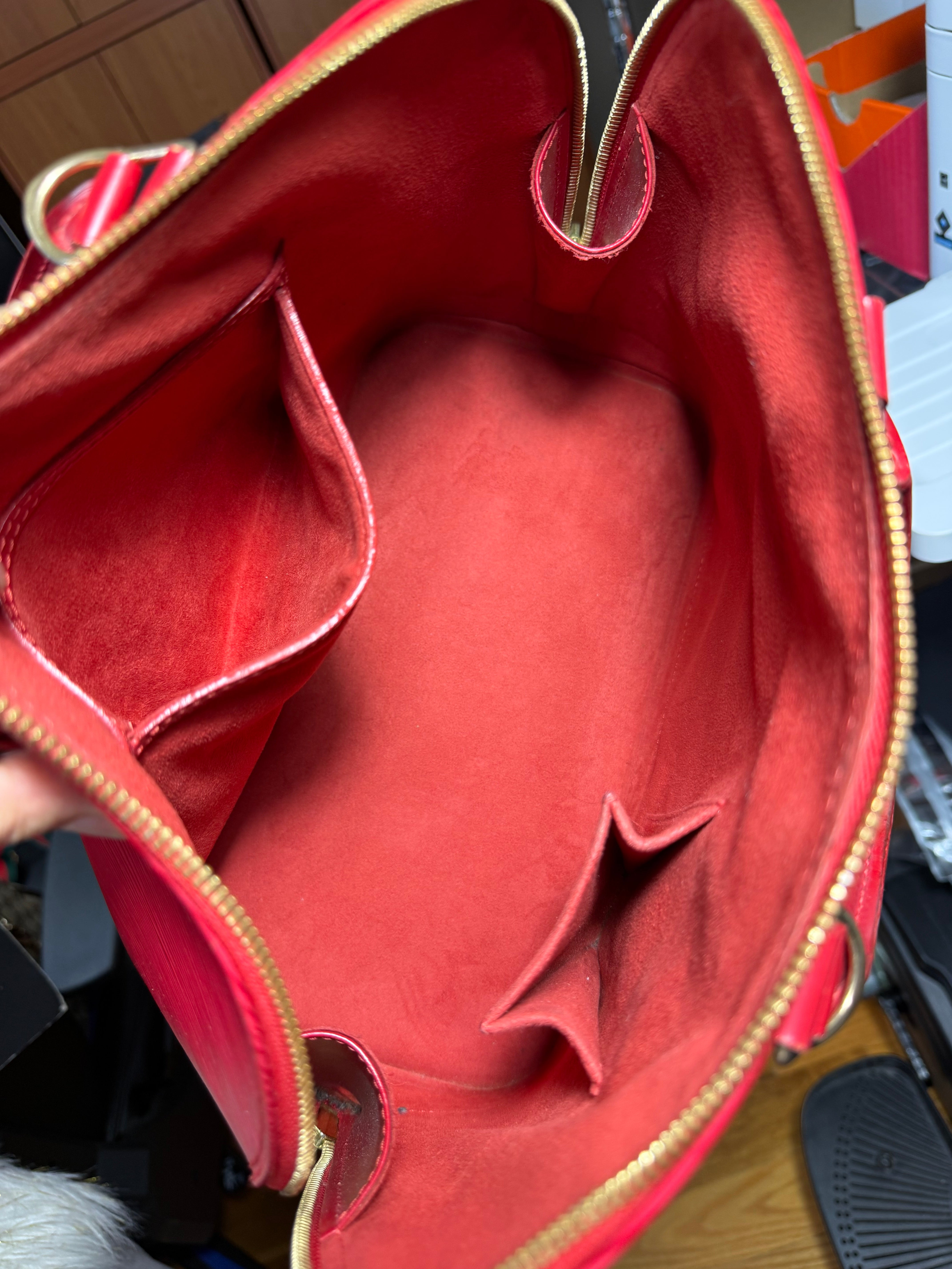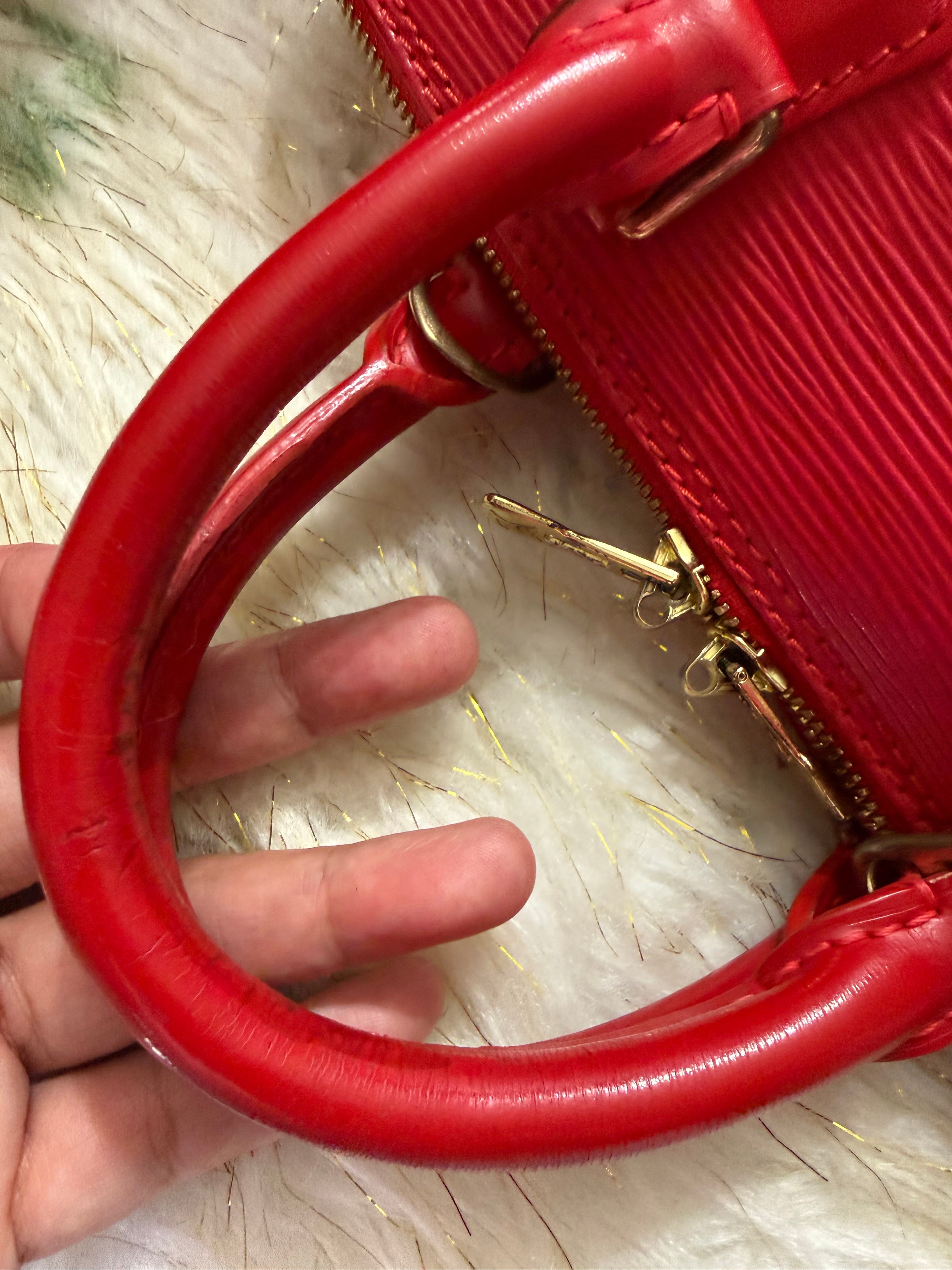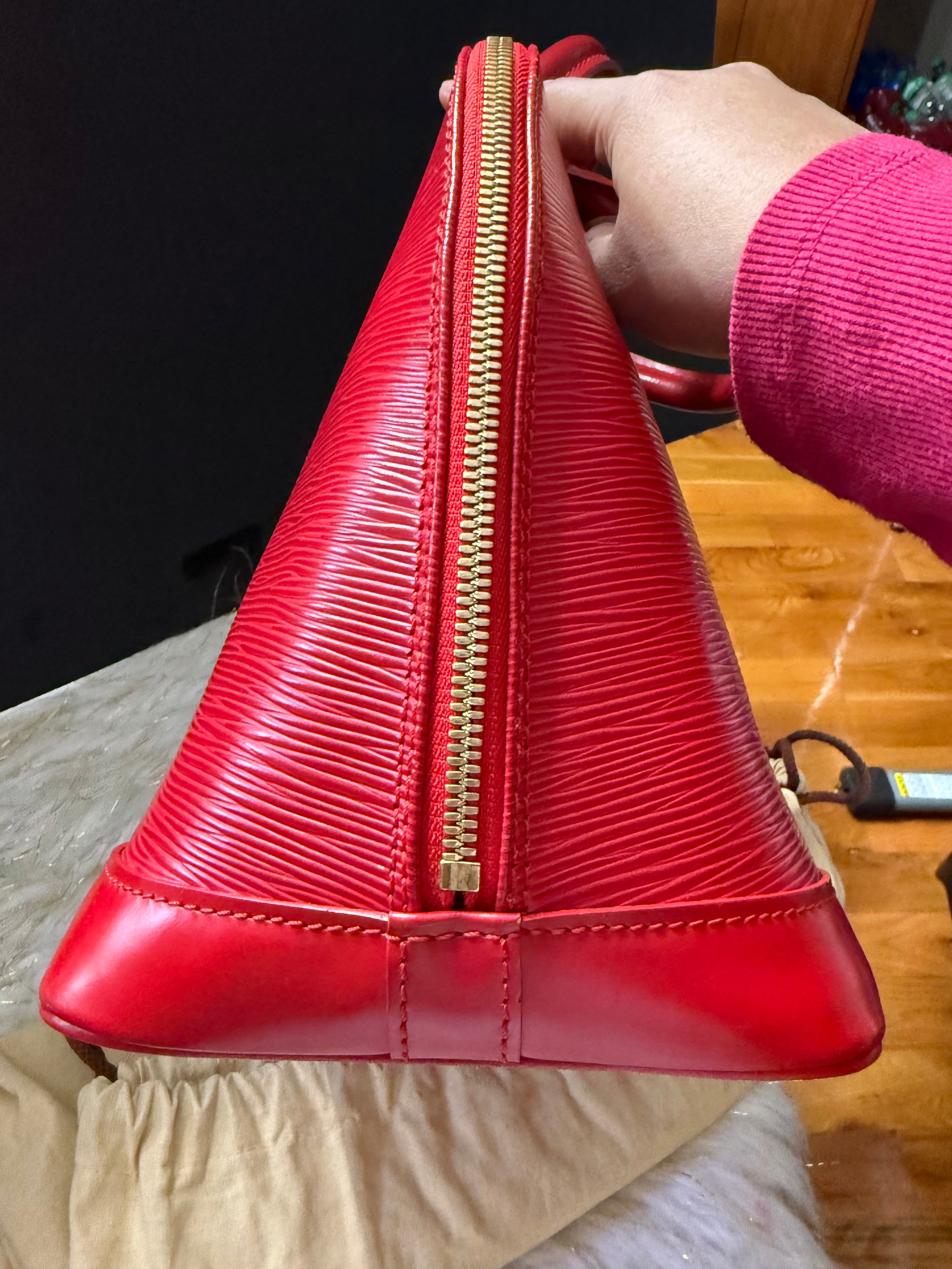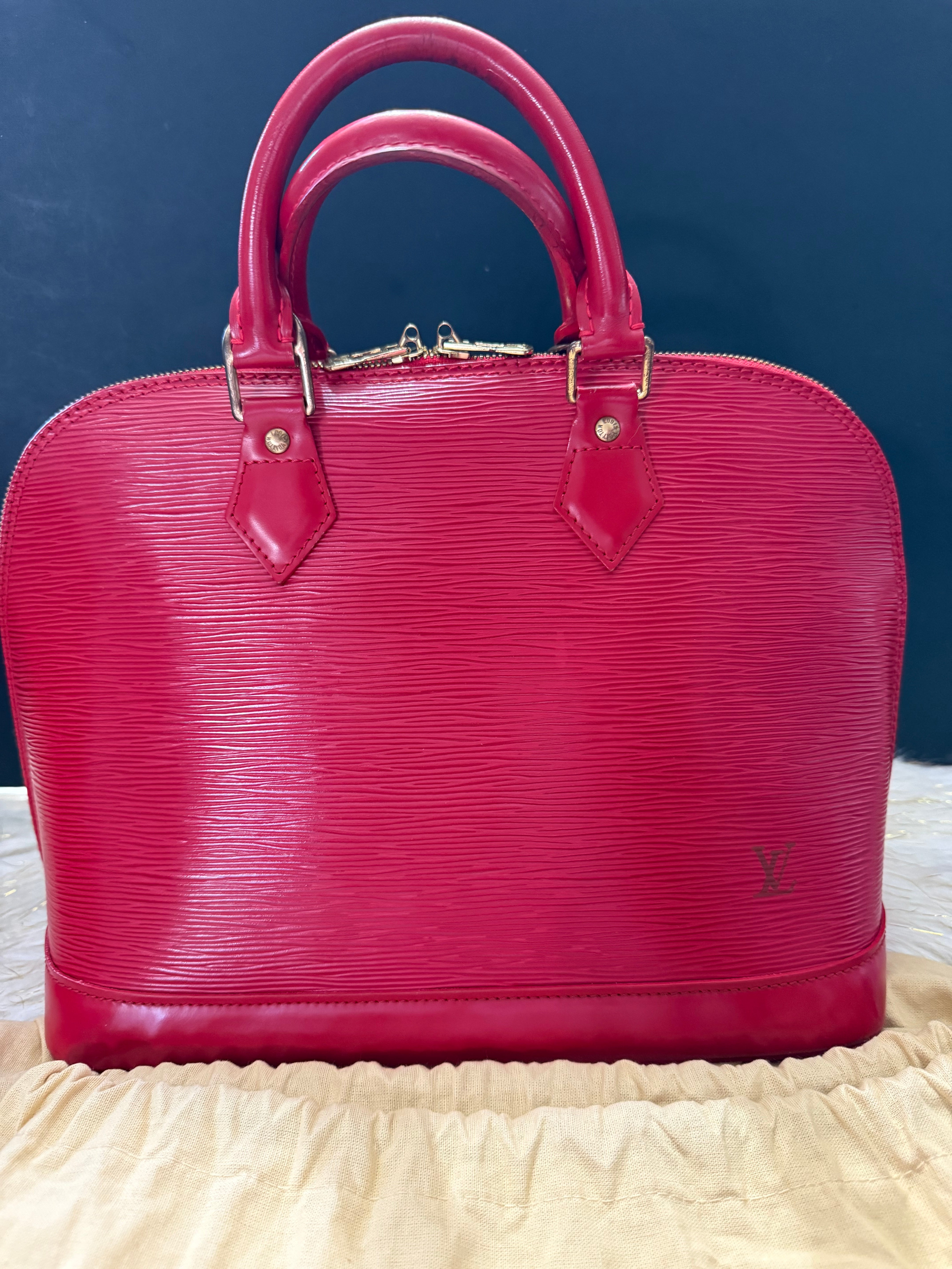 Louis Vuitton Alma Pm Red epi handbag with duster