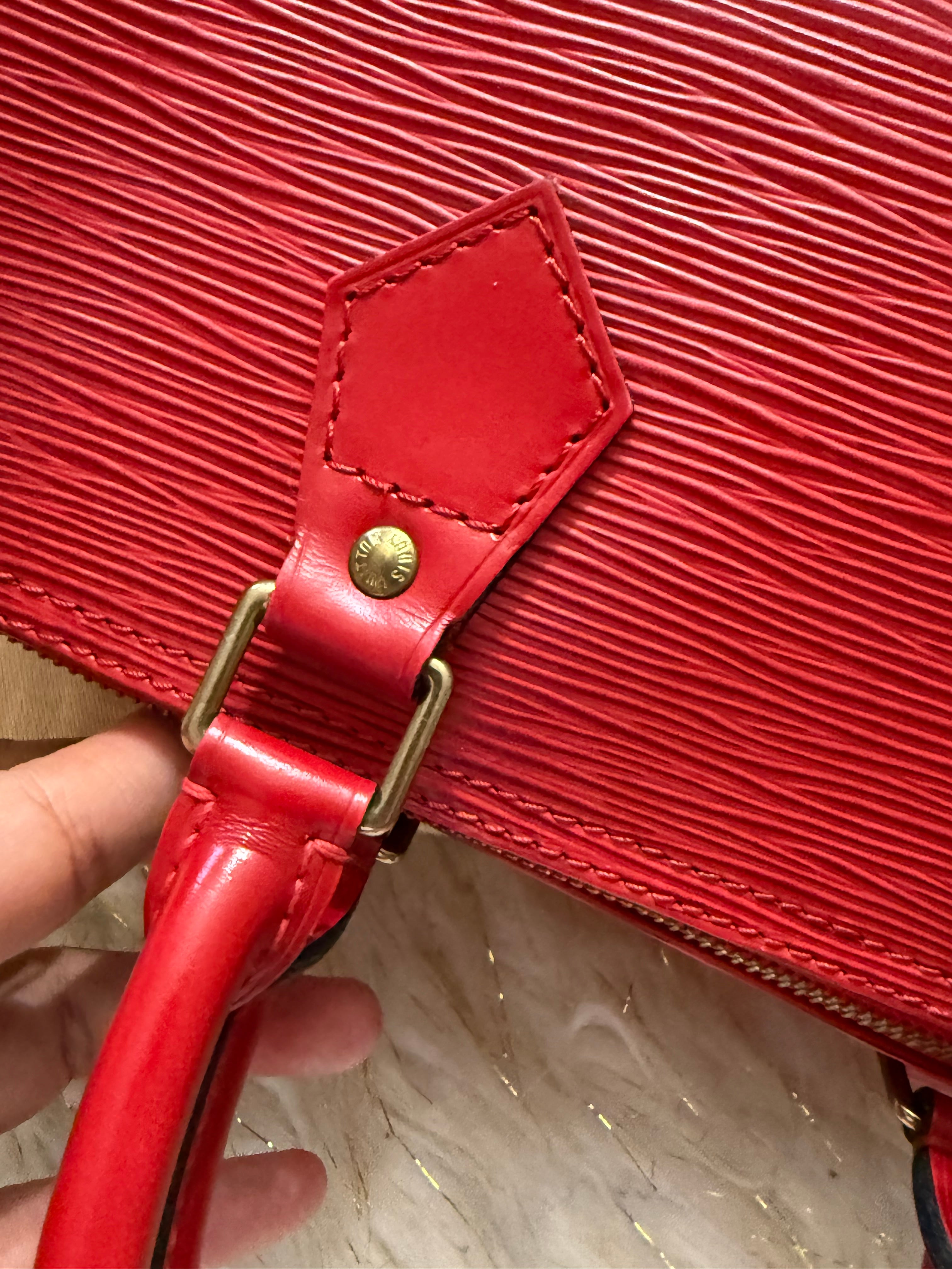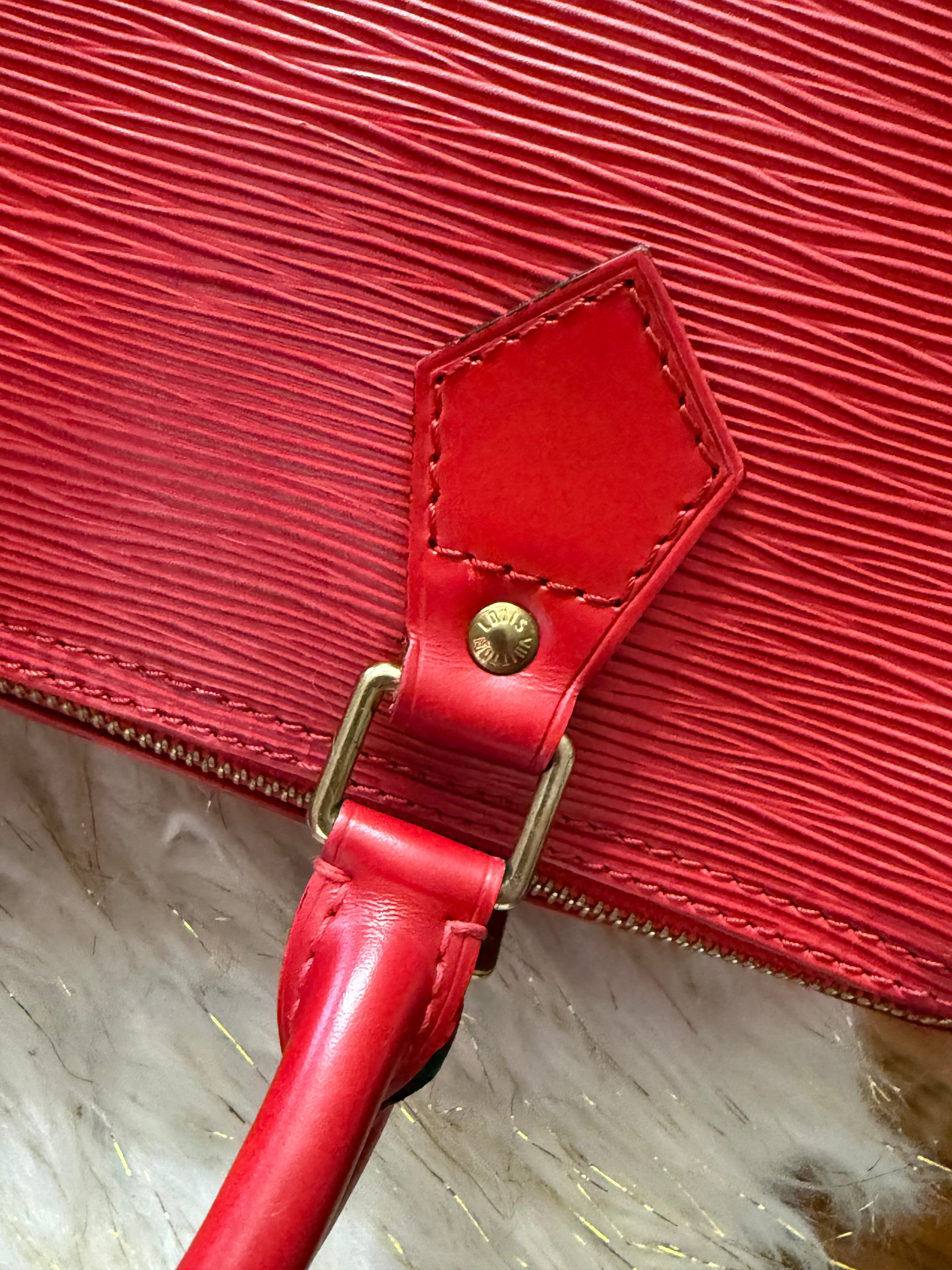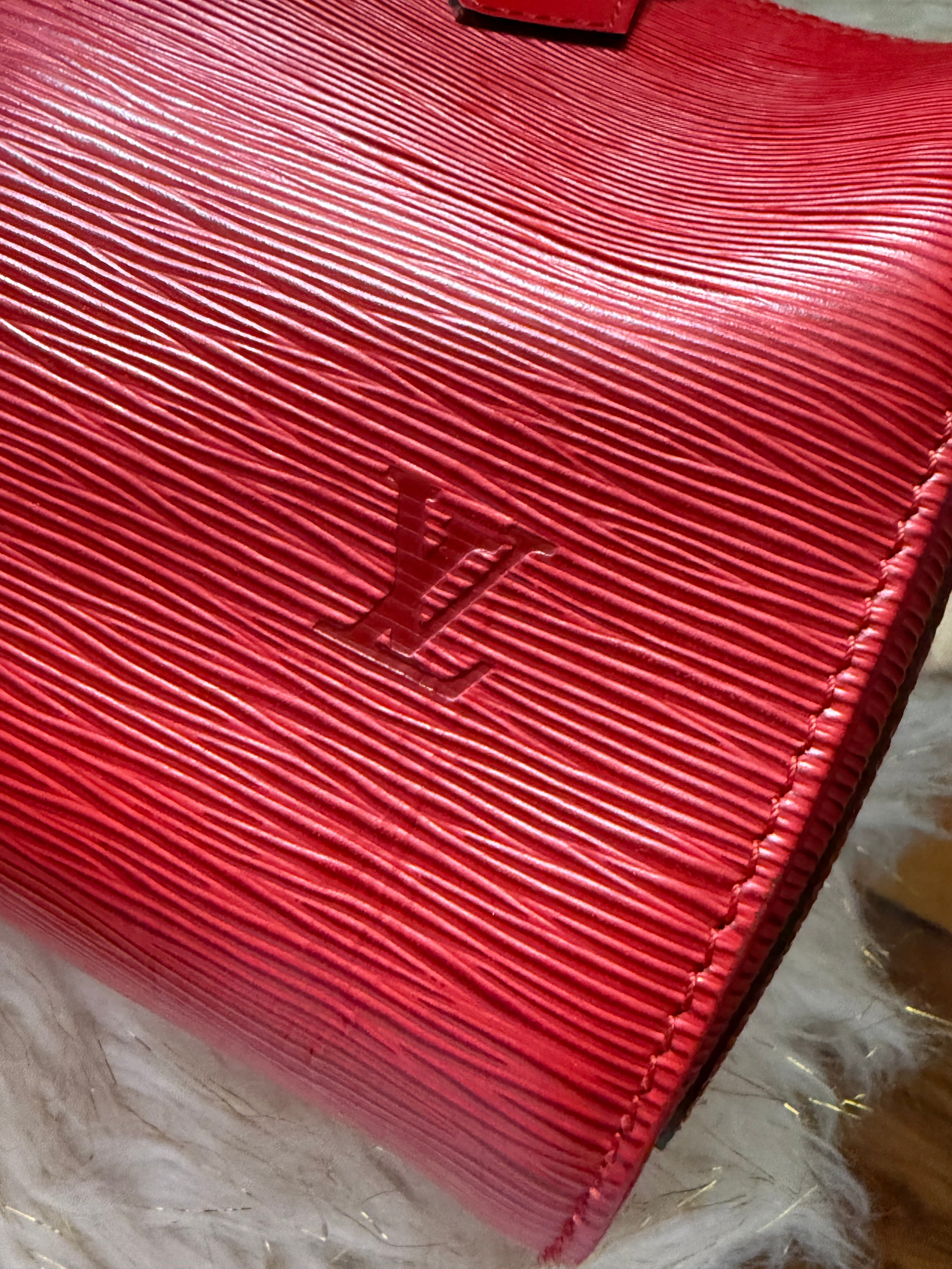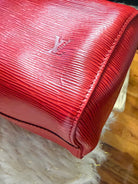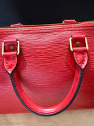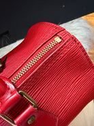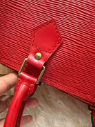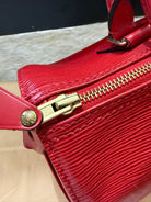 Stylish Handbag with iconic red epi pattern. Features red tones. Perfect for everyday use.