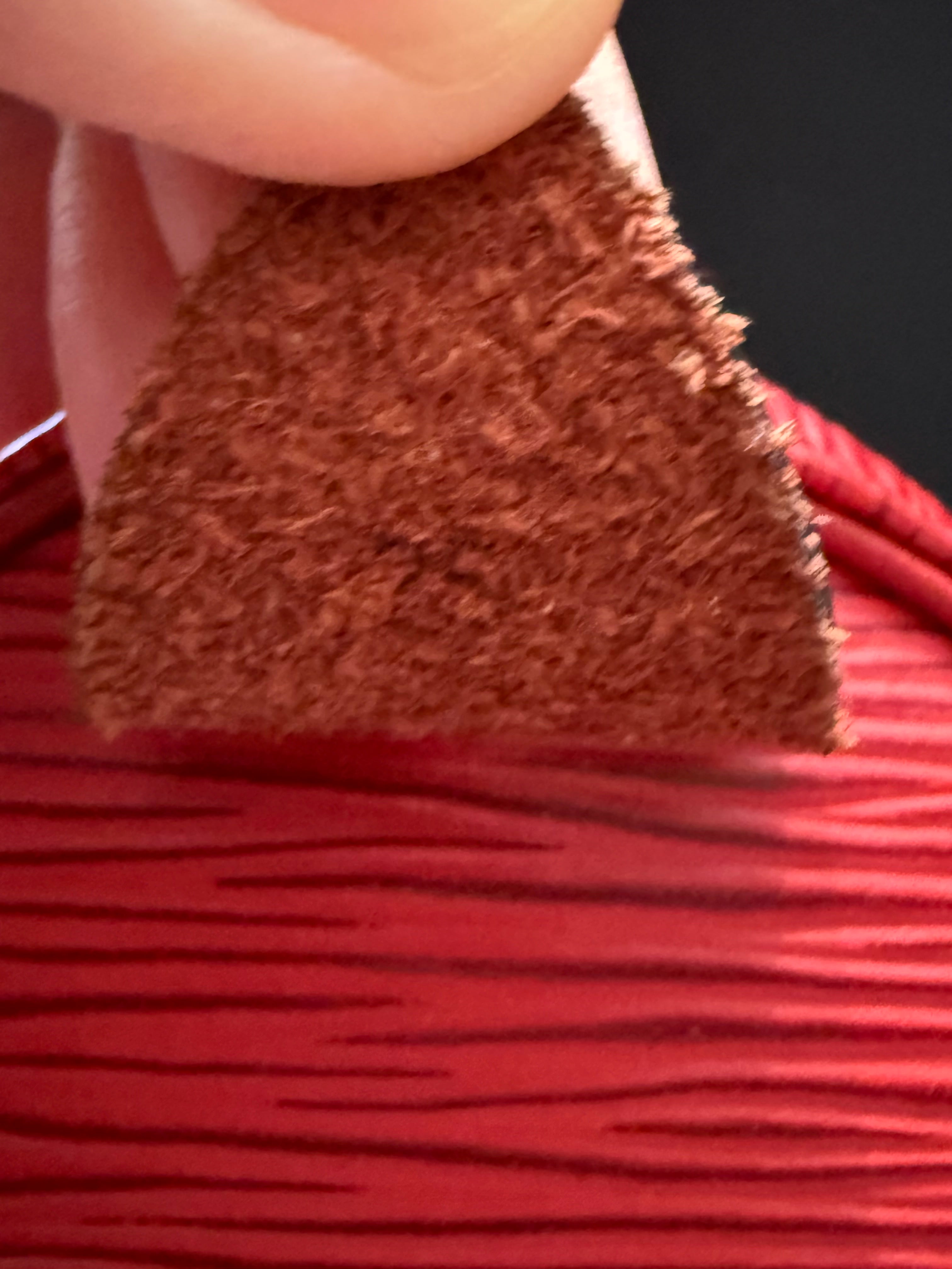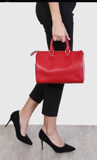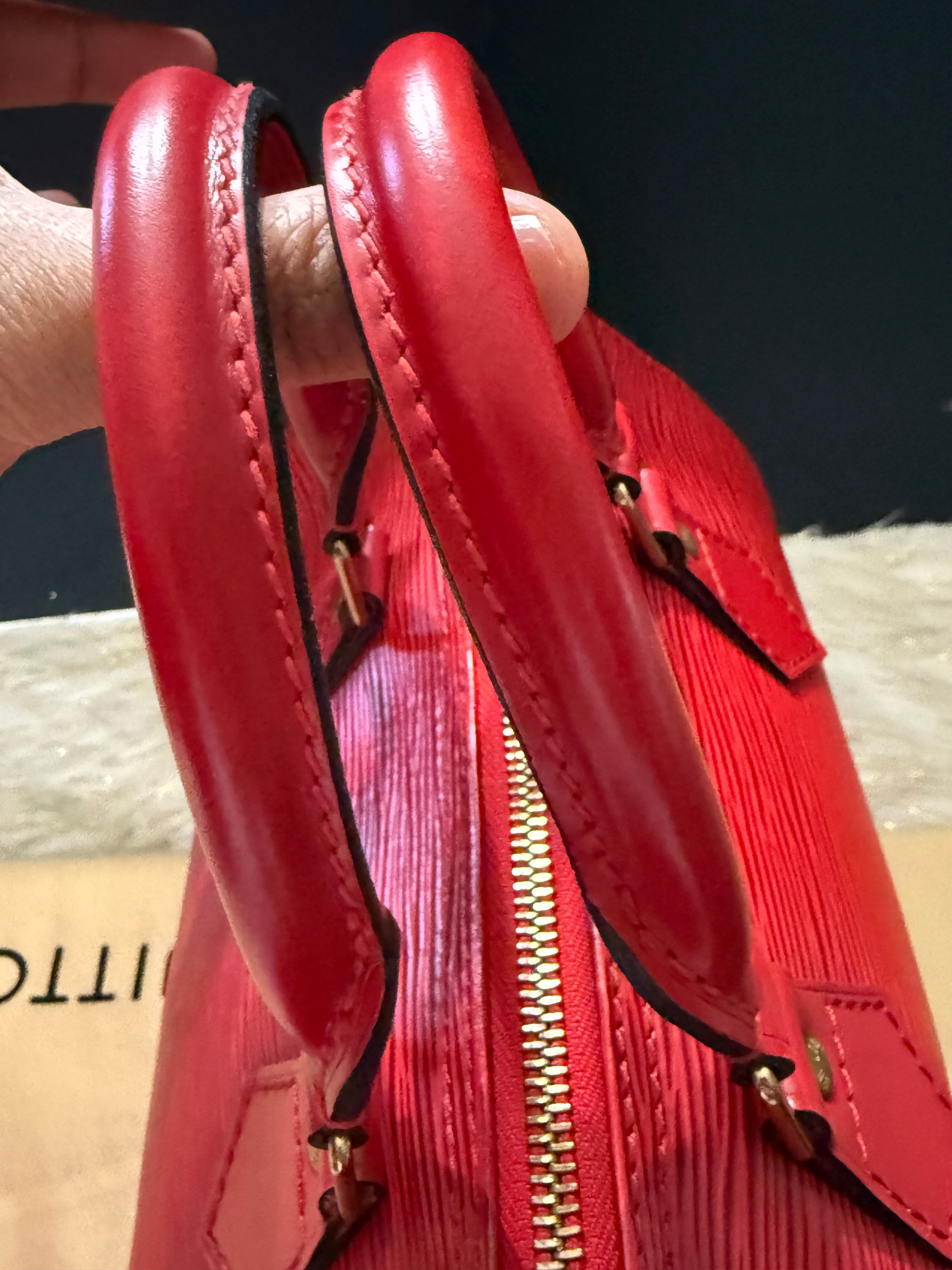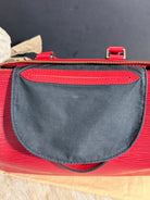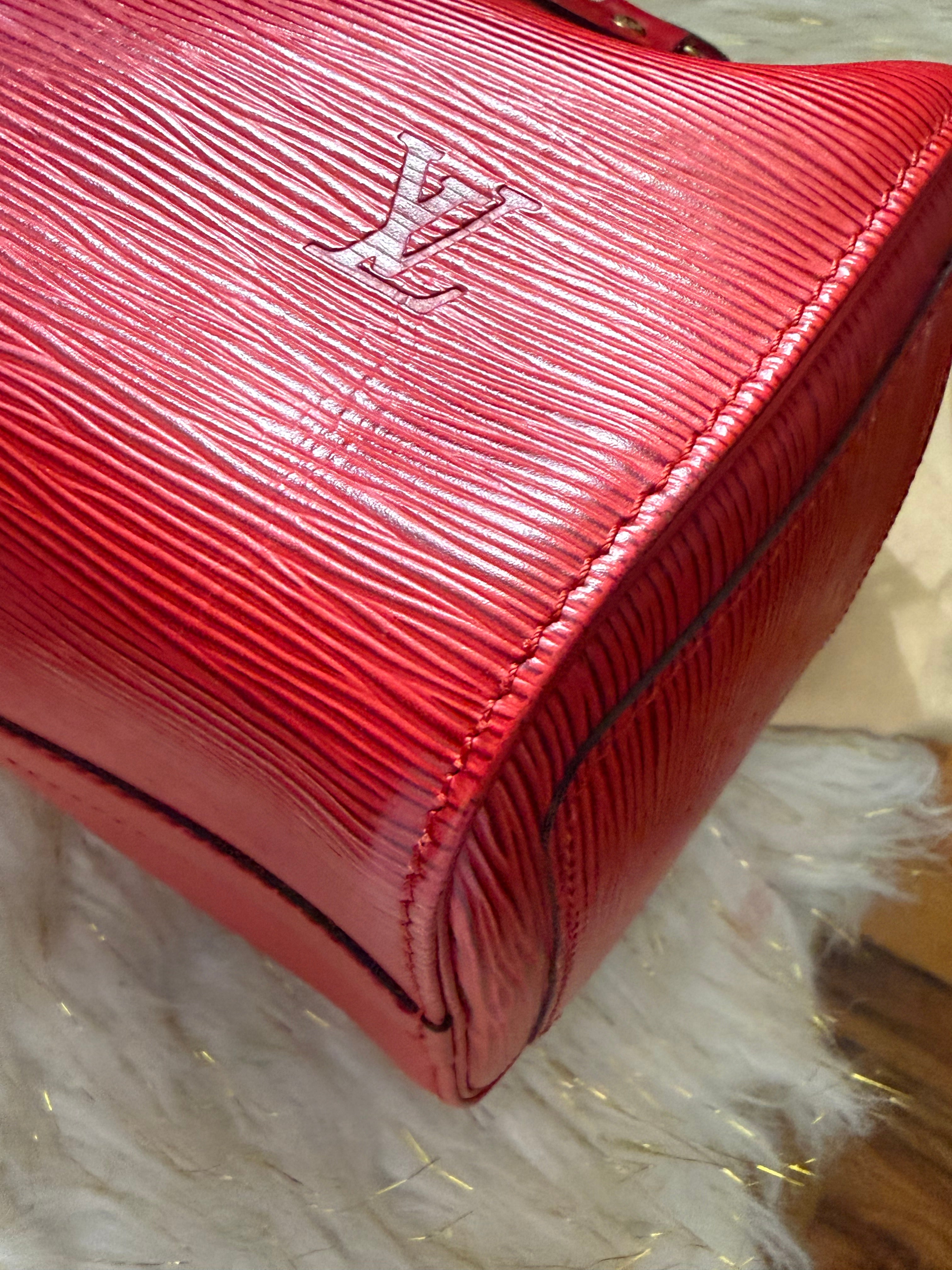 Stylish Handbag with iconic red epi pattern. Features red tones. Perfect for everyday use.