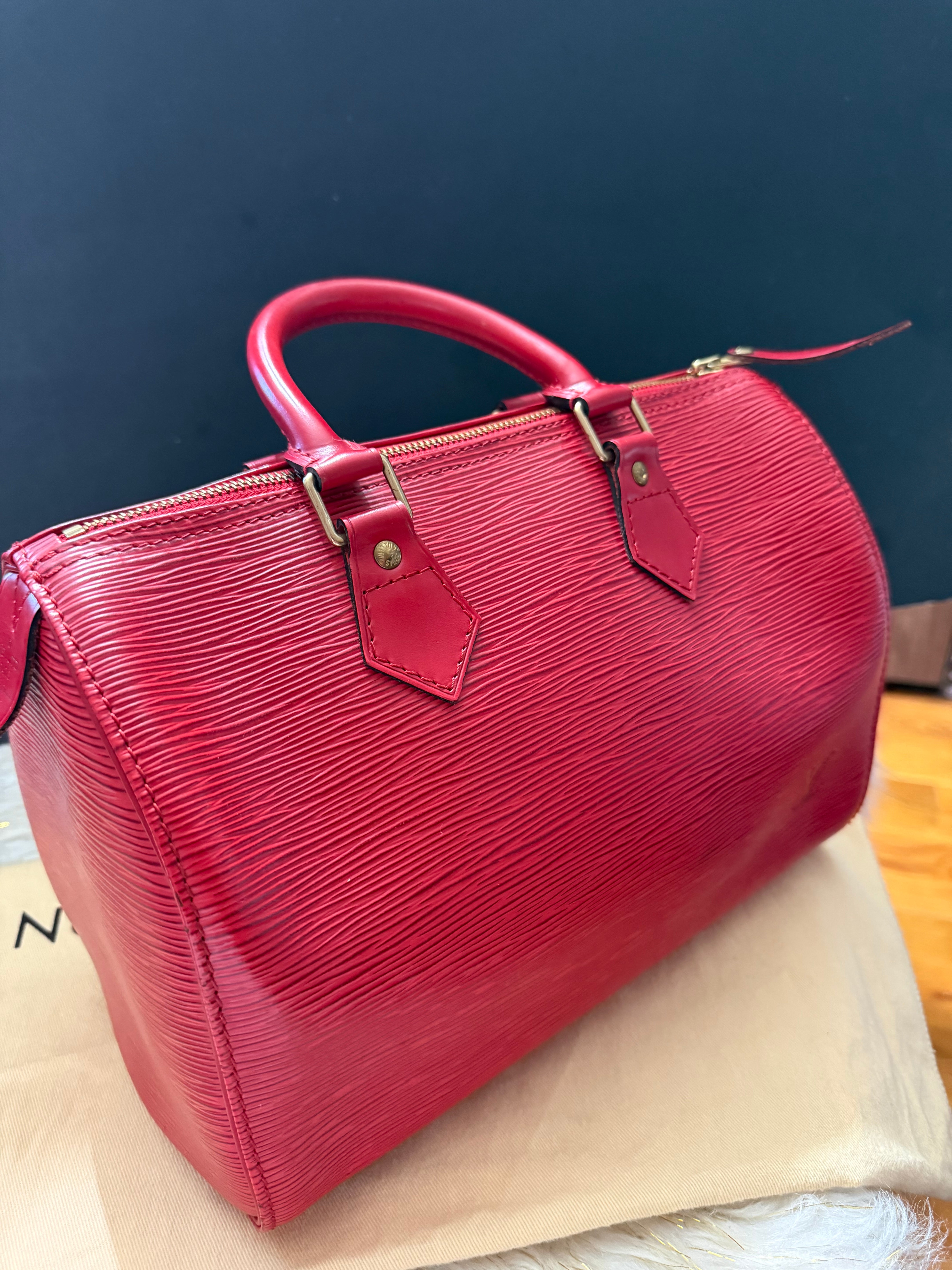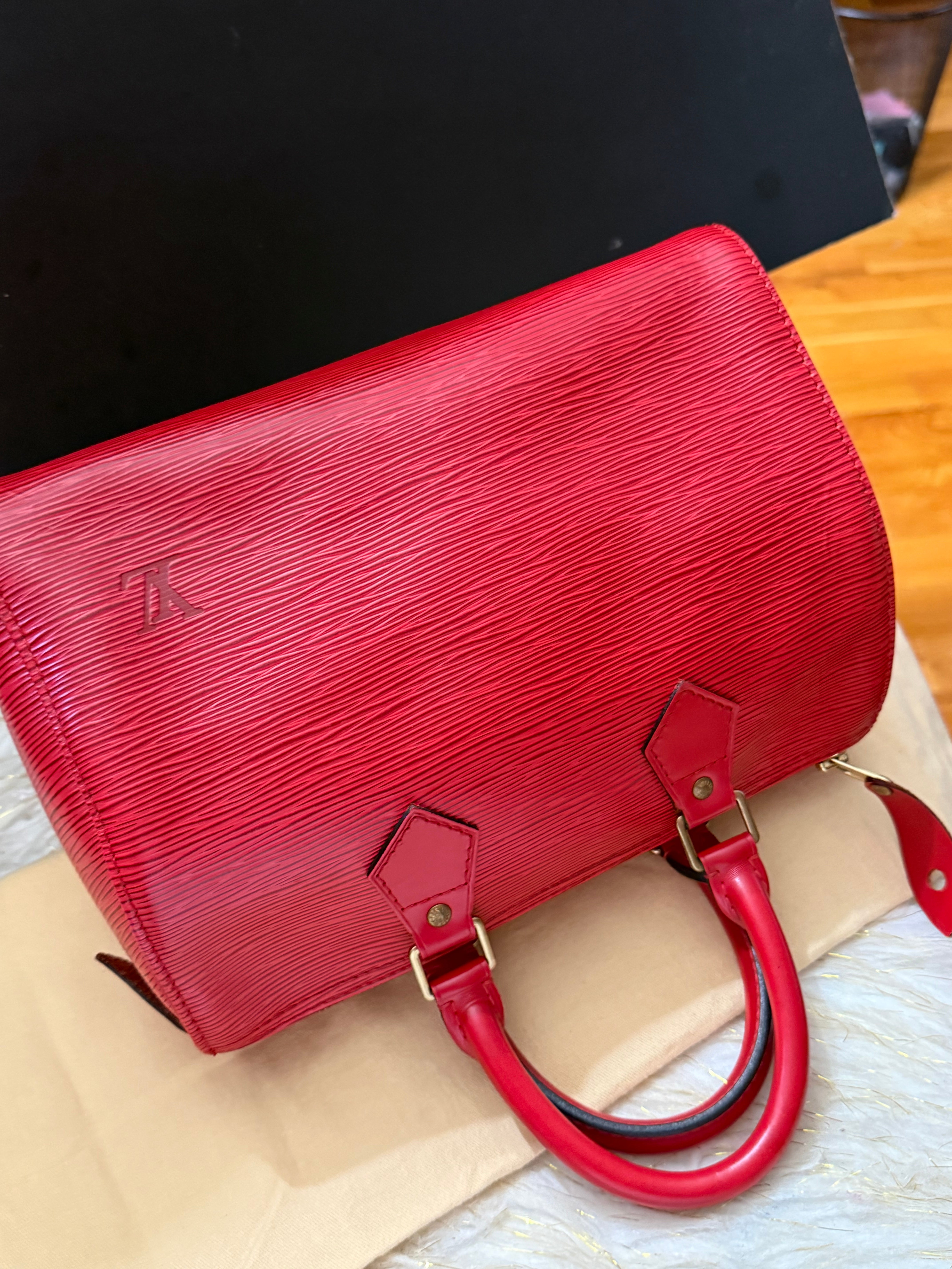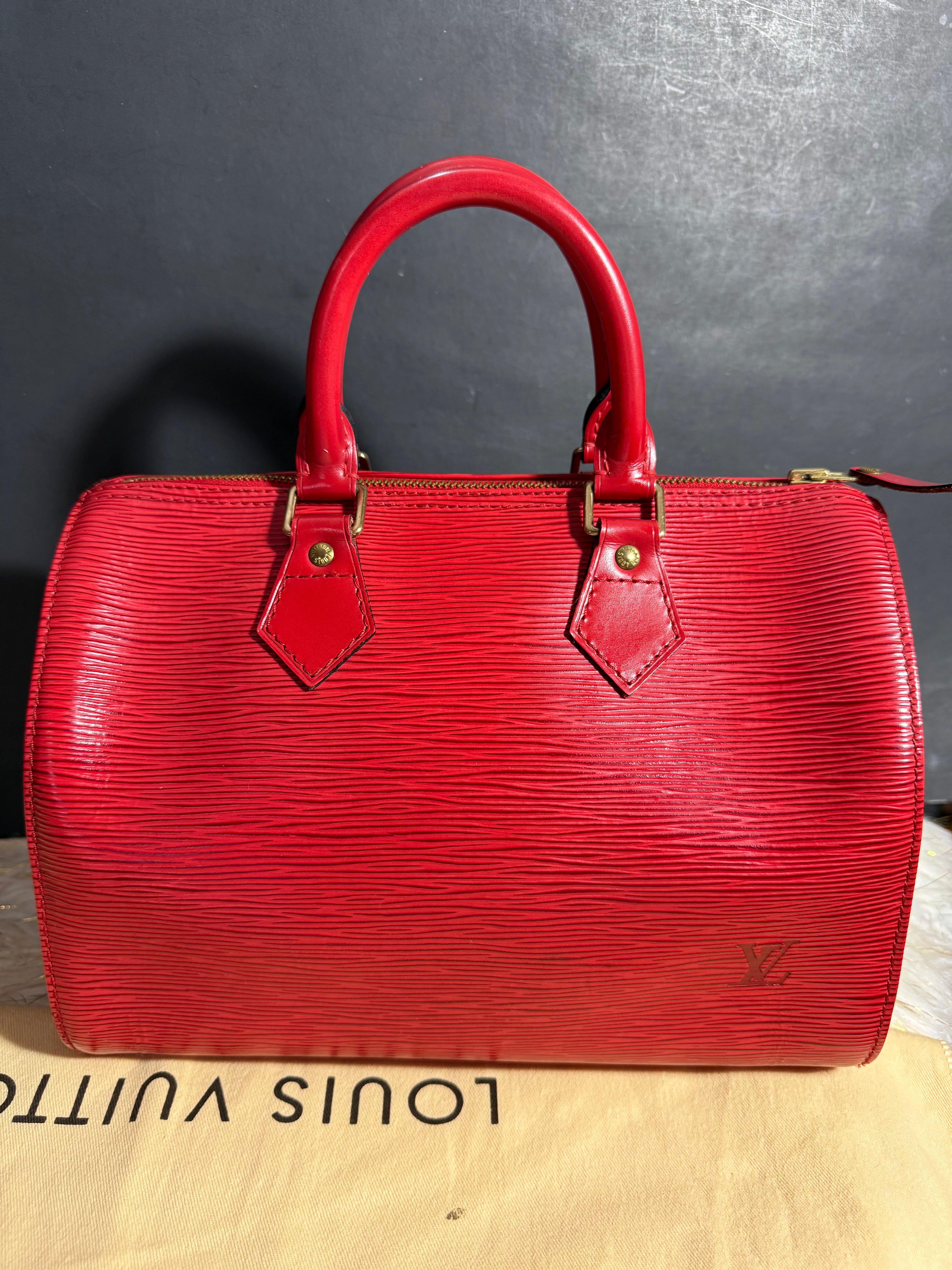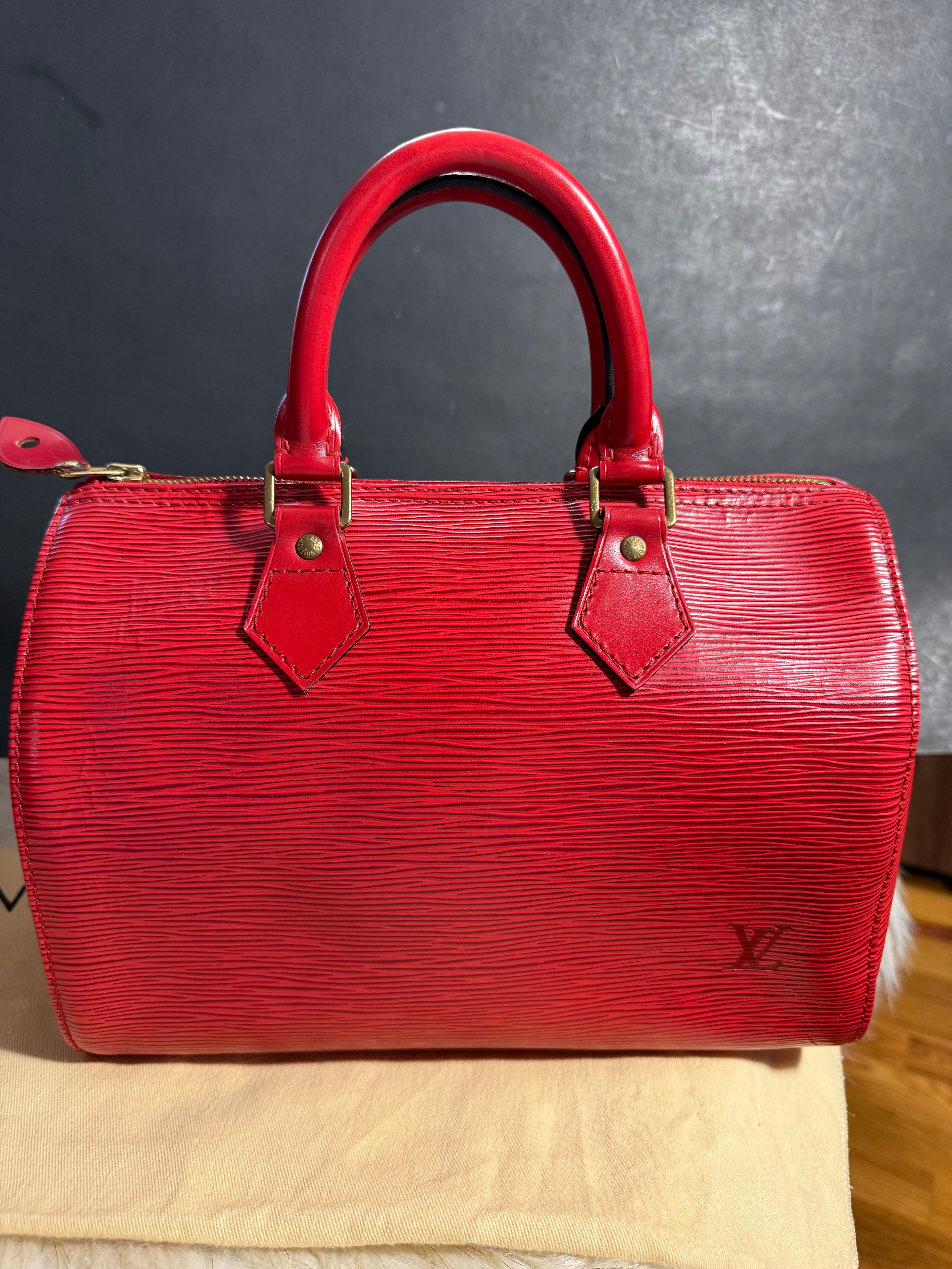 Louis Vuitton Speedy 25 Red Epi handbag w/ duster