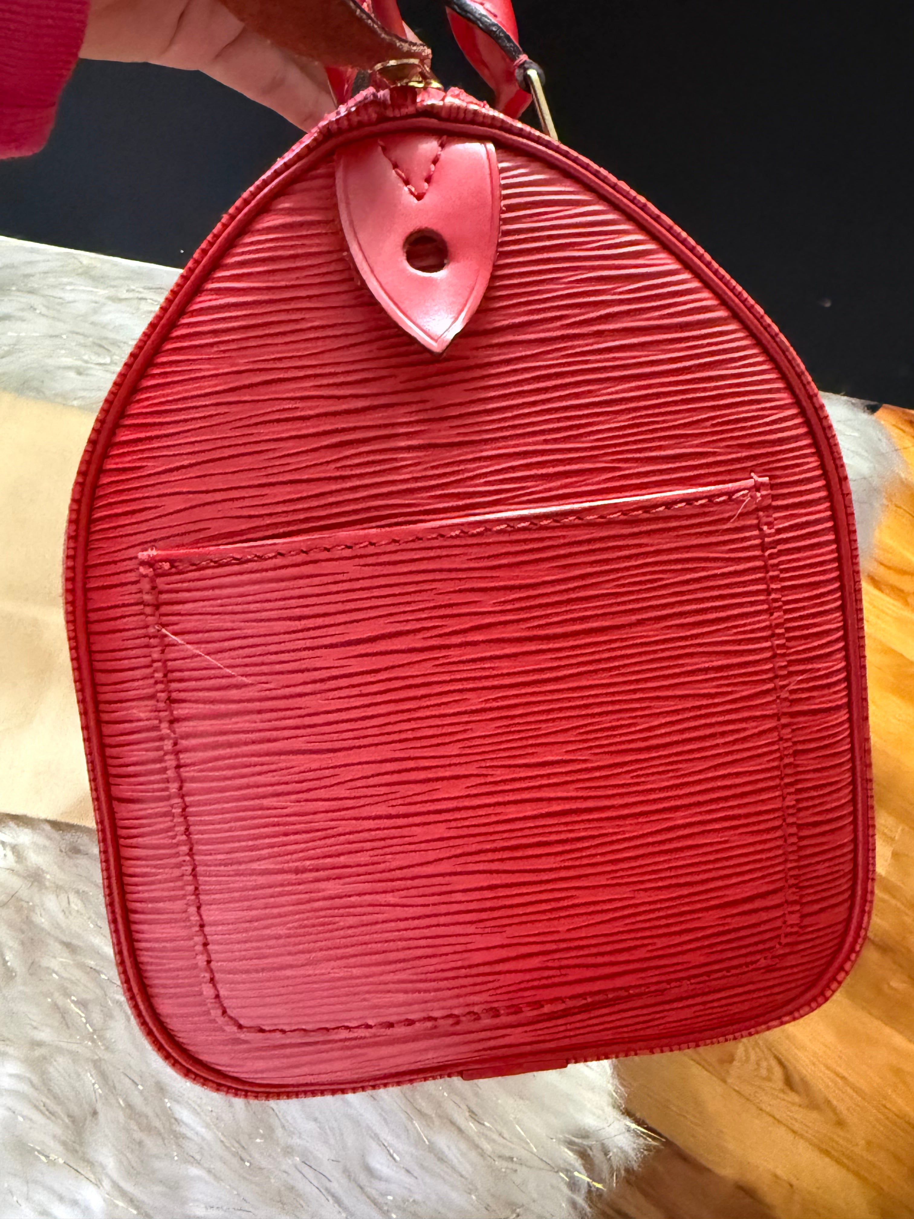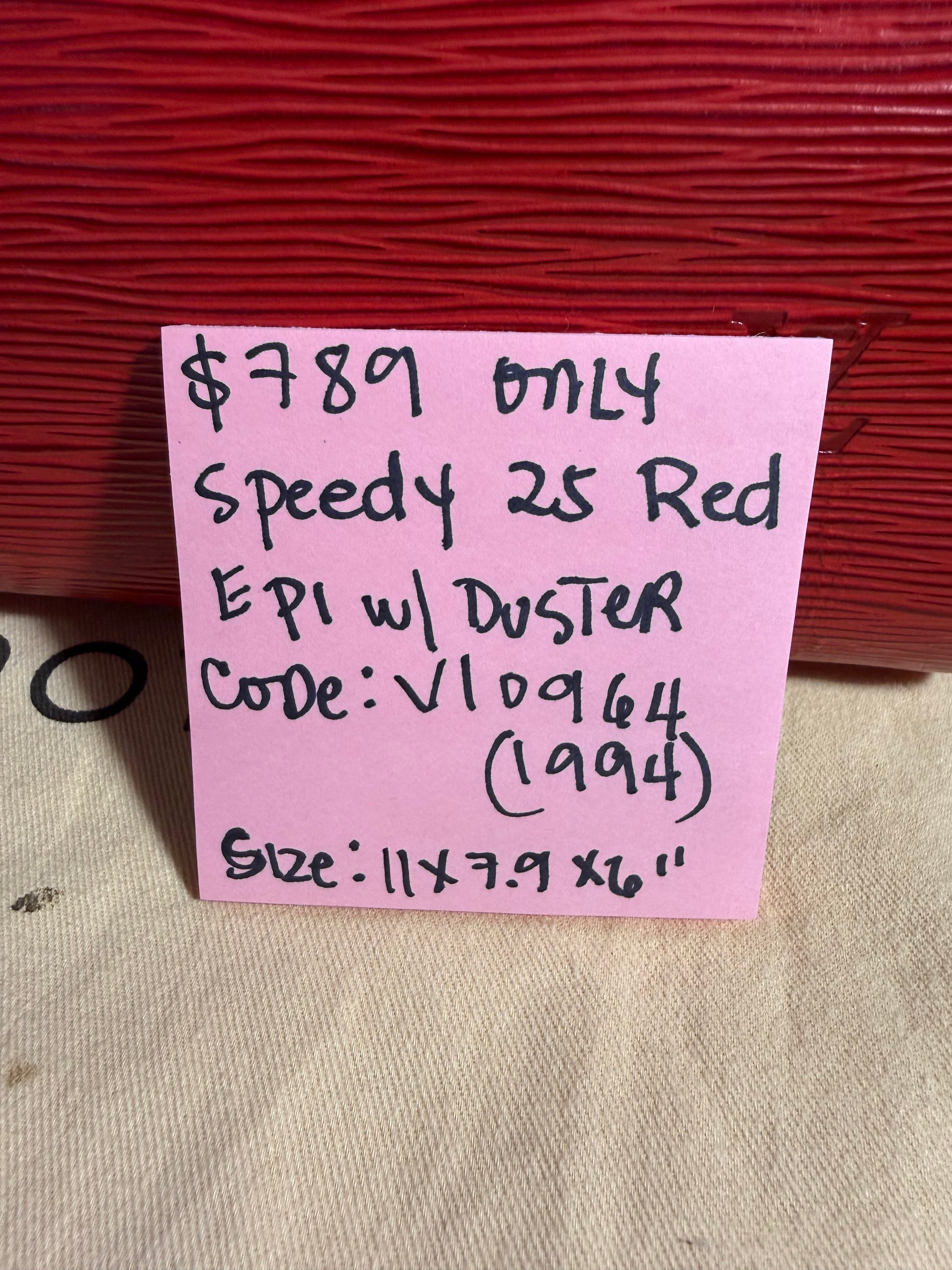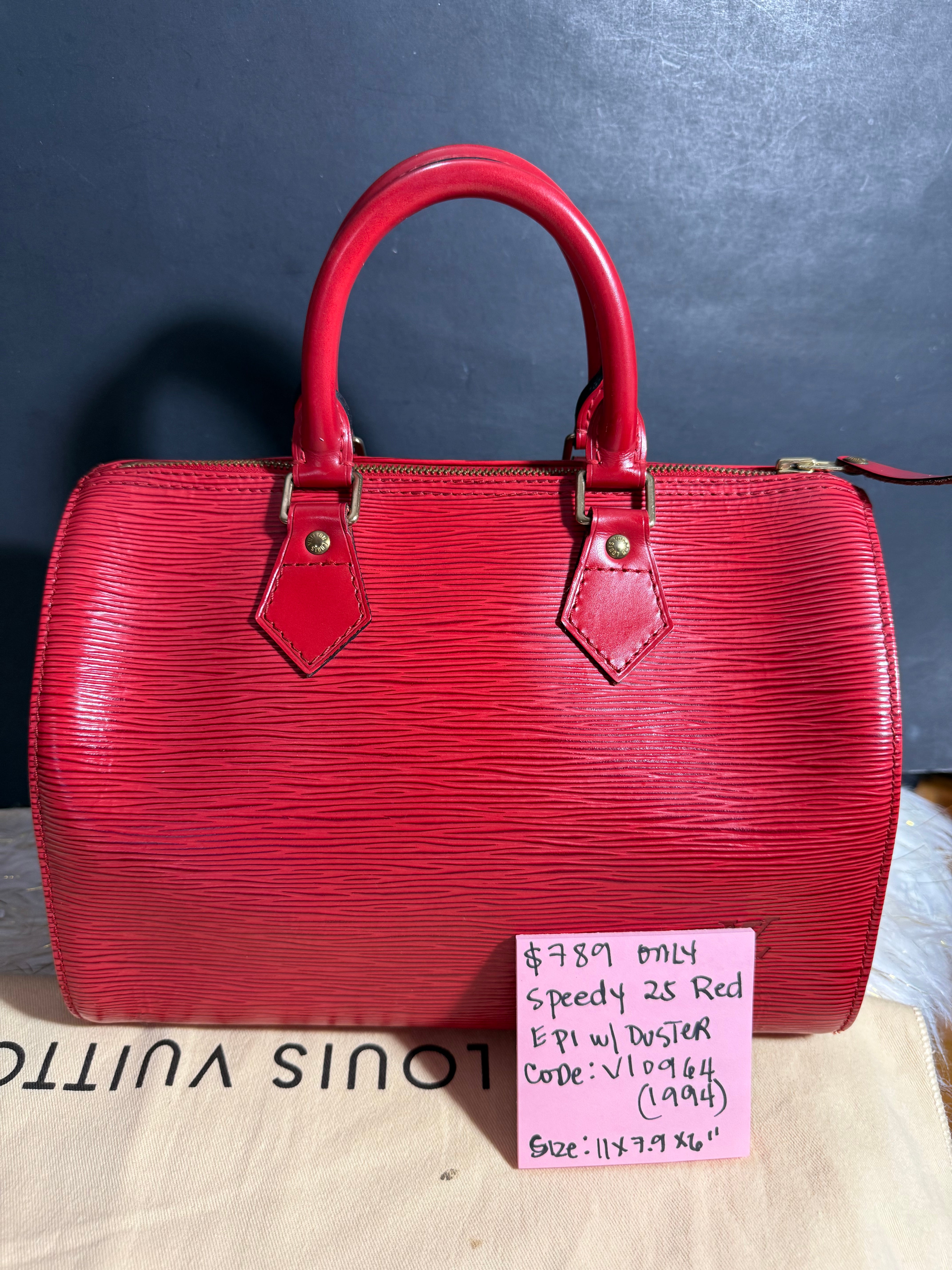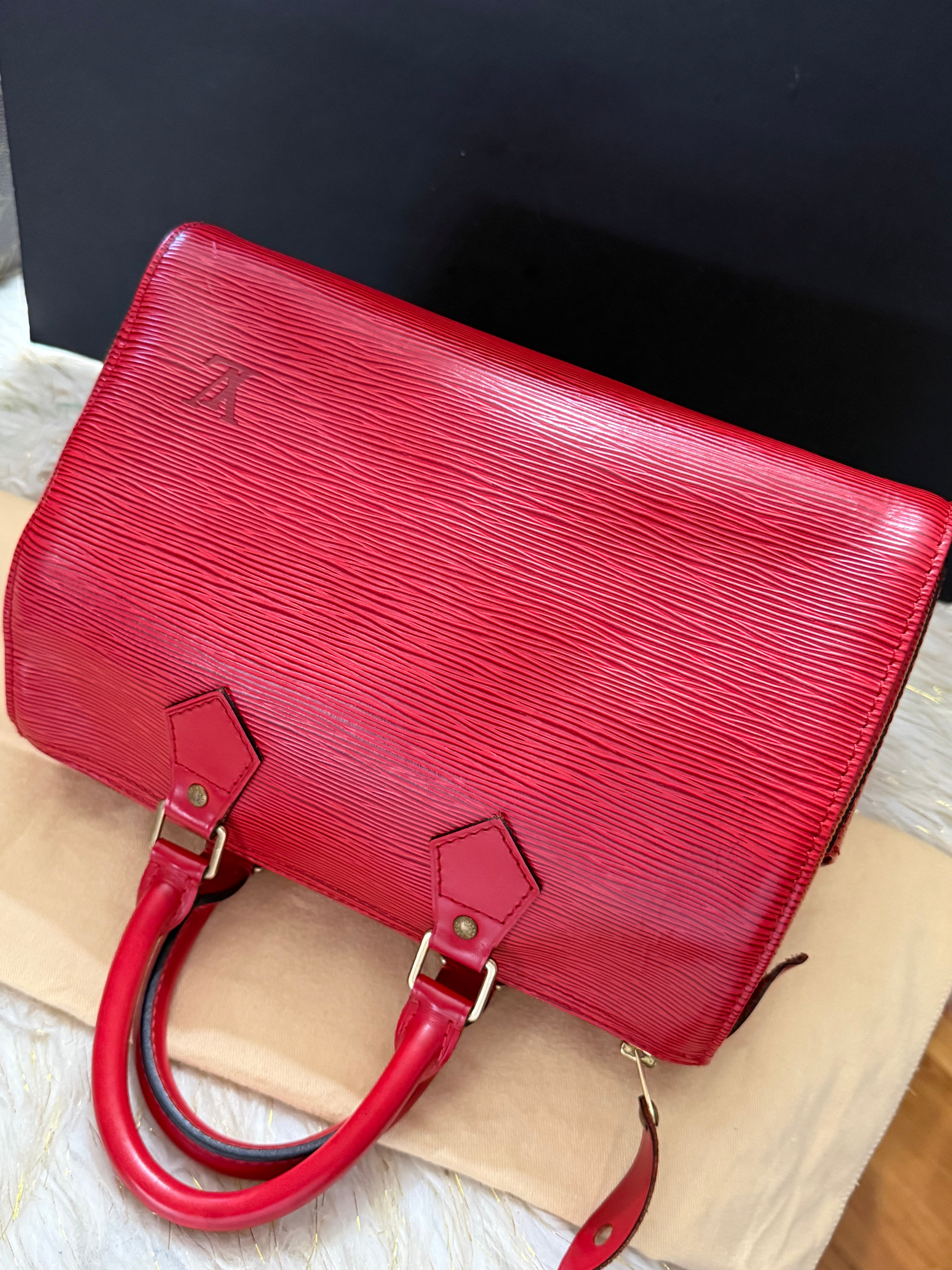 Louis Vuitton Speedy 25 Red Epi handbag w/ duster