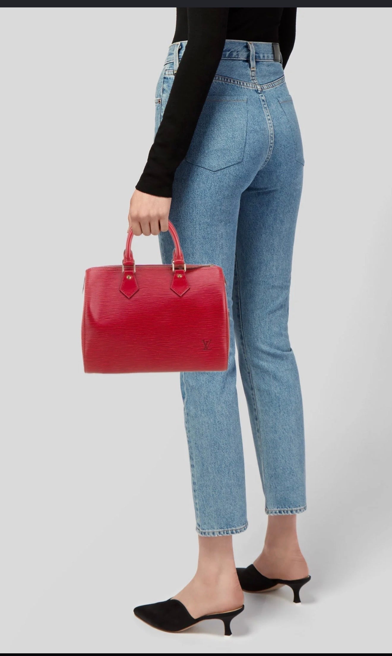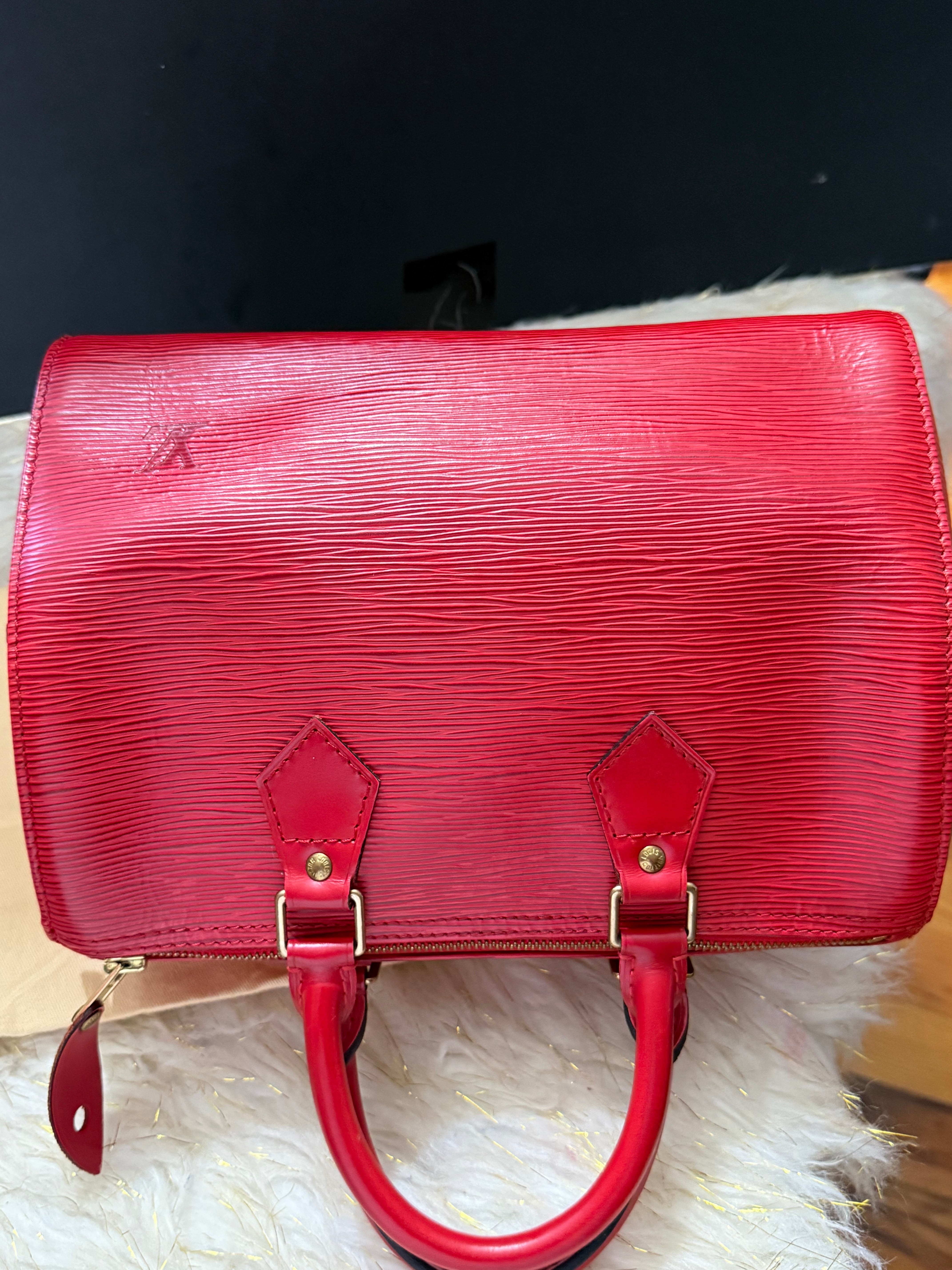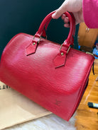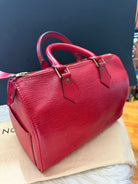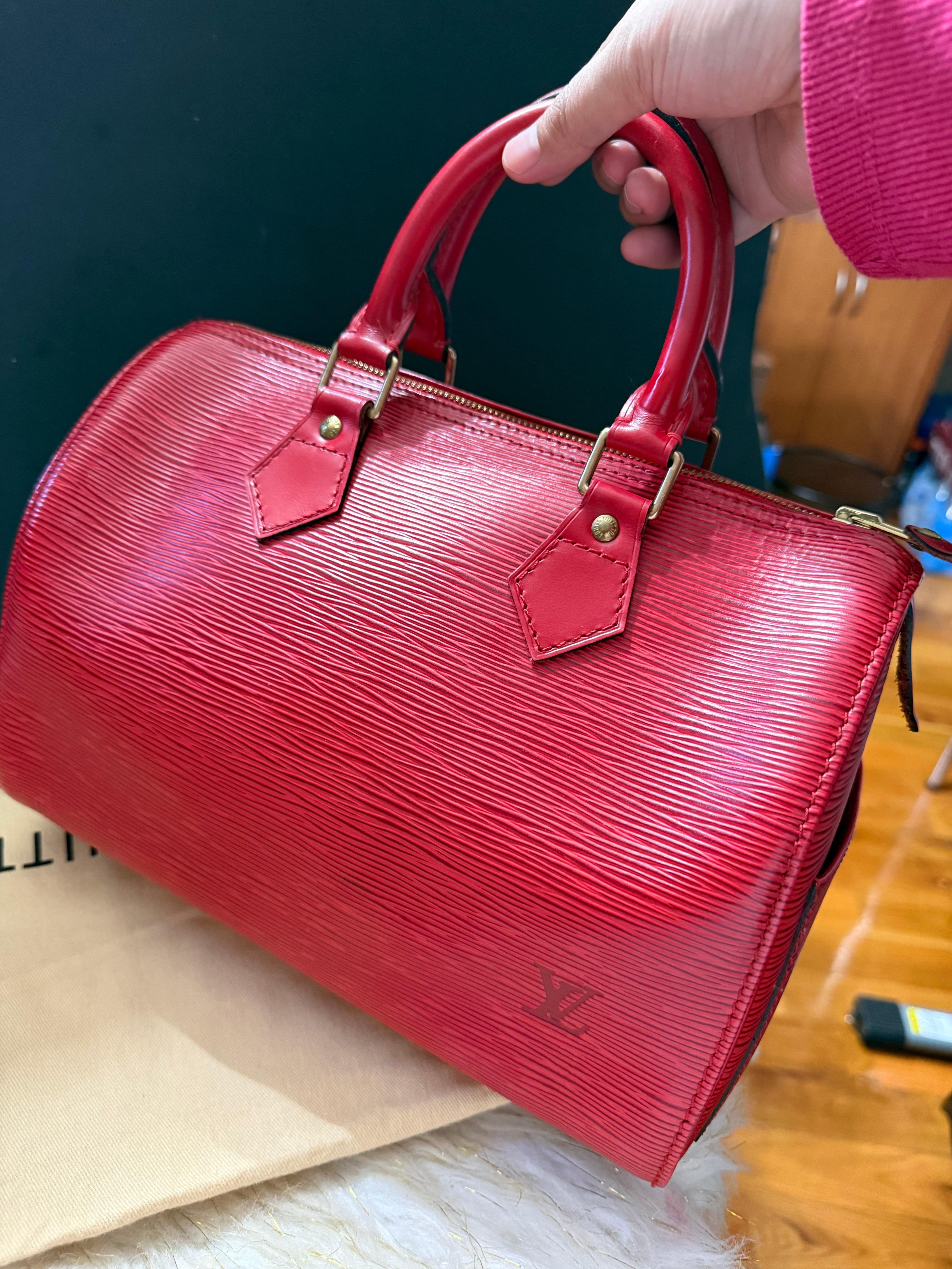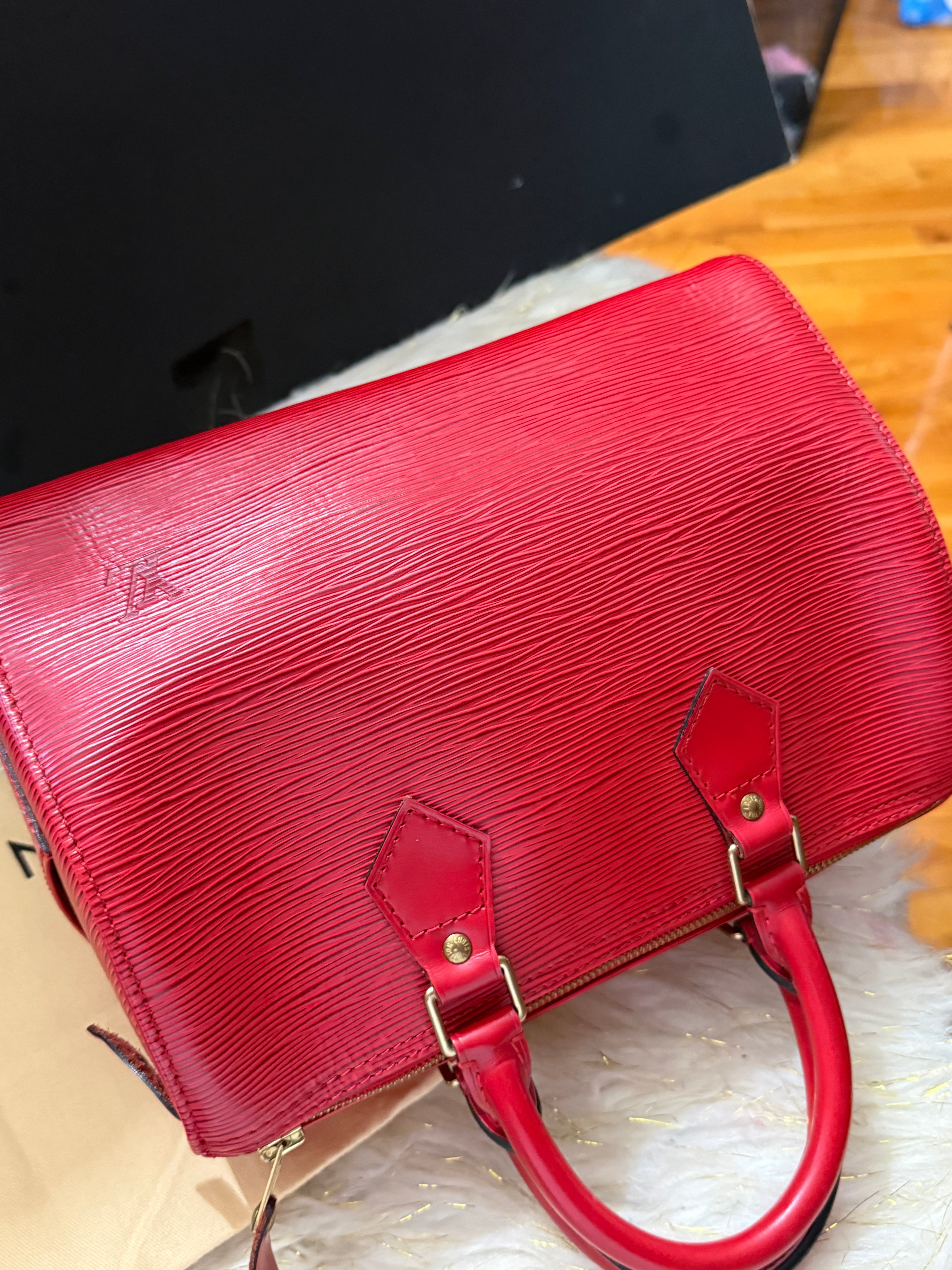 Louis Vuitton Speedy 25 Red Epi handbag w/ duster