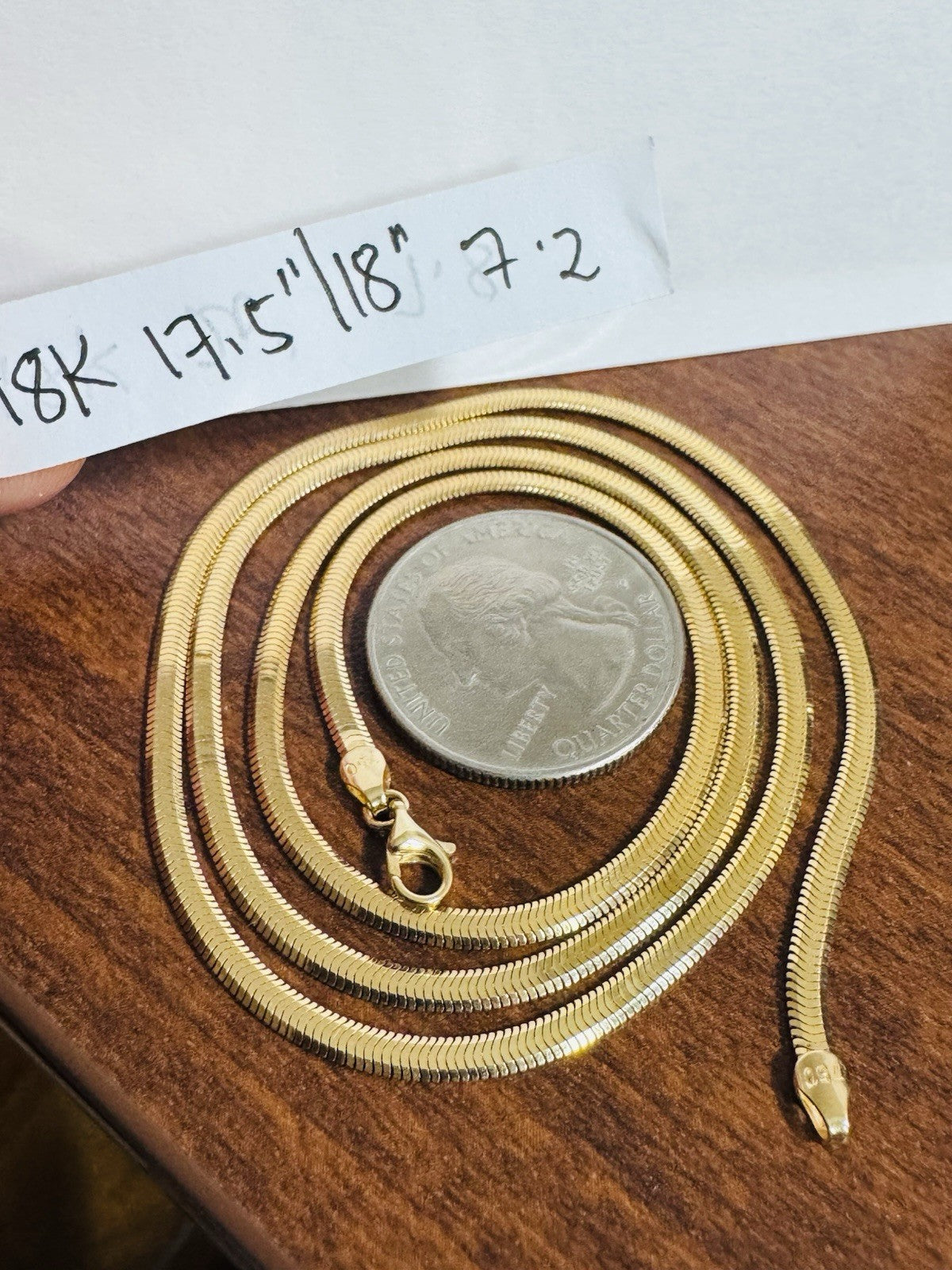 New 18K 750 Fine Yellow Gold Snake Chain Necklace 17.5”/18” Long 7.2g 3.2mm