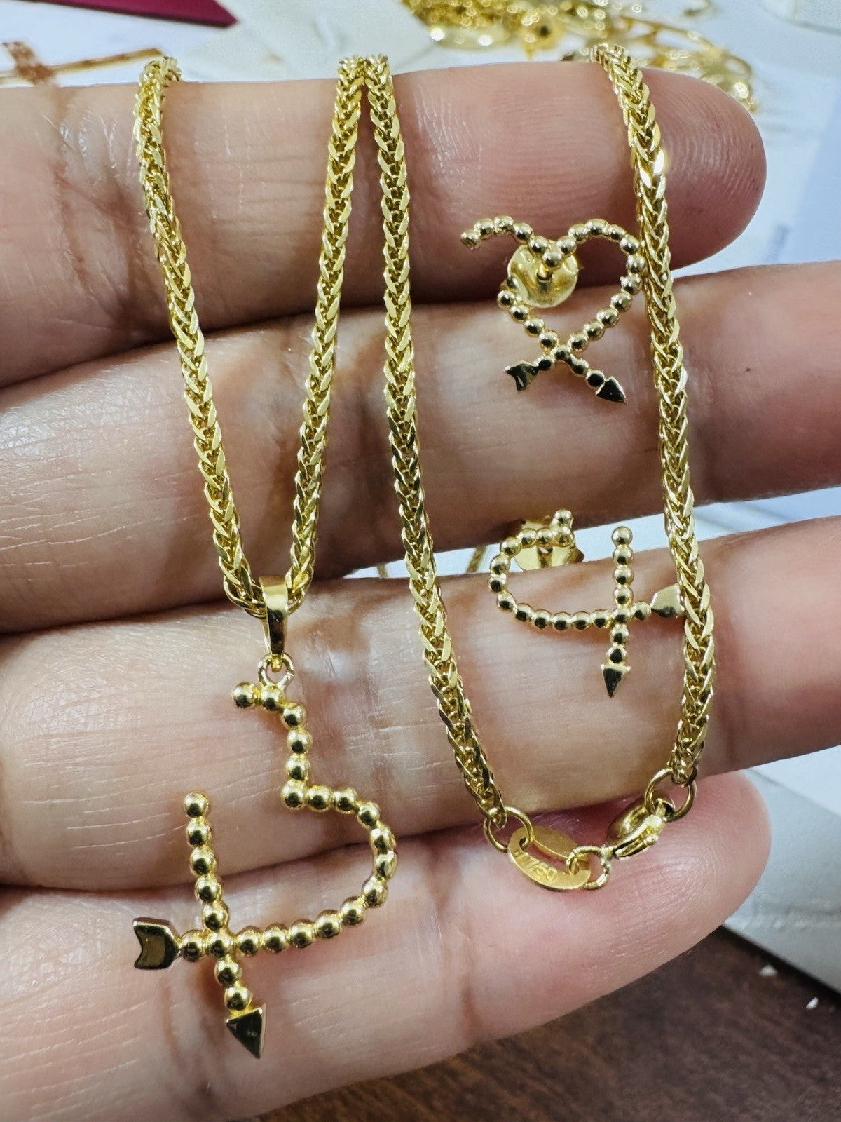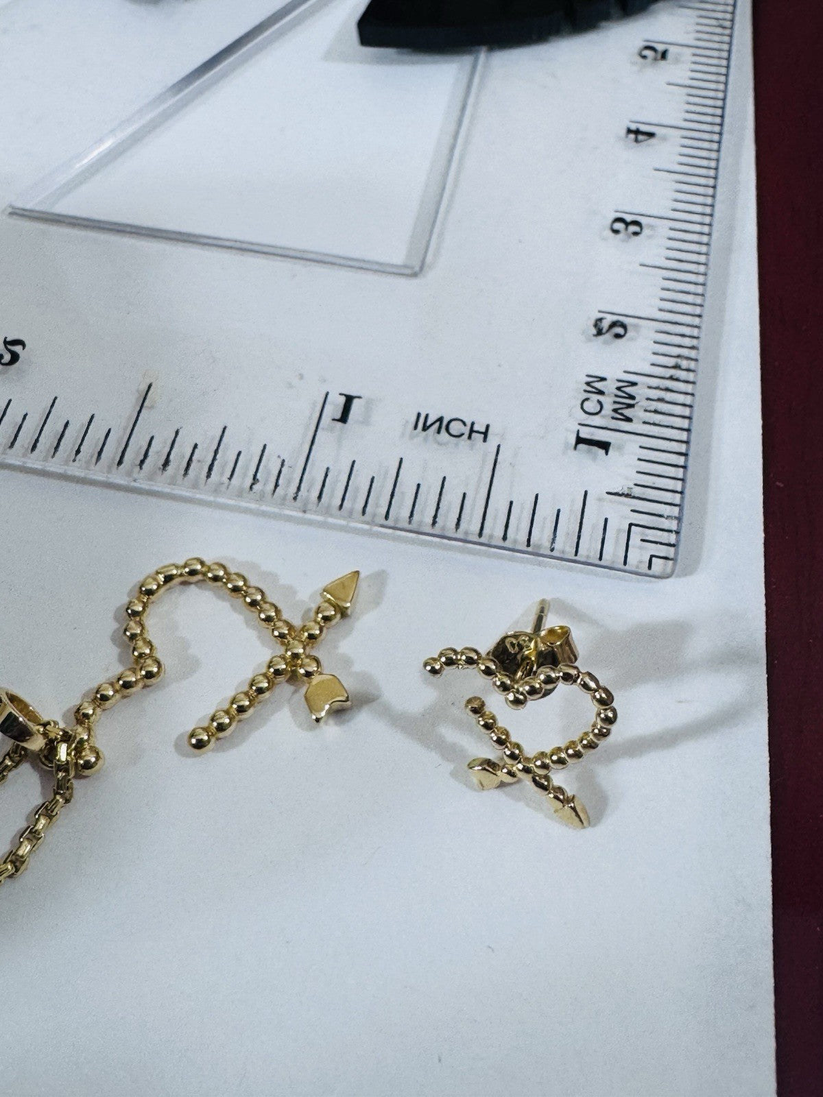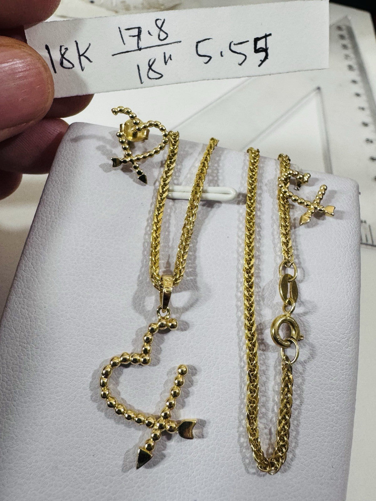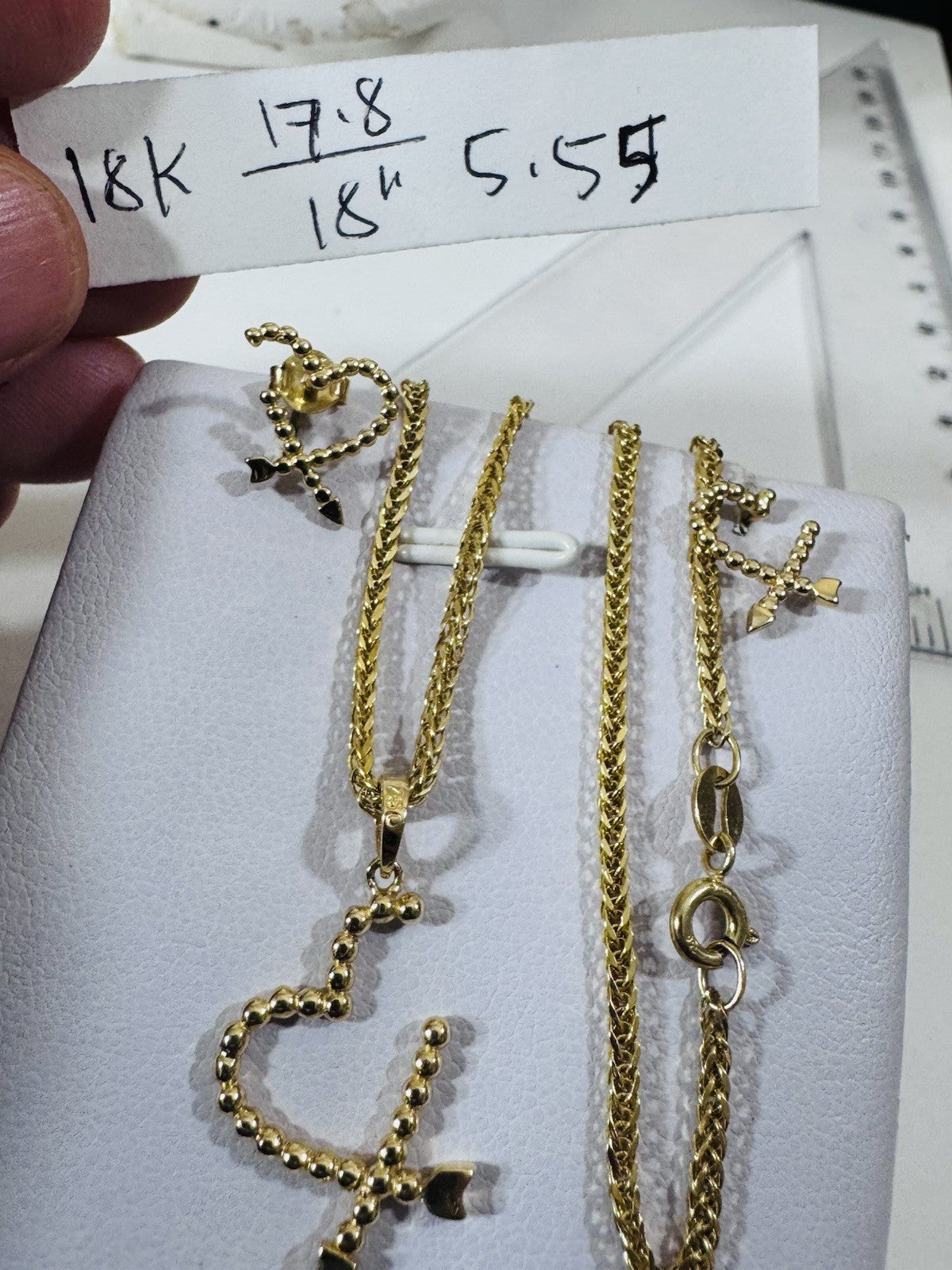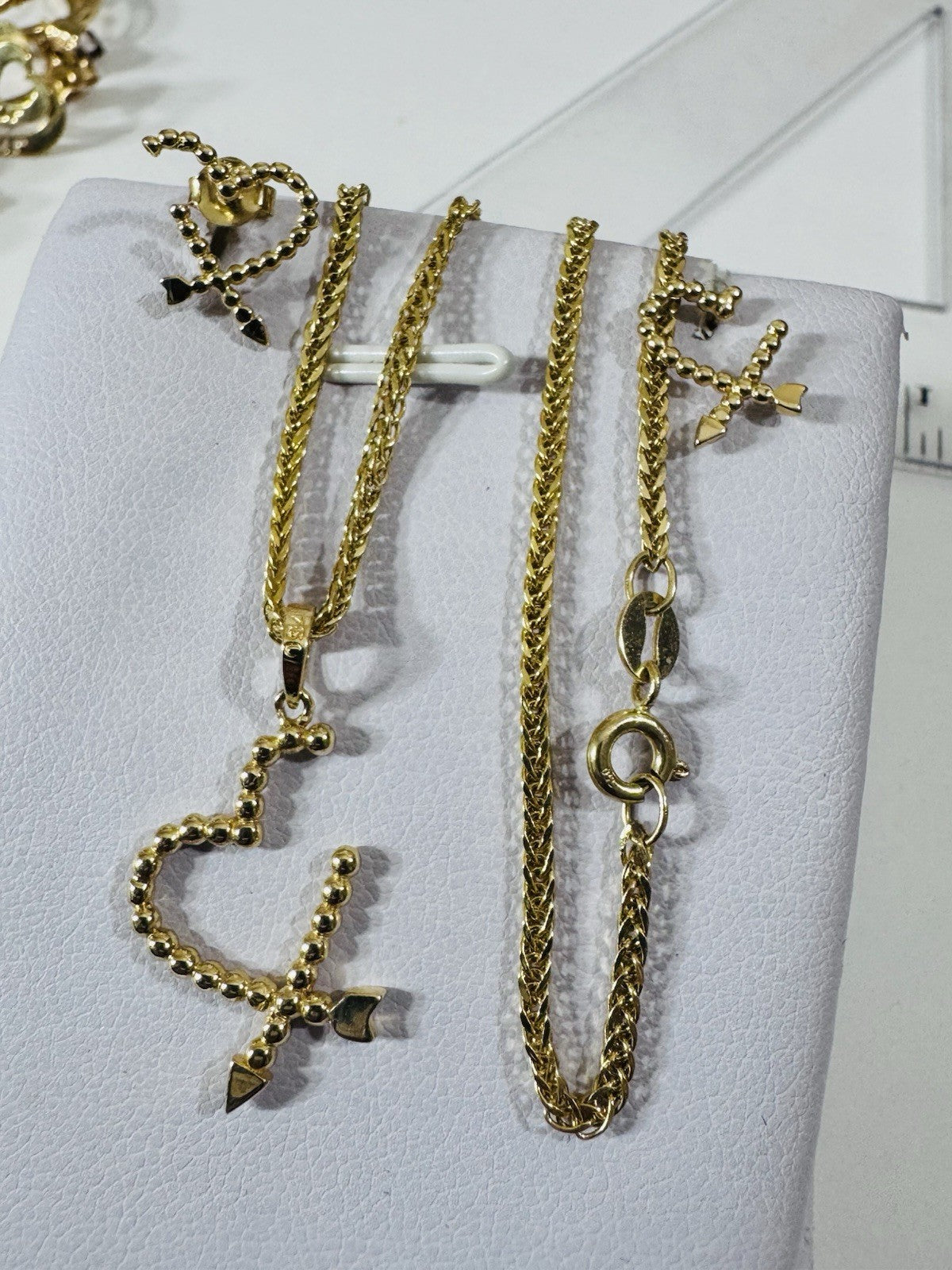 New 18K 750 Genuine Gold Heart Earring & Necklace 17.8/18” Long 5.55g 2.2mm