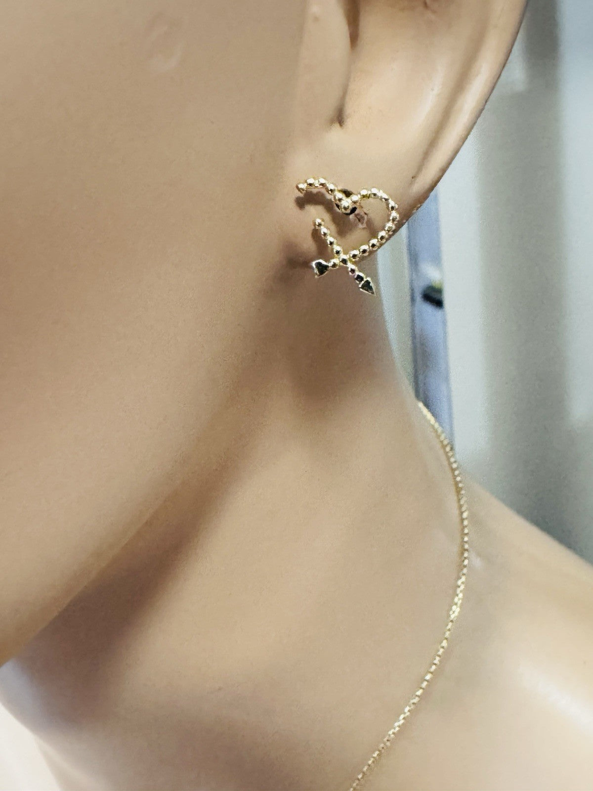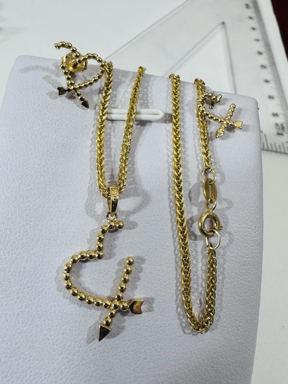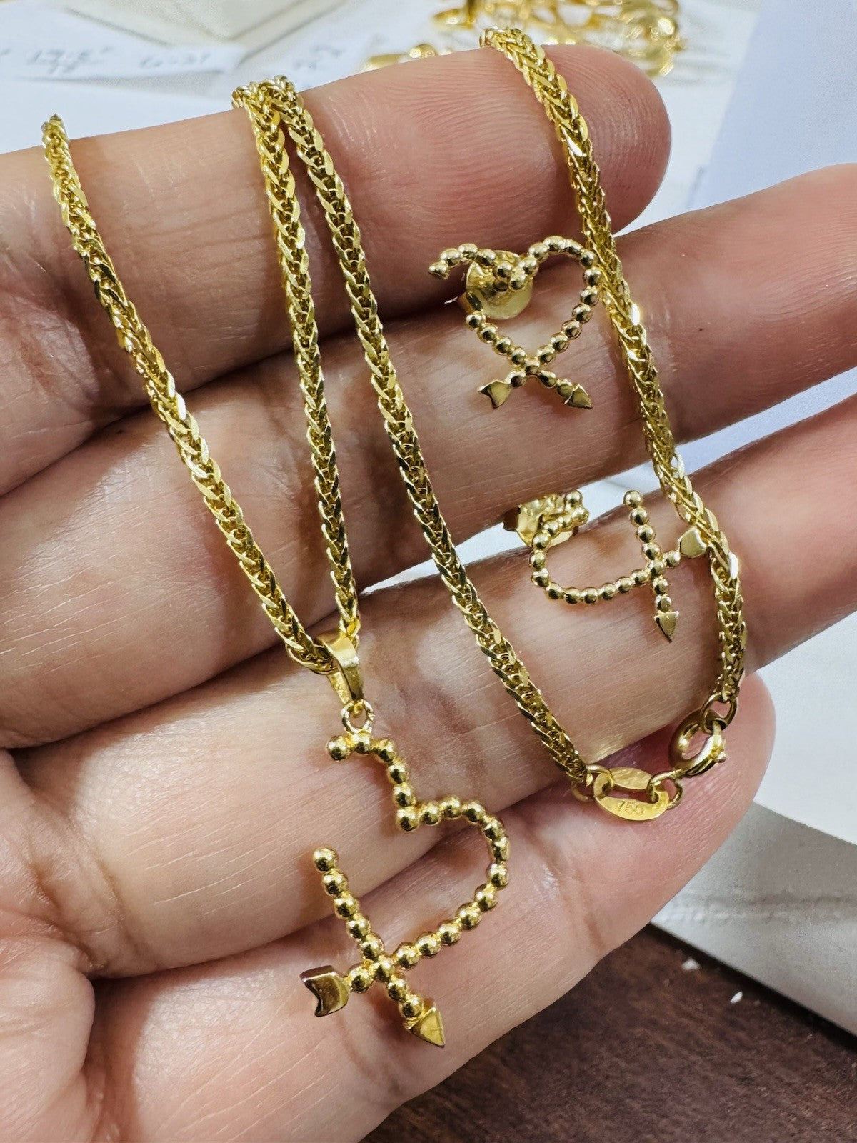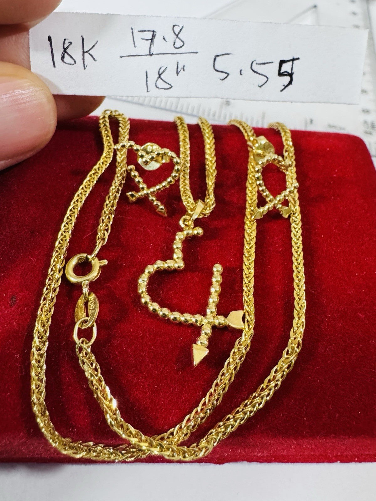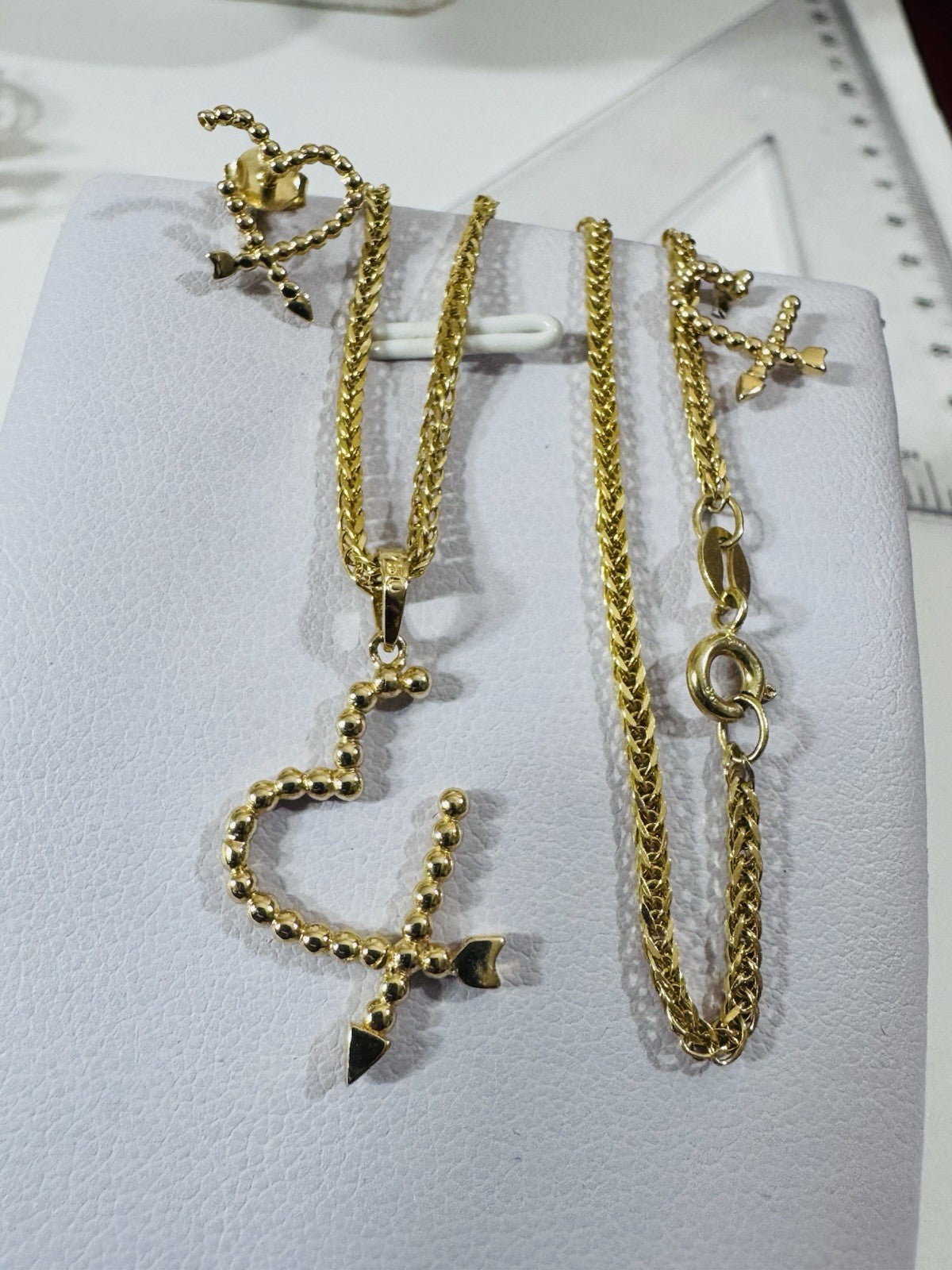 New 18K 750 Genuine Gold Heart Earring & Necklace 17.8/18” Long 5.55g 2.2mm