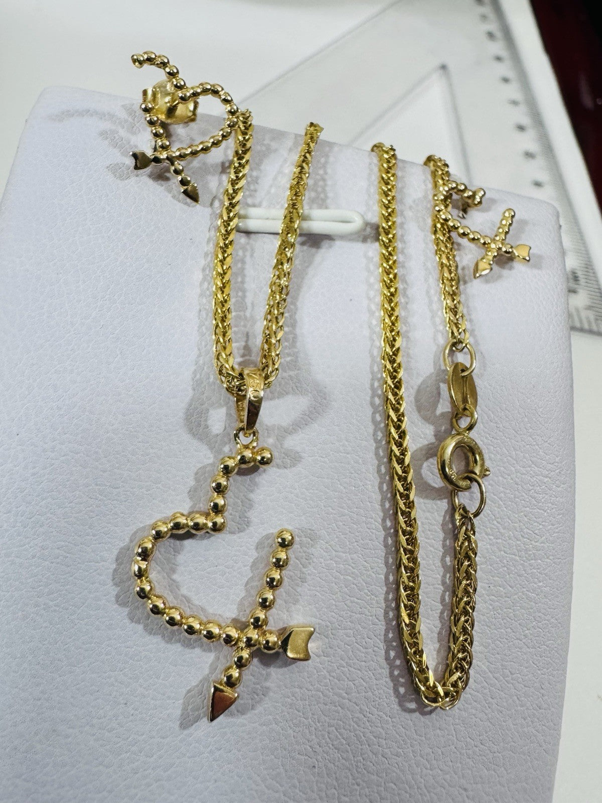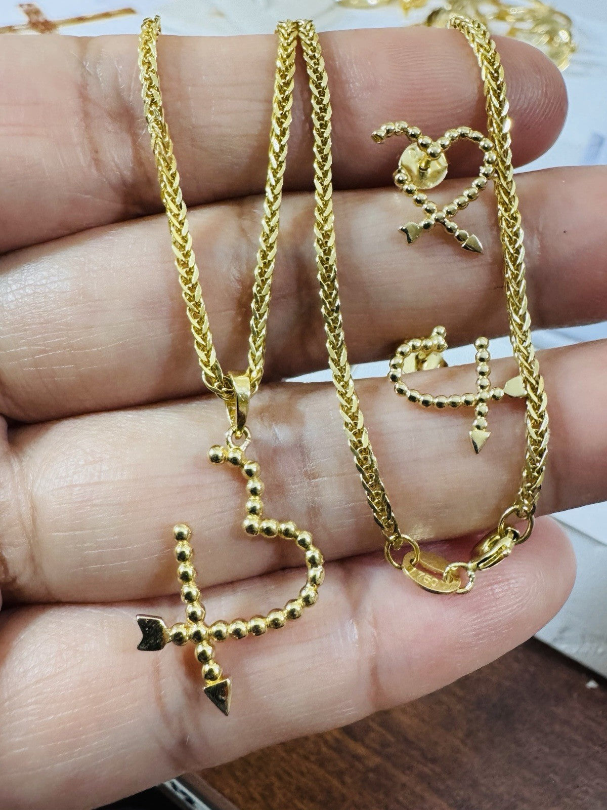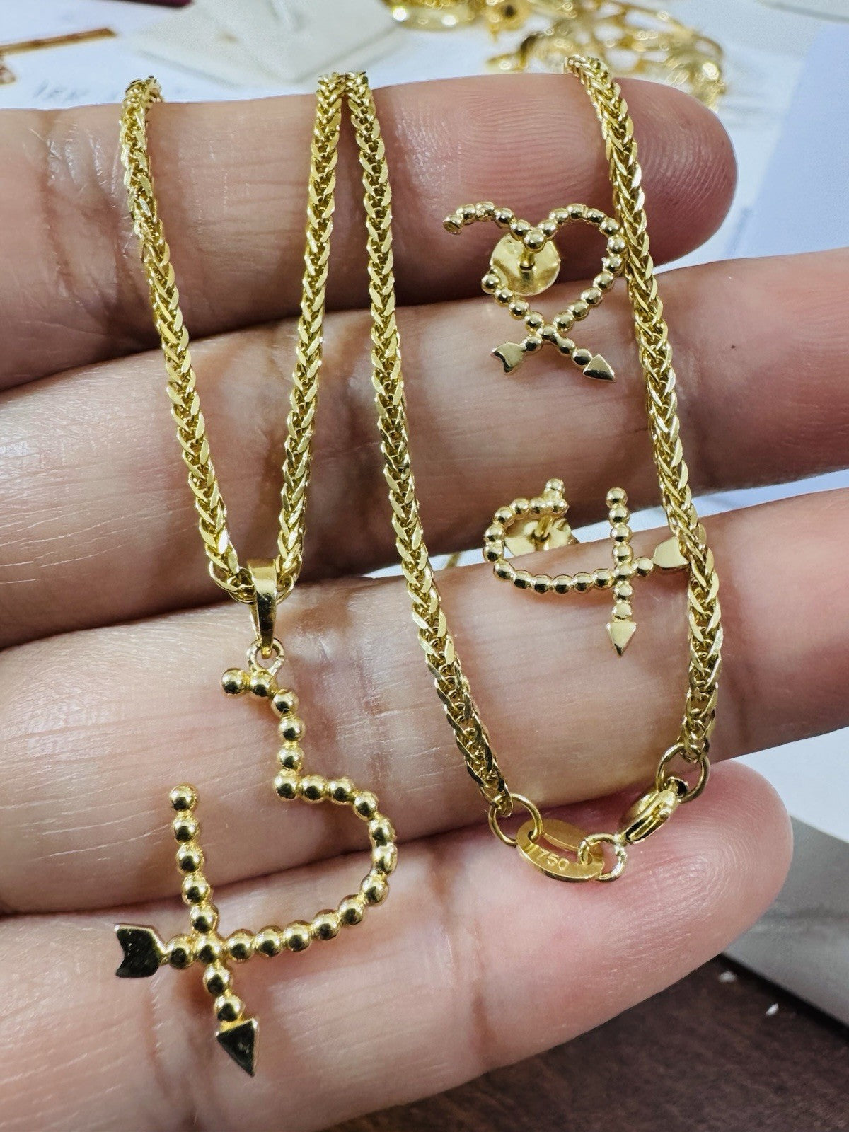 This beautiful Earring & Necklace is expertly crafted in 18K 750 real yellow gold and features a stunning 17.8/18 inch chain with a Spring clasp with 2.2mm wide 5.55 grams