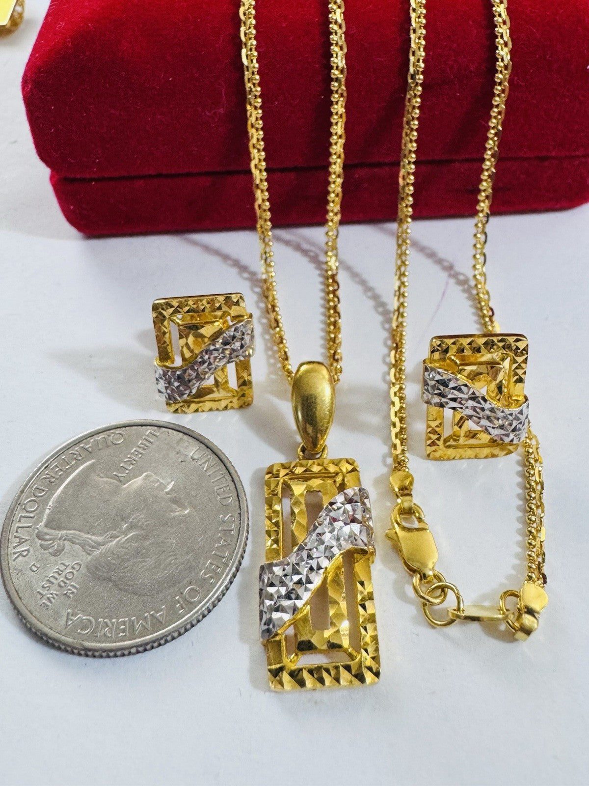 New 22K 22C 916 Fine Real Gold 20” long Rectangle Earring Necklace 13.76g 2.2mm