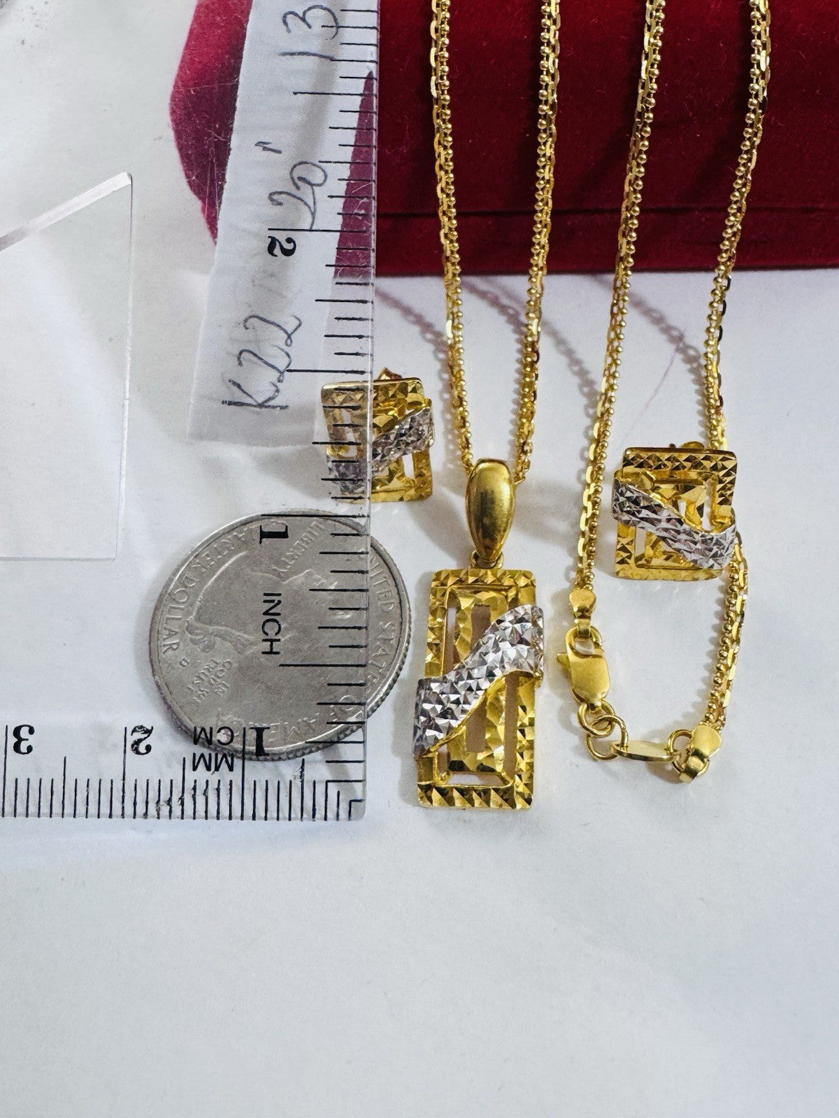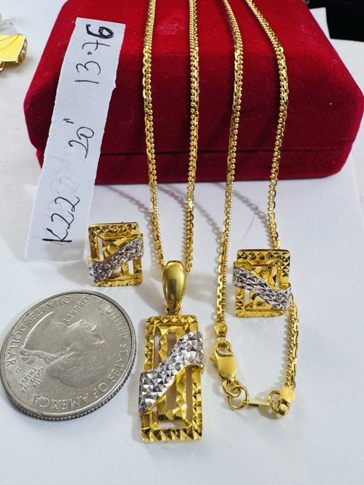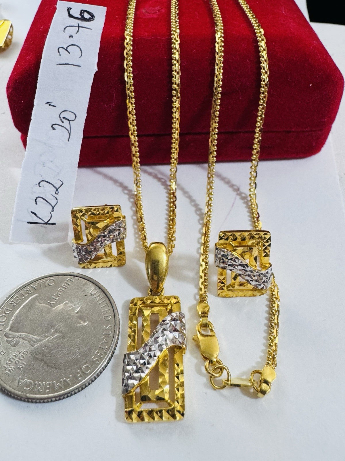 * Hello You are buying Real Brand New 22K 916 Fine Yellow Saudi Gold Women’s Set Earring & Necklace With 20” long 2.2mm 13.76 grams USA Seller Fast shipping!