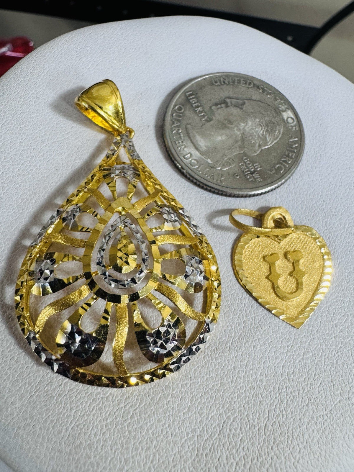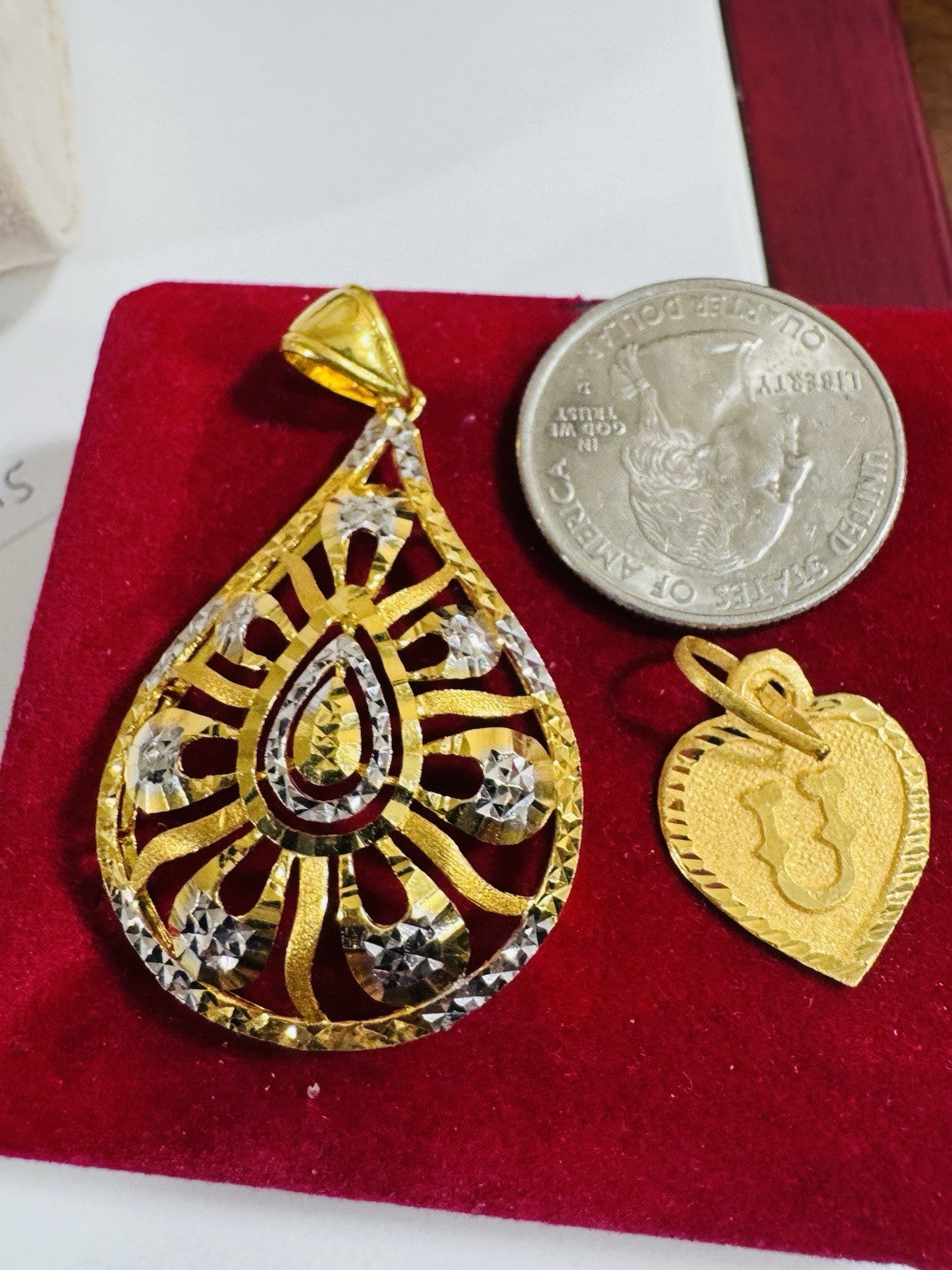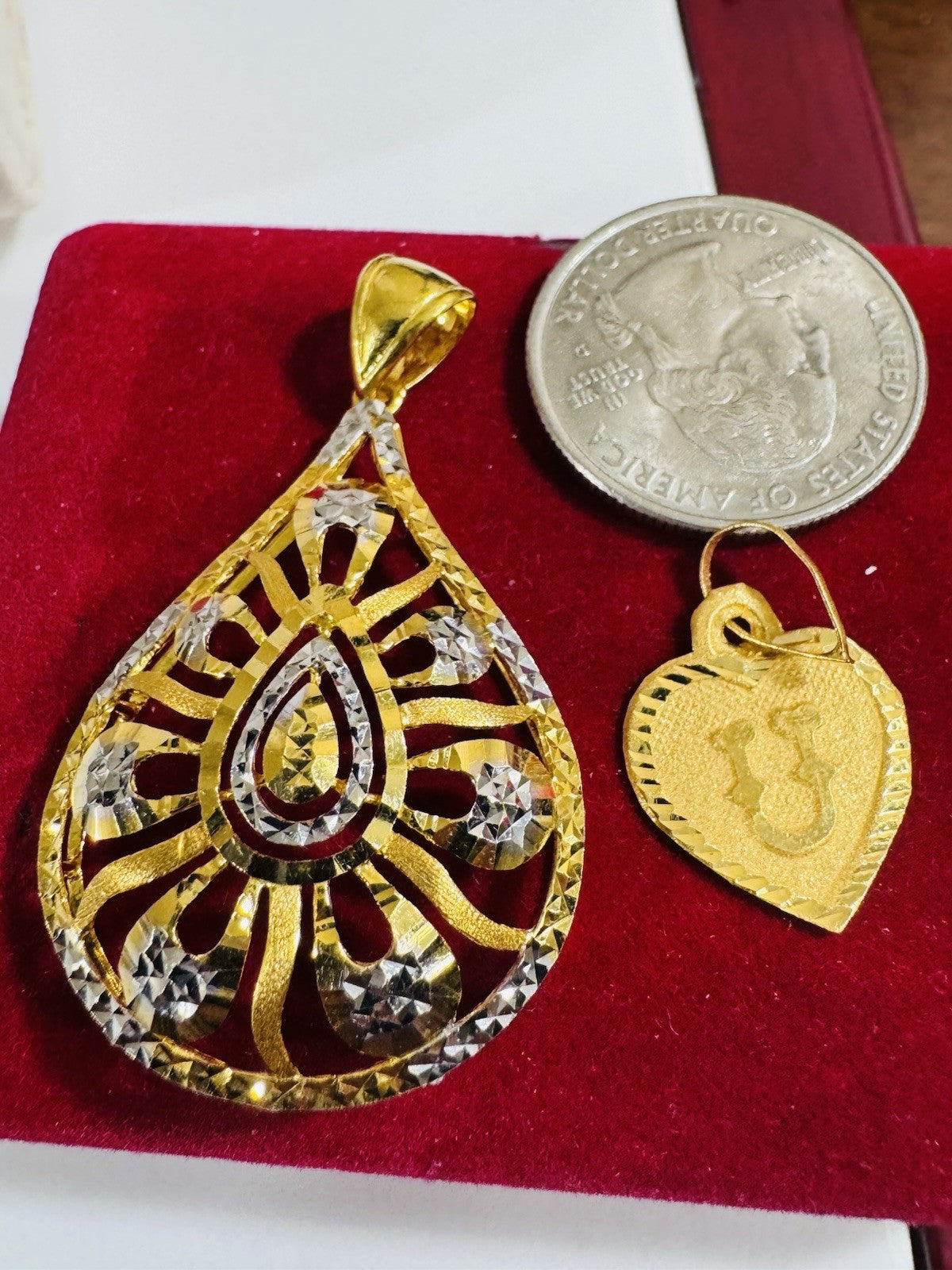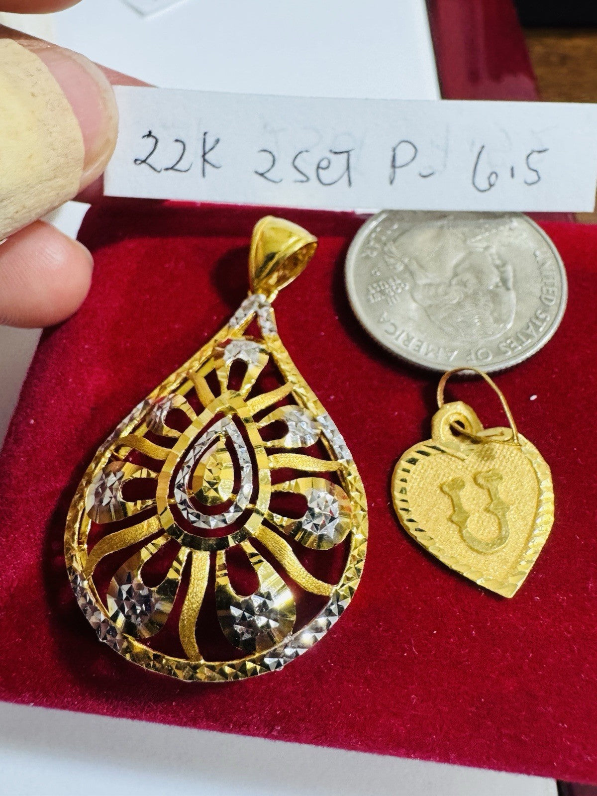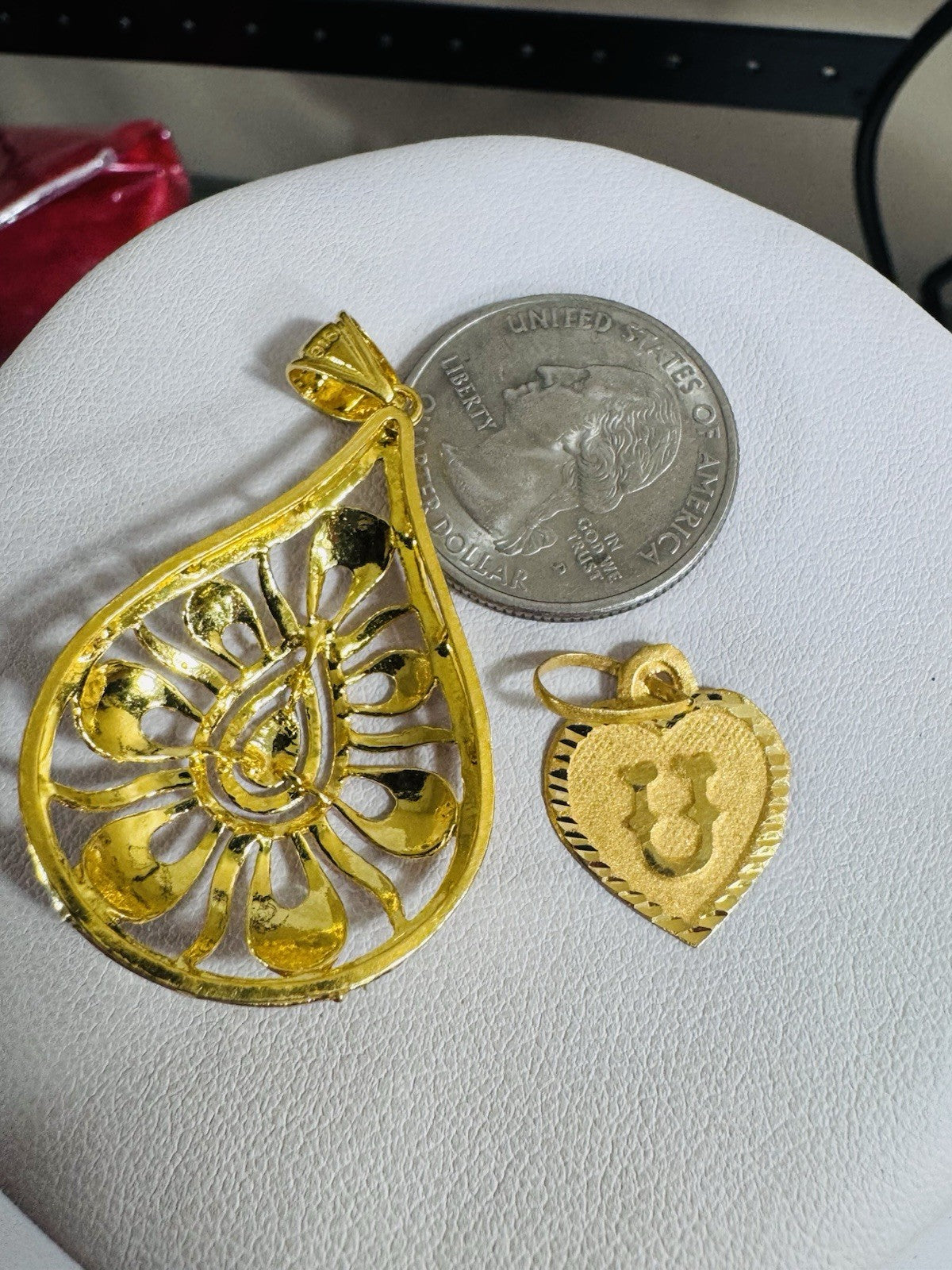 New 22K 916 Fine Real Gold Two (2) Set of Pendant Teardrop & Heart U, 6.5g