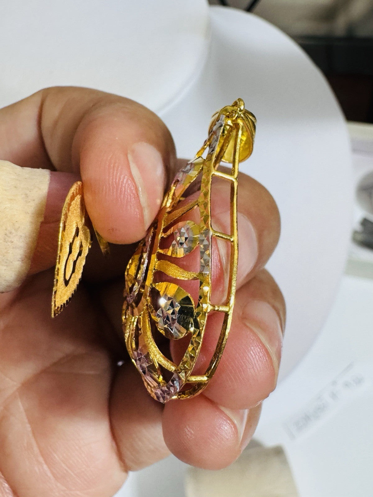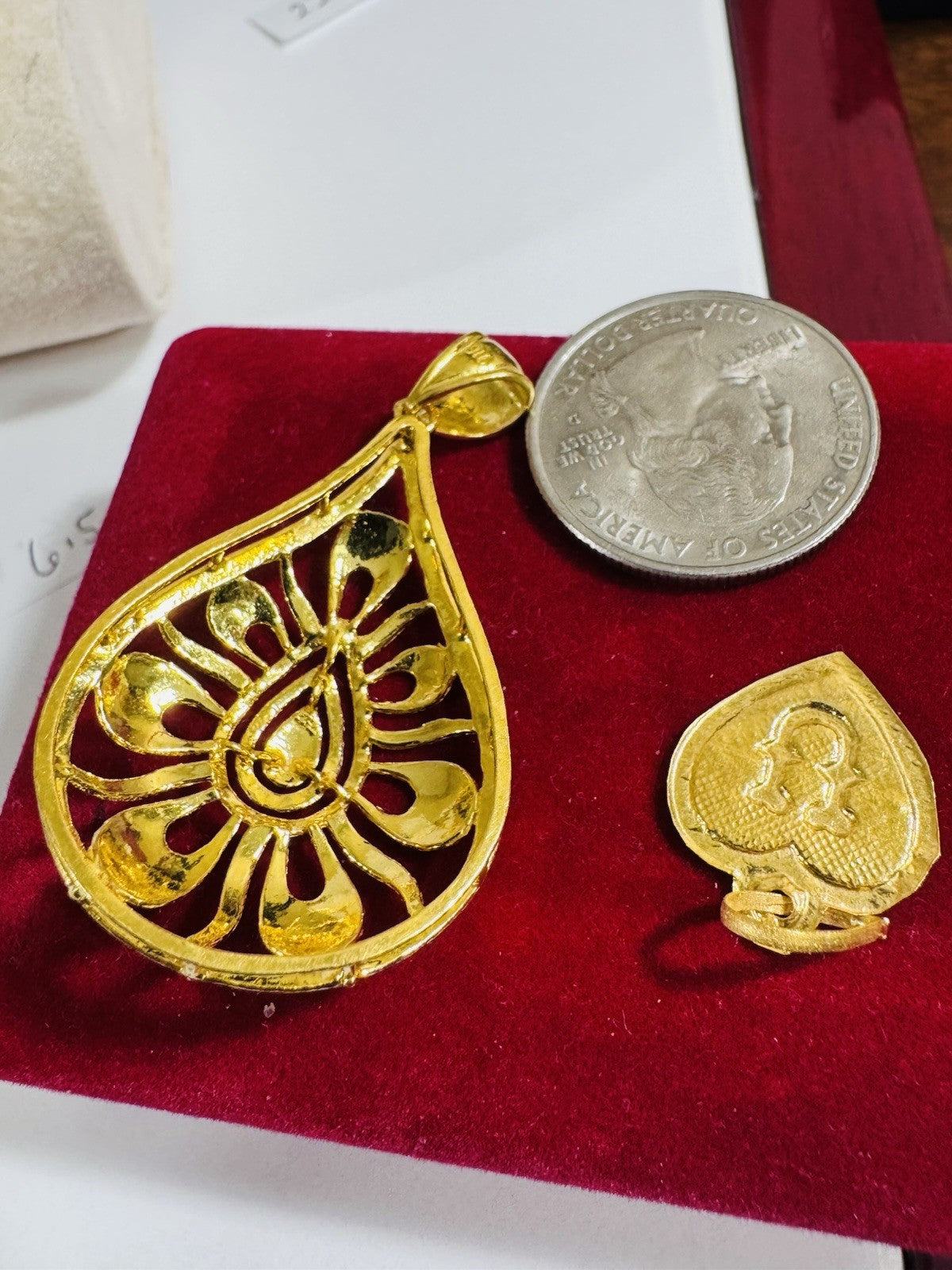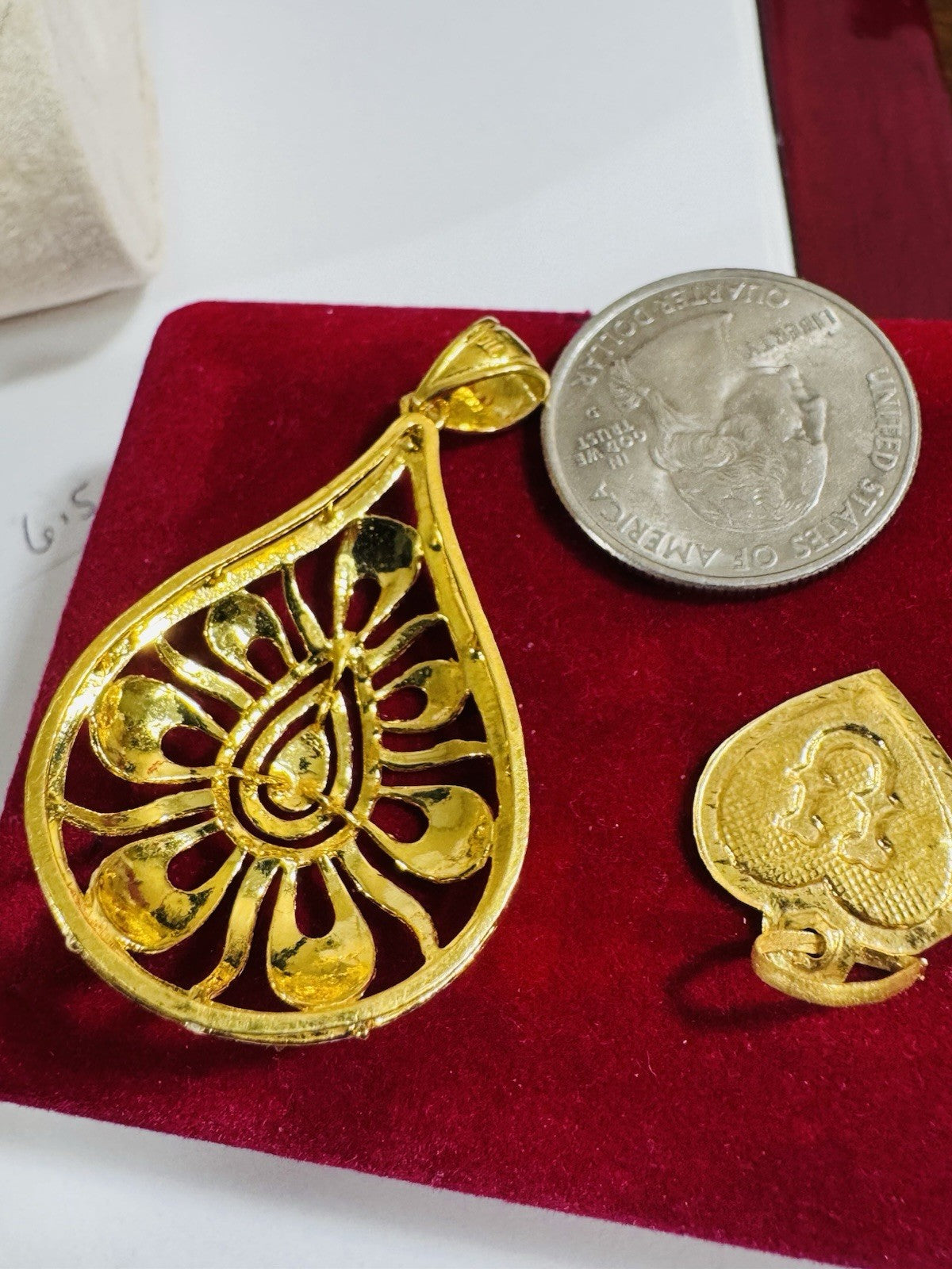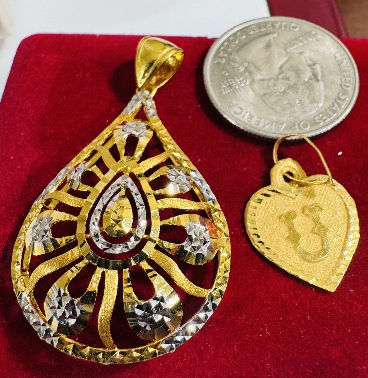 New 22K 916 Fine Real Gold Two (2) Set of Pendant Teardrop & Heart U, 6.5g