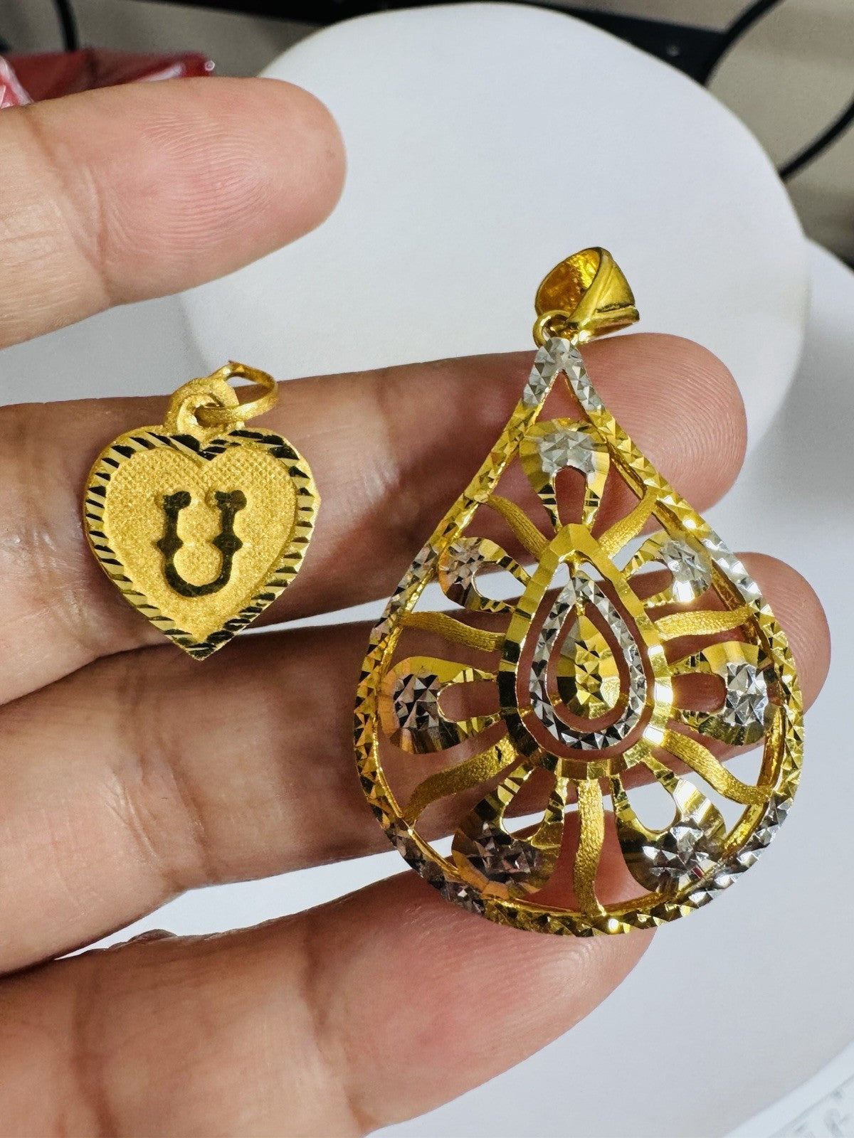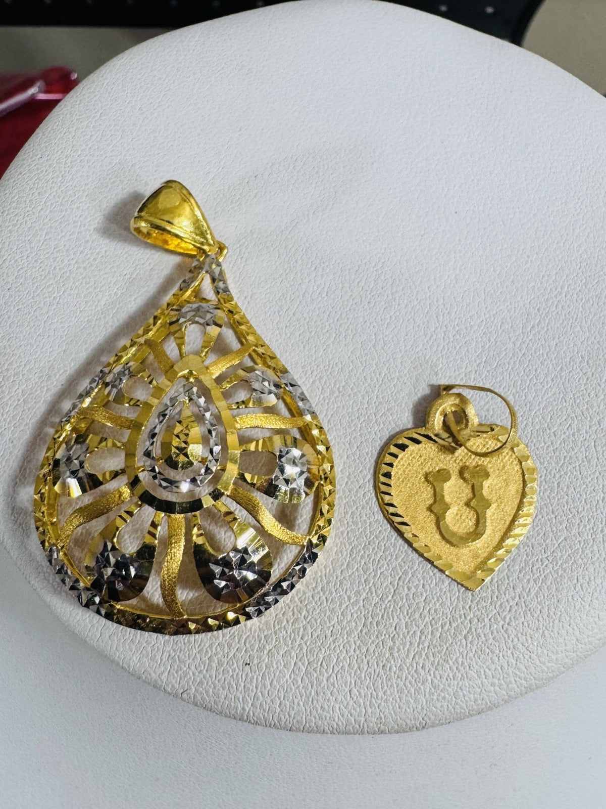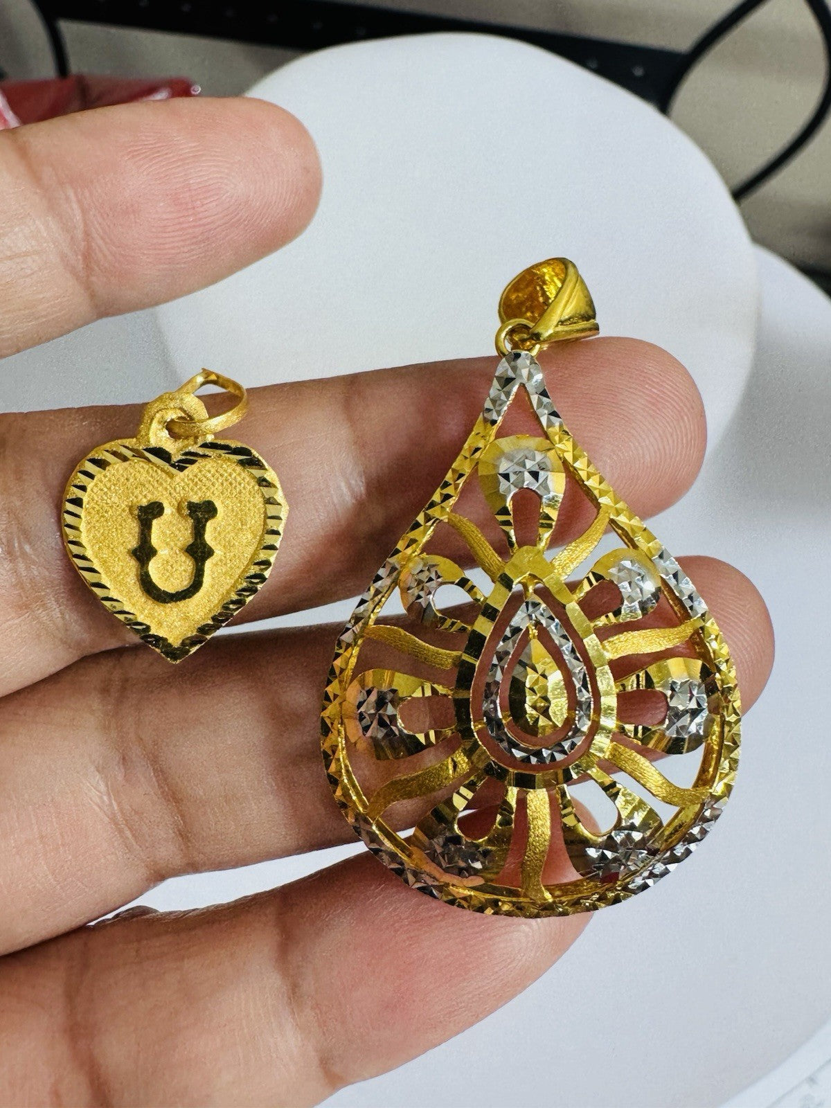 Solid 22K 916 Fine Real Gold Two Set Pendant 6.5 grams Teardrop and Heart U small pendant.