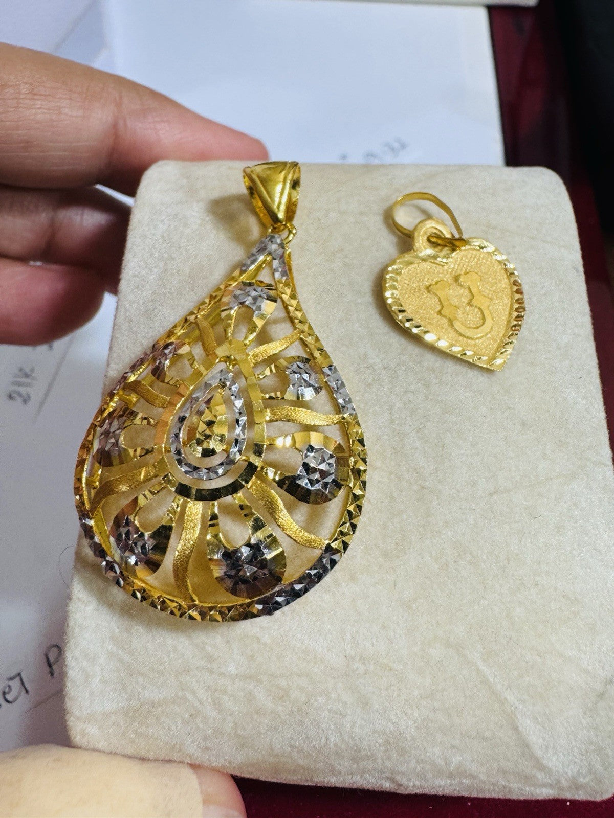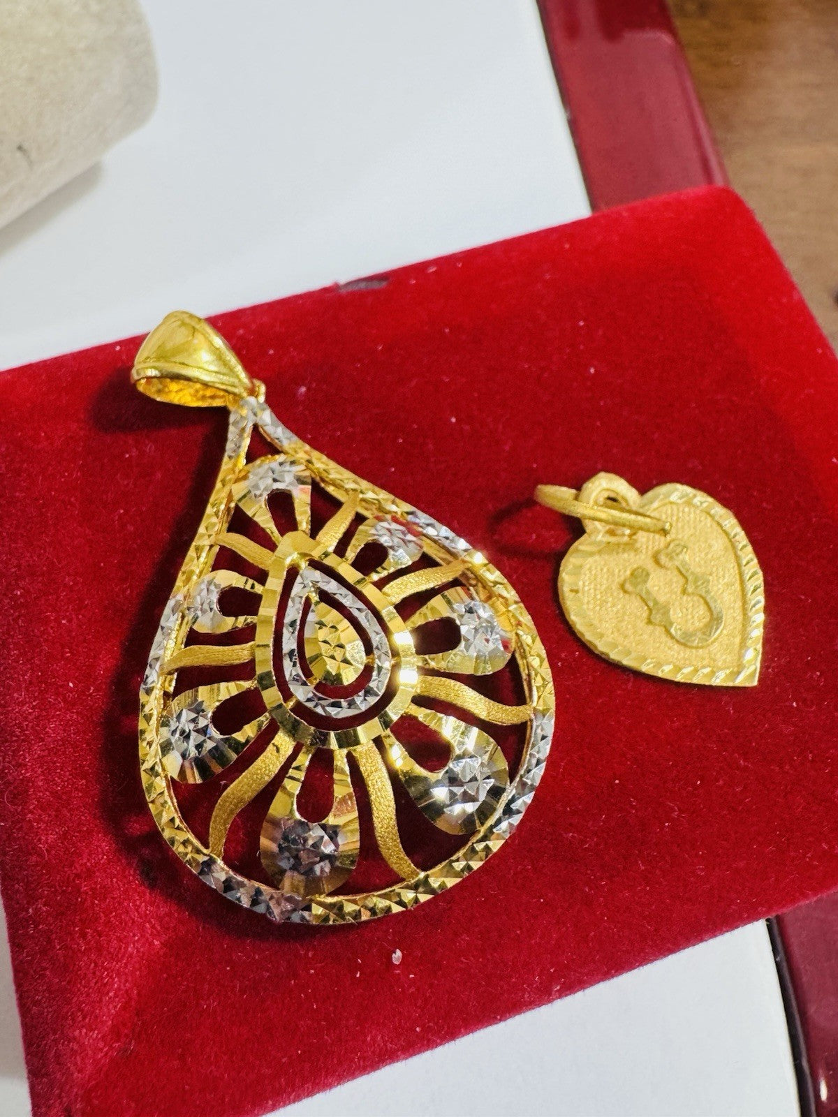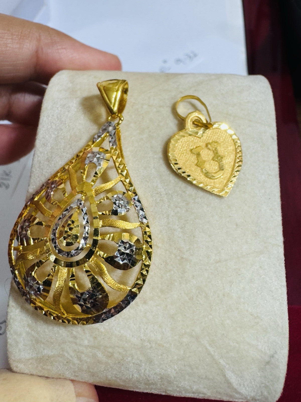 Solid 22K 916 Fine Real Gold Two Set Pendant 6.5 grams Teardrop and Heart U small pendant.